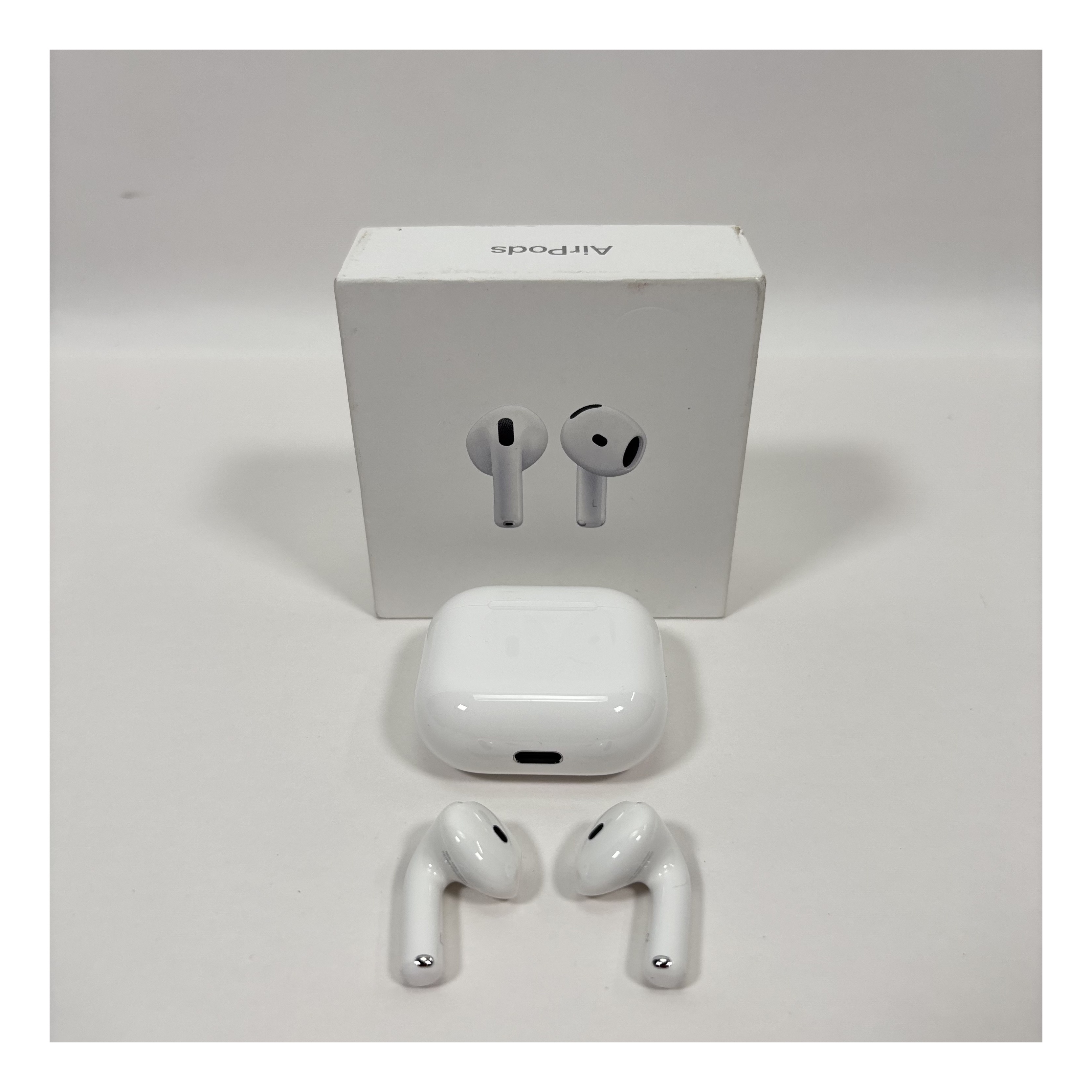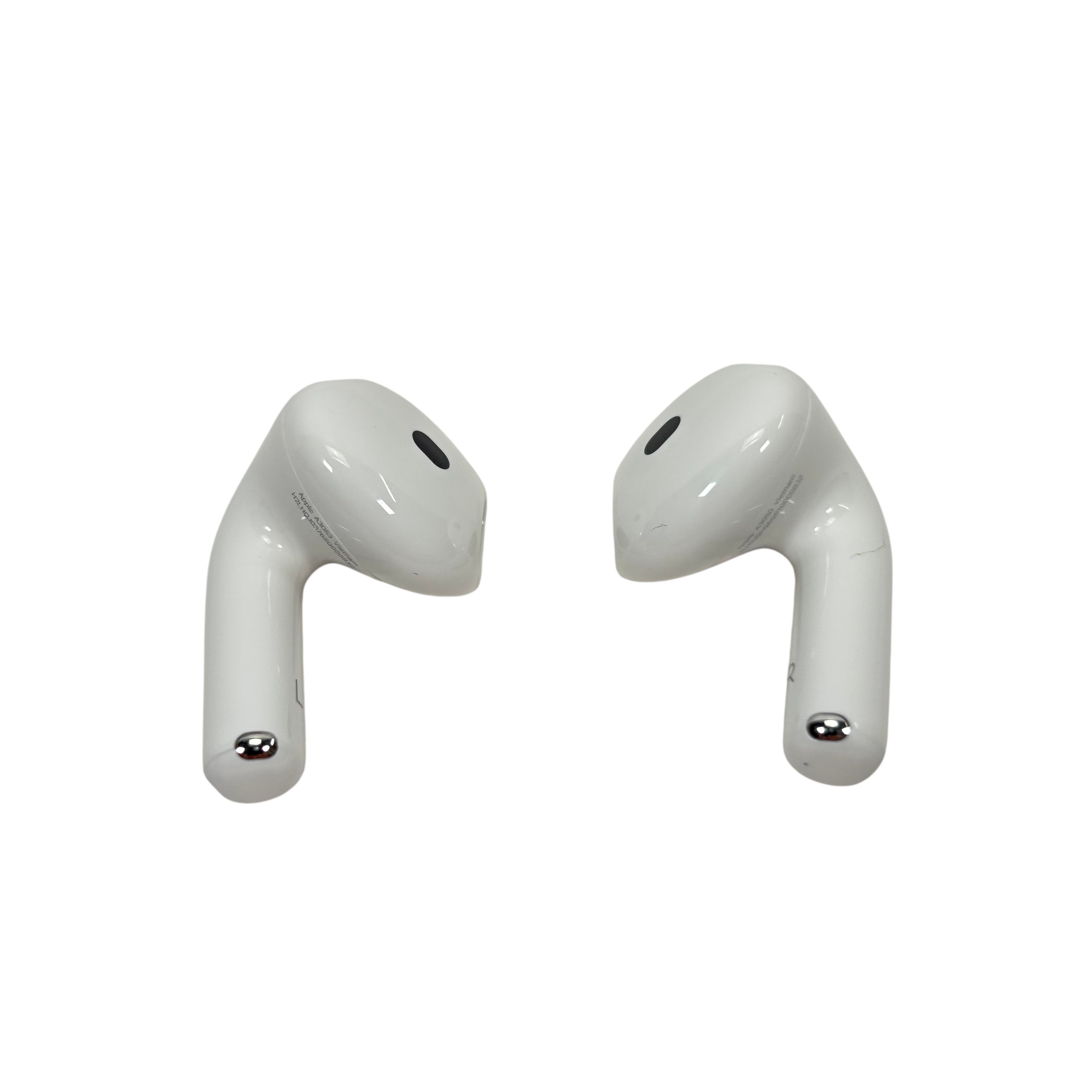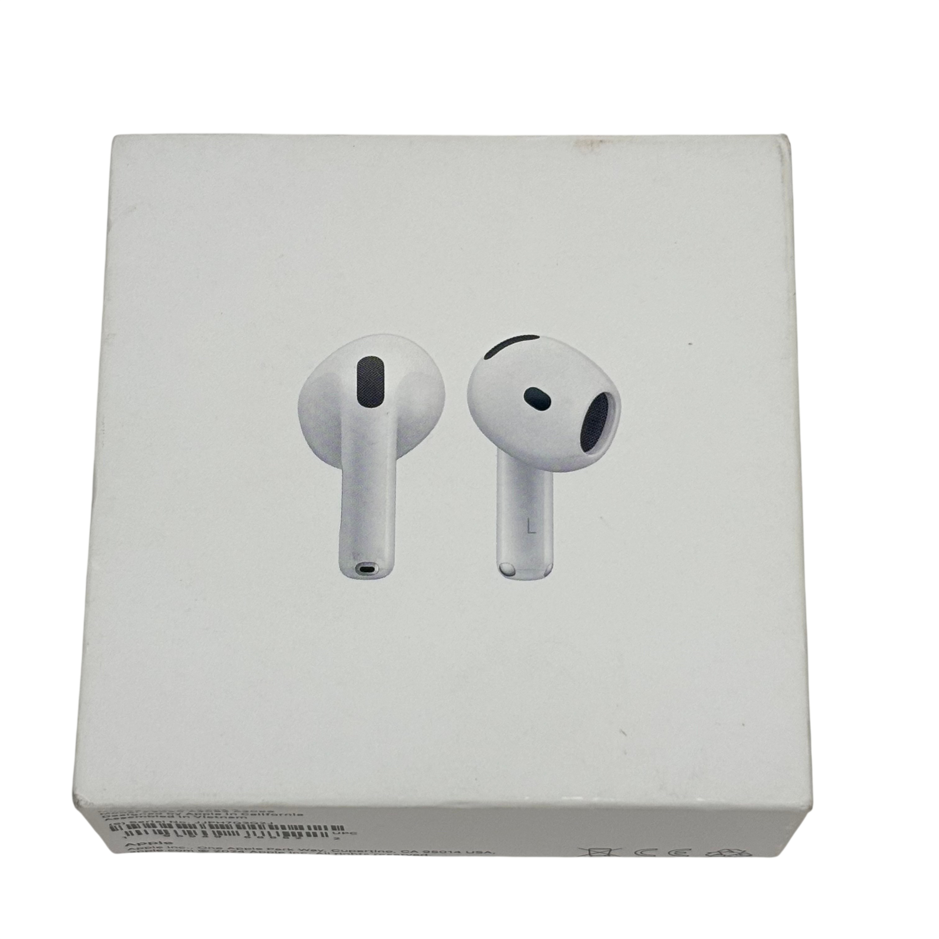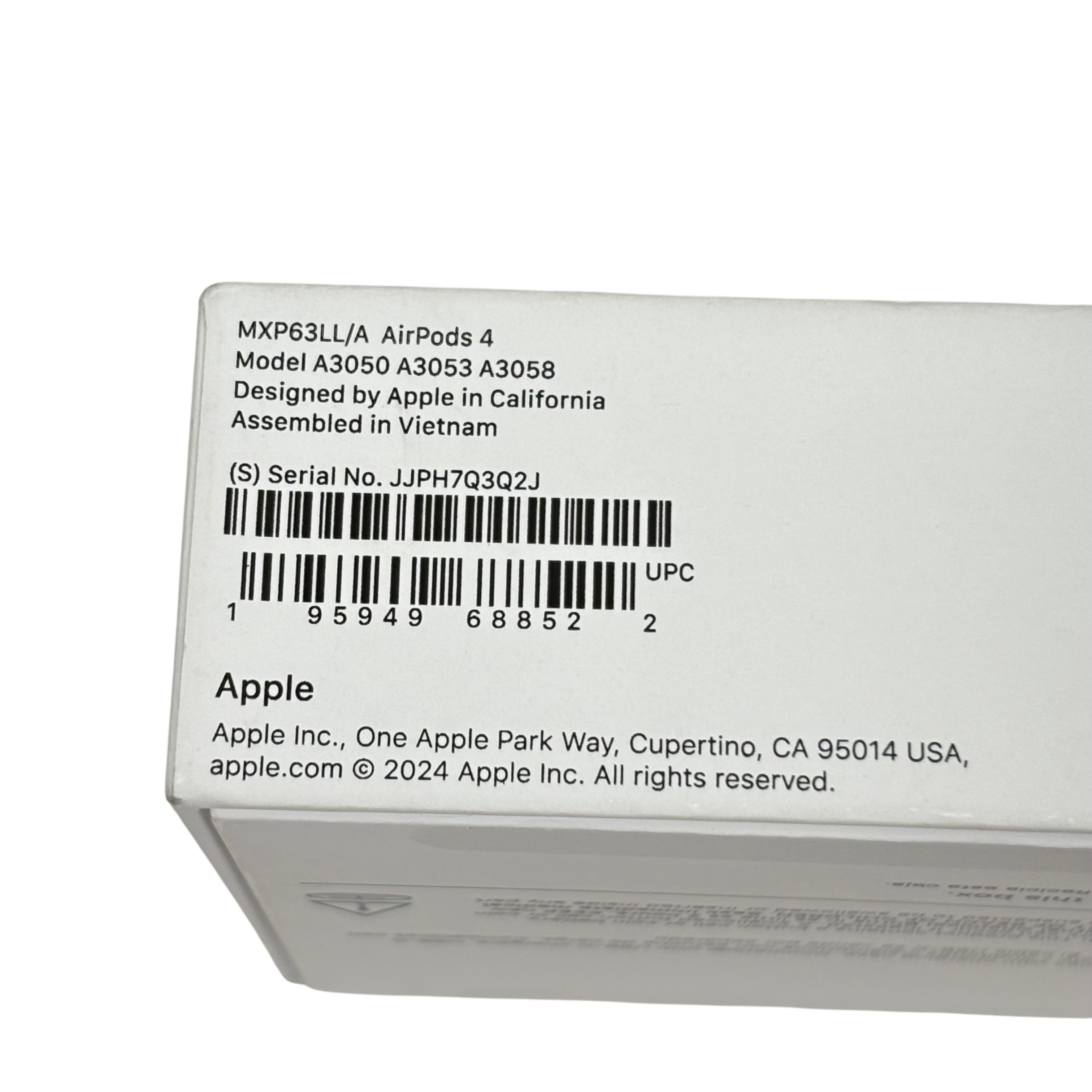 Apple MXP63LL/A AirPods 4th Generation are premium true wireless earbuds designed for immersive audio experiences with Spatial Audio and Adaptive EQ. Featuring model numbers A3050, A3053, and A3058, these earbuds come with a MagSafe charging case that supports convenient wireless charging via Lightning port. The AirPods 4 offer sweat and water resistance, making them ideal for active lifestyles. Compact and lightweight, they deliver high-quality sound and seamless connectivity with Apple devices.