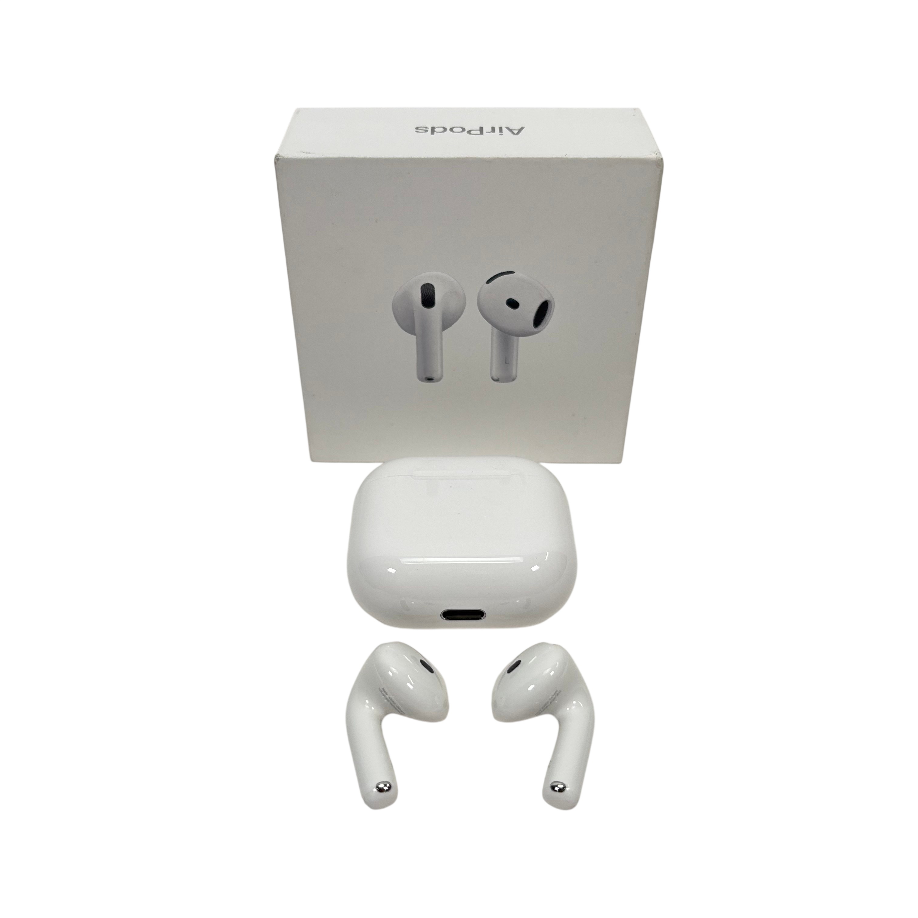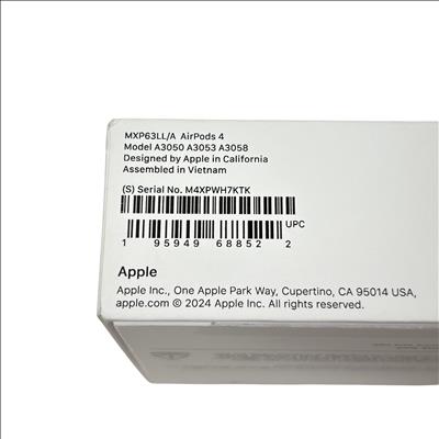 Apple MXP63LL/A AirPods 4th Generation are premium true wireless earbuds designed for immersive audio experiences with Spatial Audio and Adaptive EQ. Featuring model numbers A3050, A3053, and A3058, these earbuds come with a MagSafe charging case that supports convenient wireless charging via Lightning port. The AirPods 4 offer sweat and water resistance, making them ideal for active lifestyles. Compact and lightweight, they deliver high-quality sound and seamless connectivity with Apple devices.