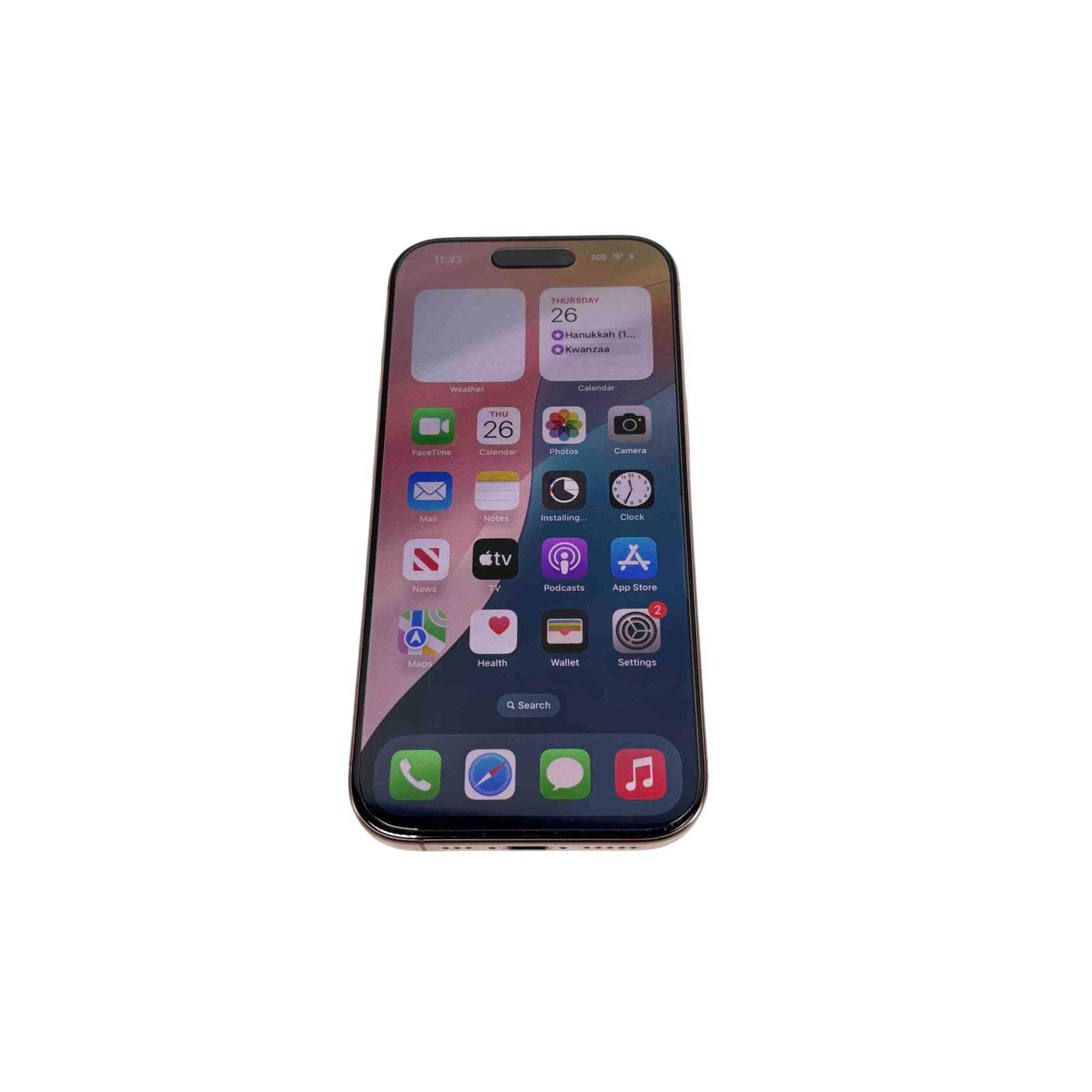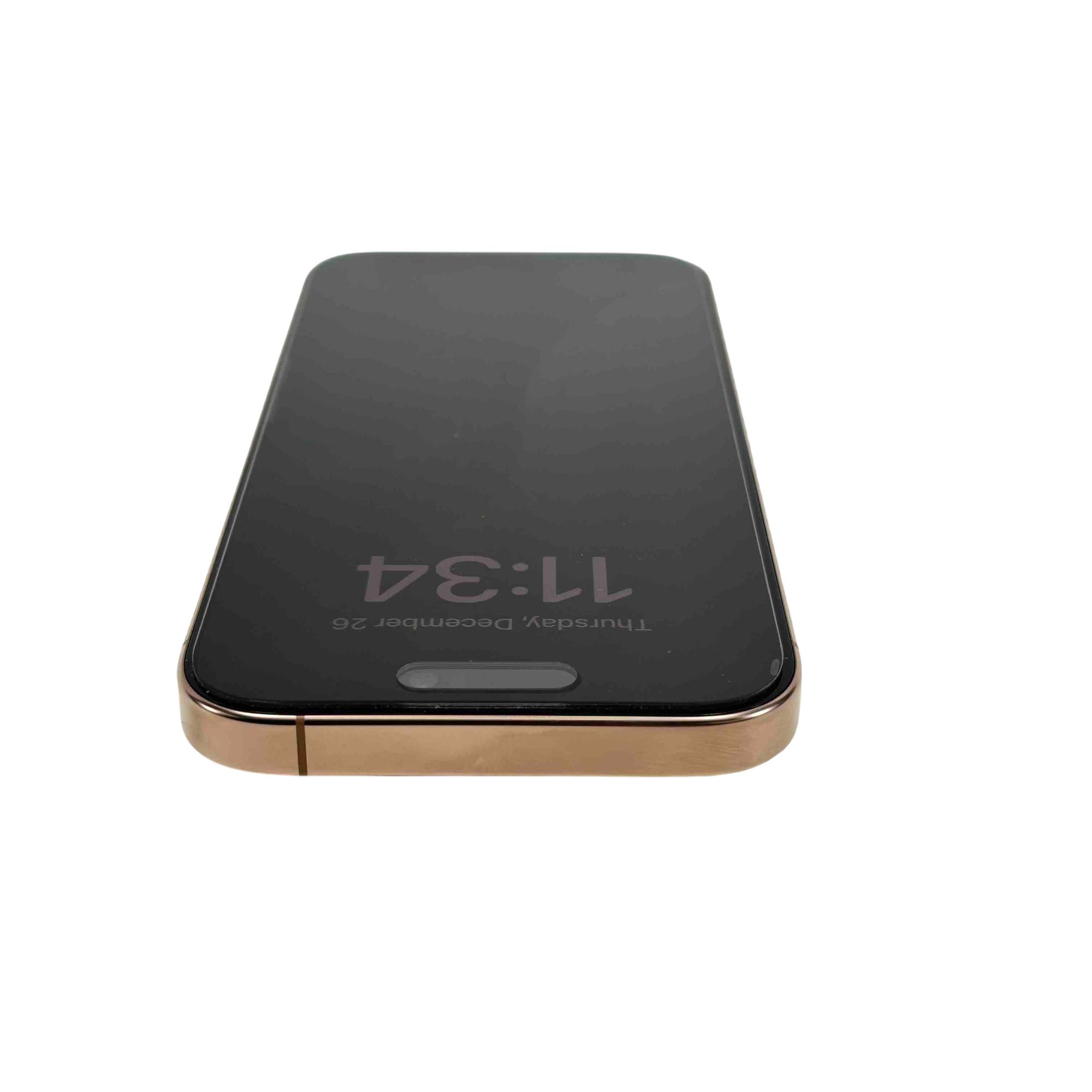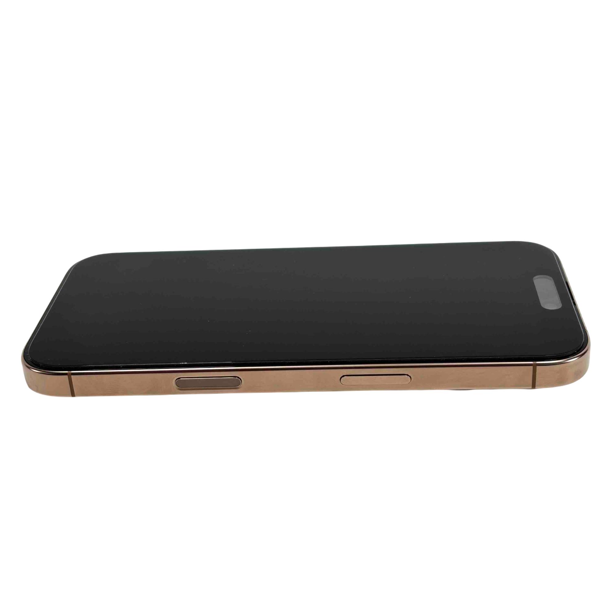Experience the cutting-edge technology of the Apple iPhone 16 Pro with the model number MYMC3LL/A. This sleek smartphone, adorned in a stunning black with gold edges, boasts an advanced, feature-rich design perfect for tech enthusiasts and trendsetters. With its robust performance, sophisticated style, and superior camera capabilities, the iPhone 16 Pro stands out as the ultimate device for both work and play.