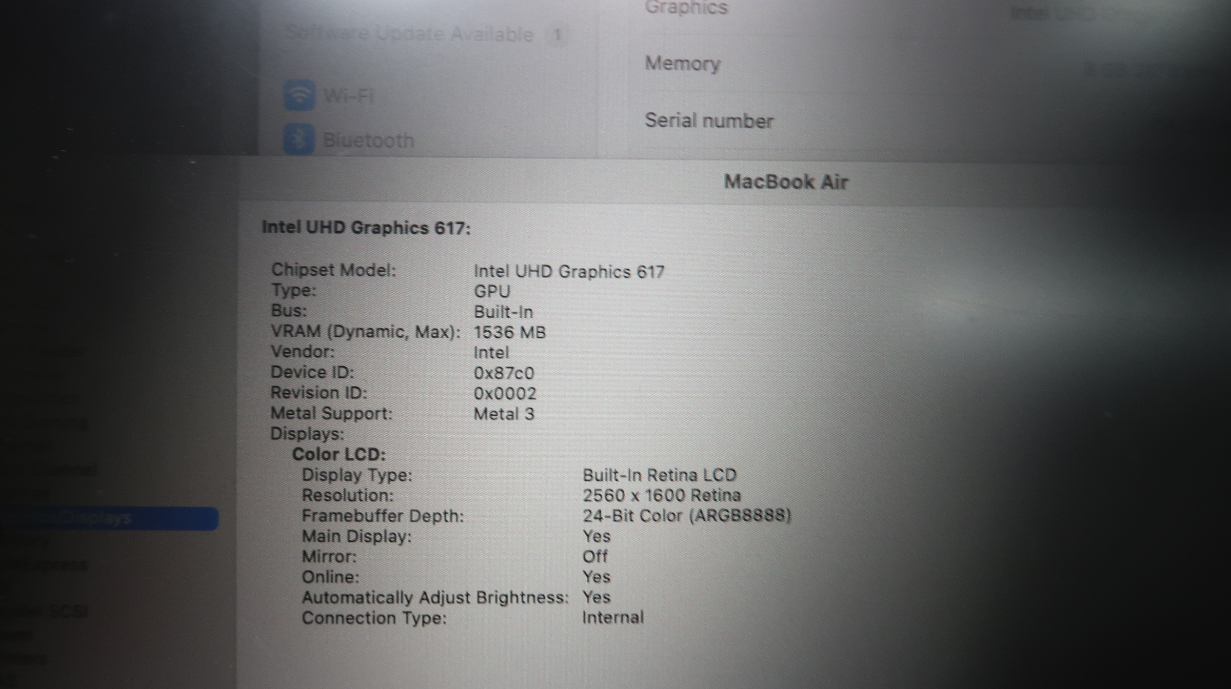 A portable and eco-friendly laptop equipped with an Intel Core i5-8210Y Dual-Core processor clocked at 1.6GHz, 8GB of LPDDR3 RAM, and a 128GB SSD for storage. It boasts a 13.3-inch Retina display with a resolution of 2560 x 1600, enhanced by True Tone technology. Graphics are handled by Intel UHD Graphics 617, and connectivity options include Bluetooth 4.2, Wi-Fi 5, a webcam, a headphone jack, and two Thunderbolt 3 USB-C ports. Additional features like Touch ID, a next-generation keyboard, and a Force Touch trackpad.