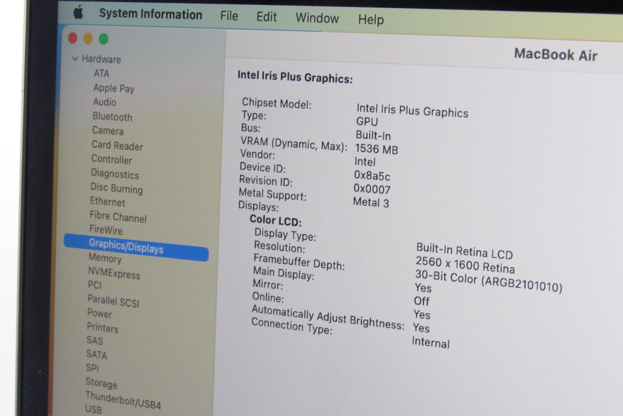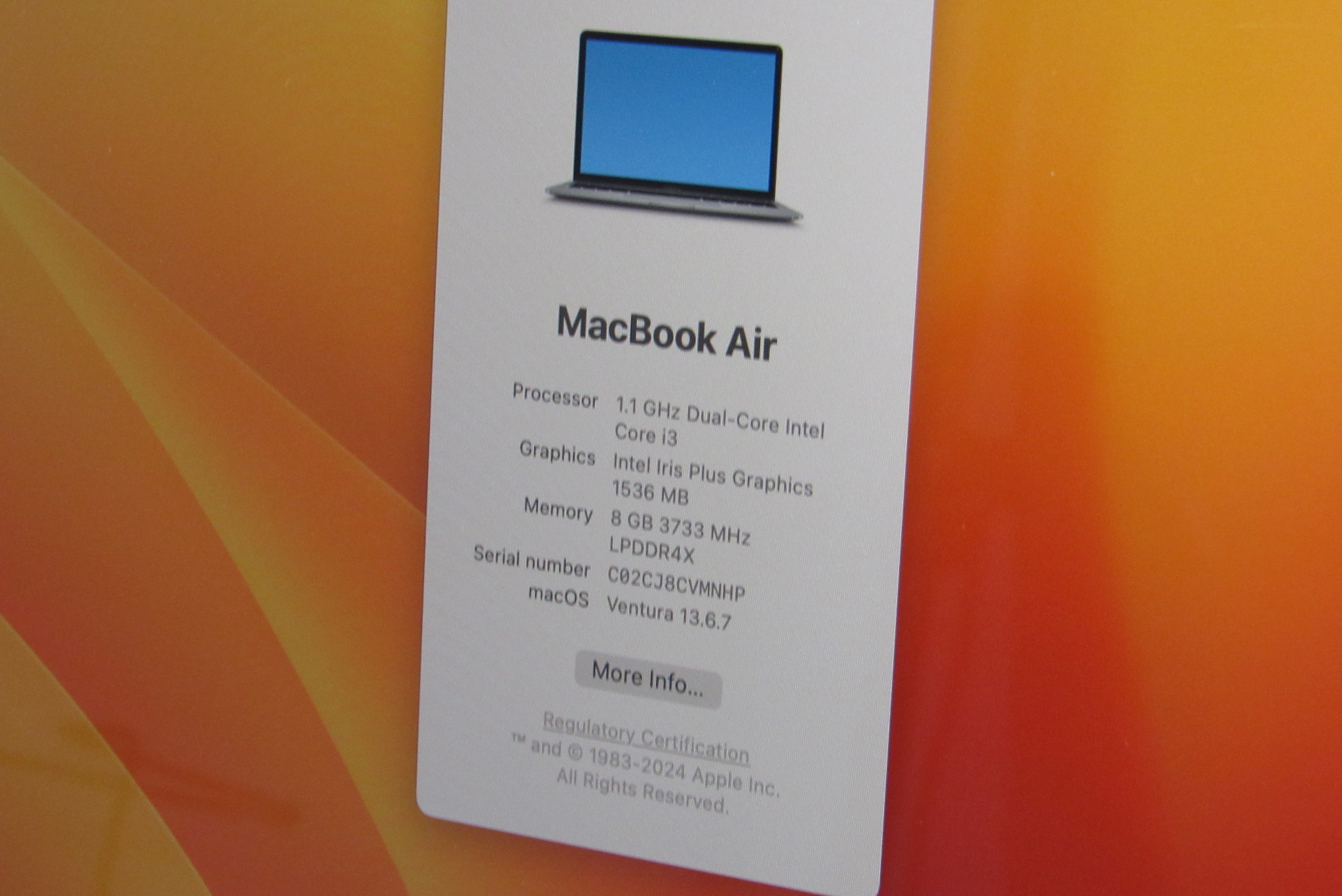 Model: MacBook Air 2020 MWTJ2LL/A A2179
