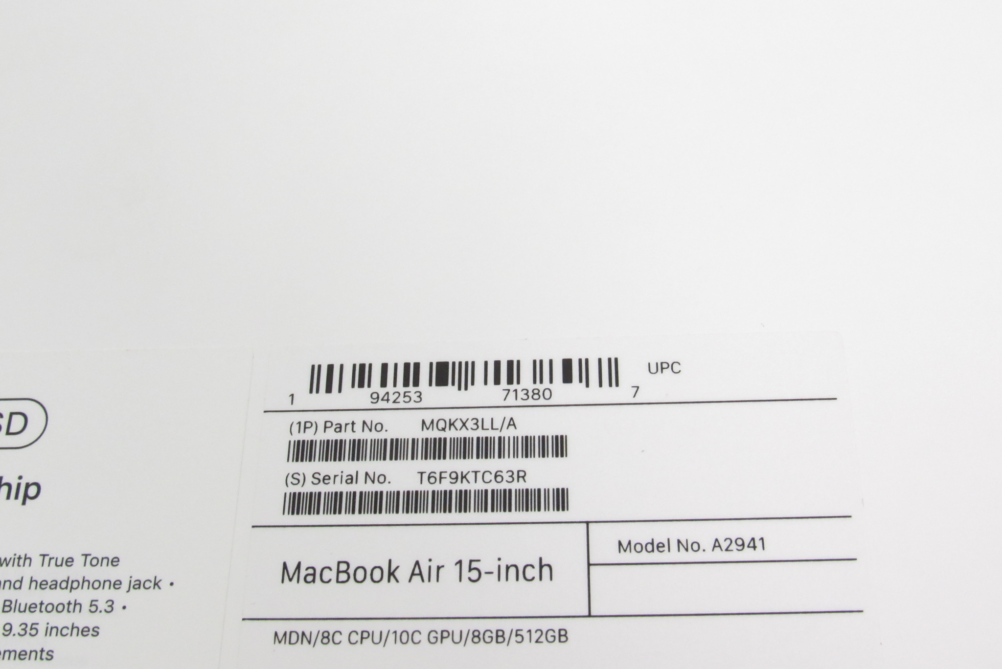 Serial Number: T6F9KTC63R