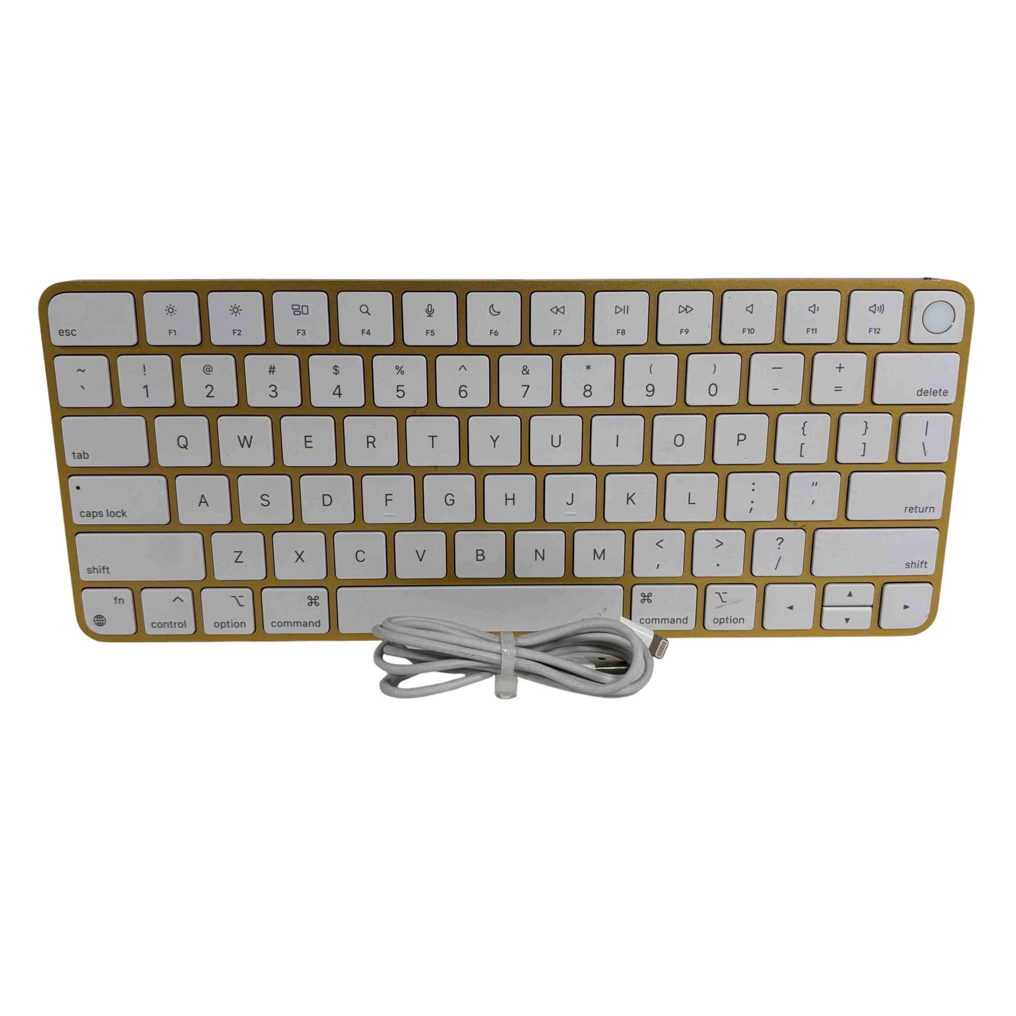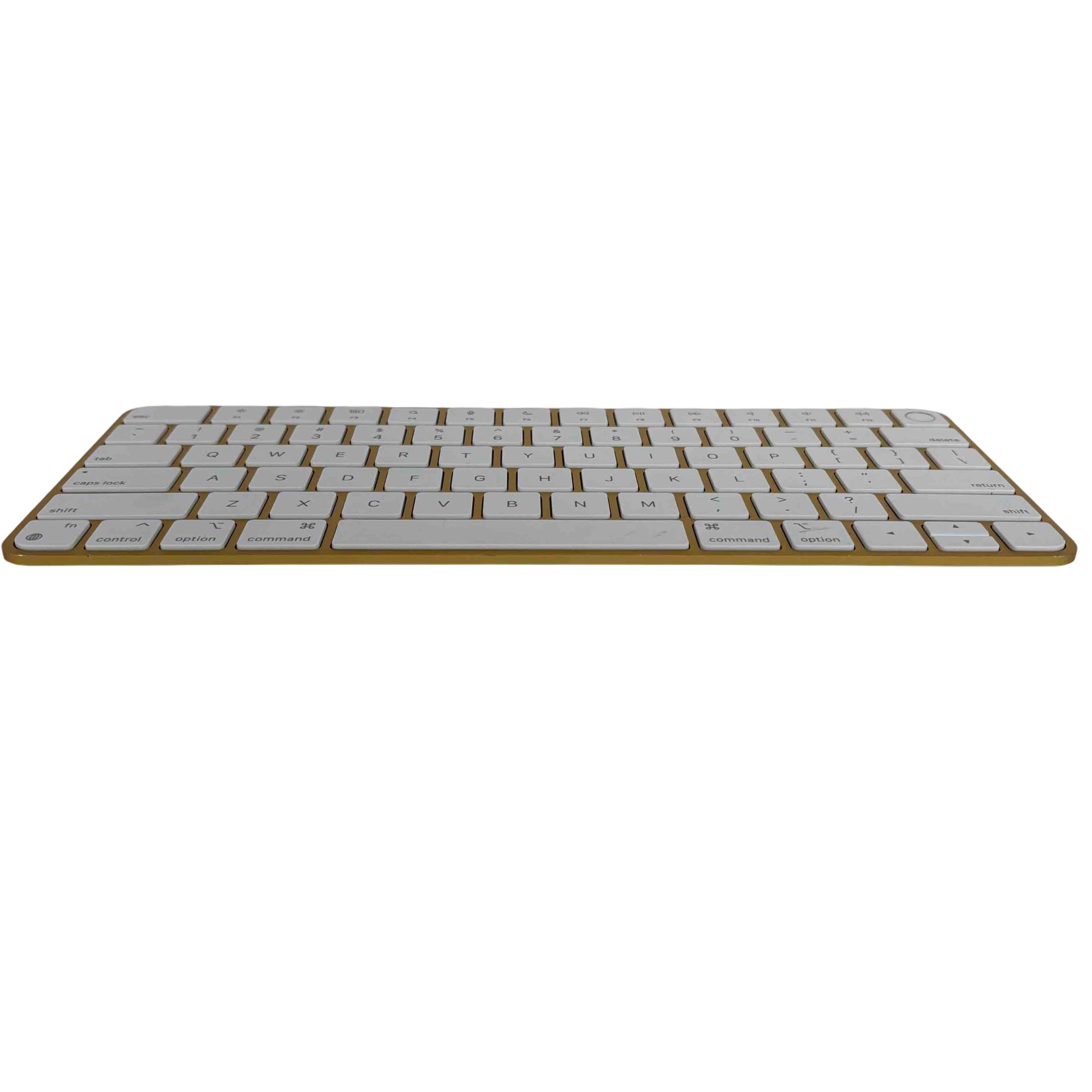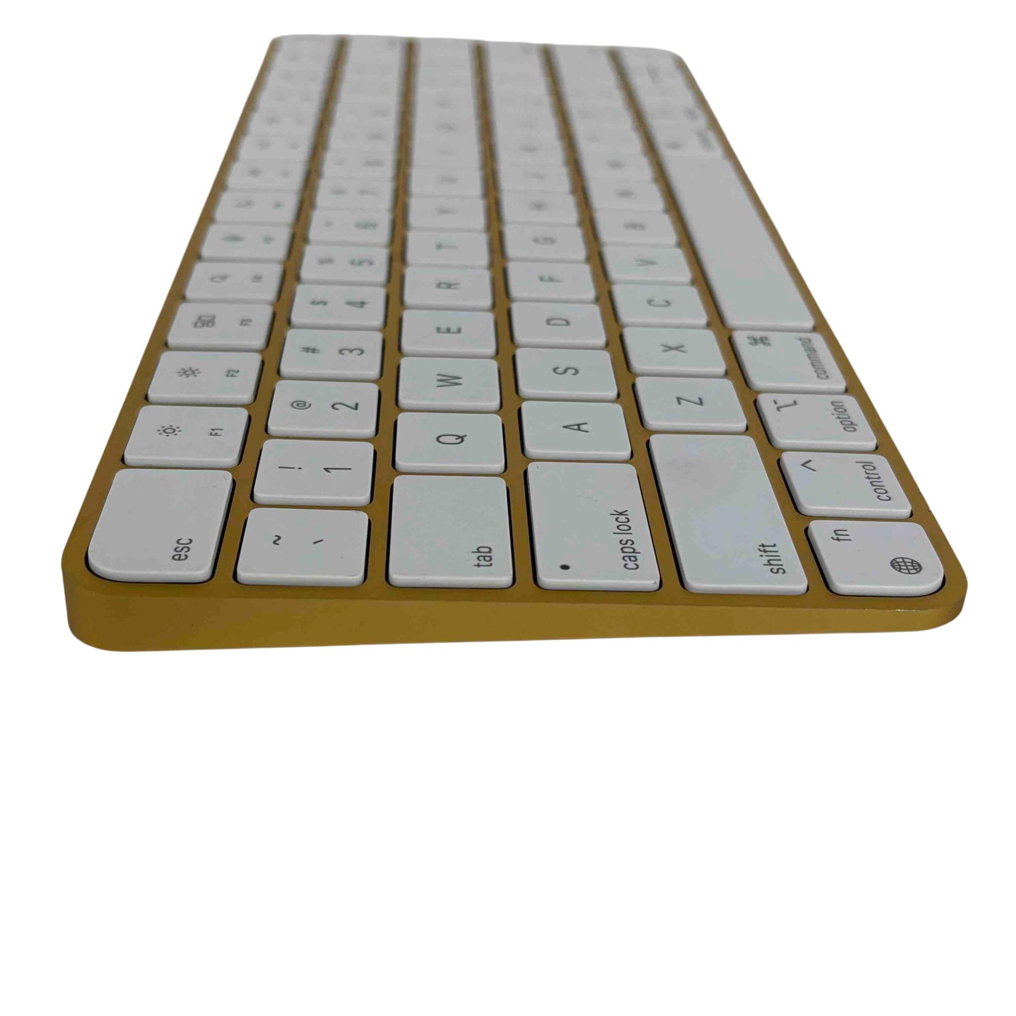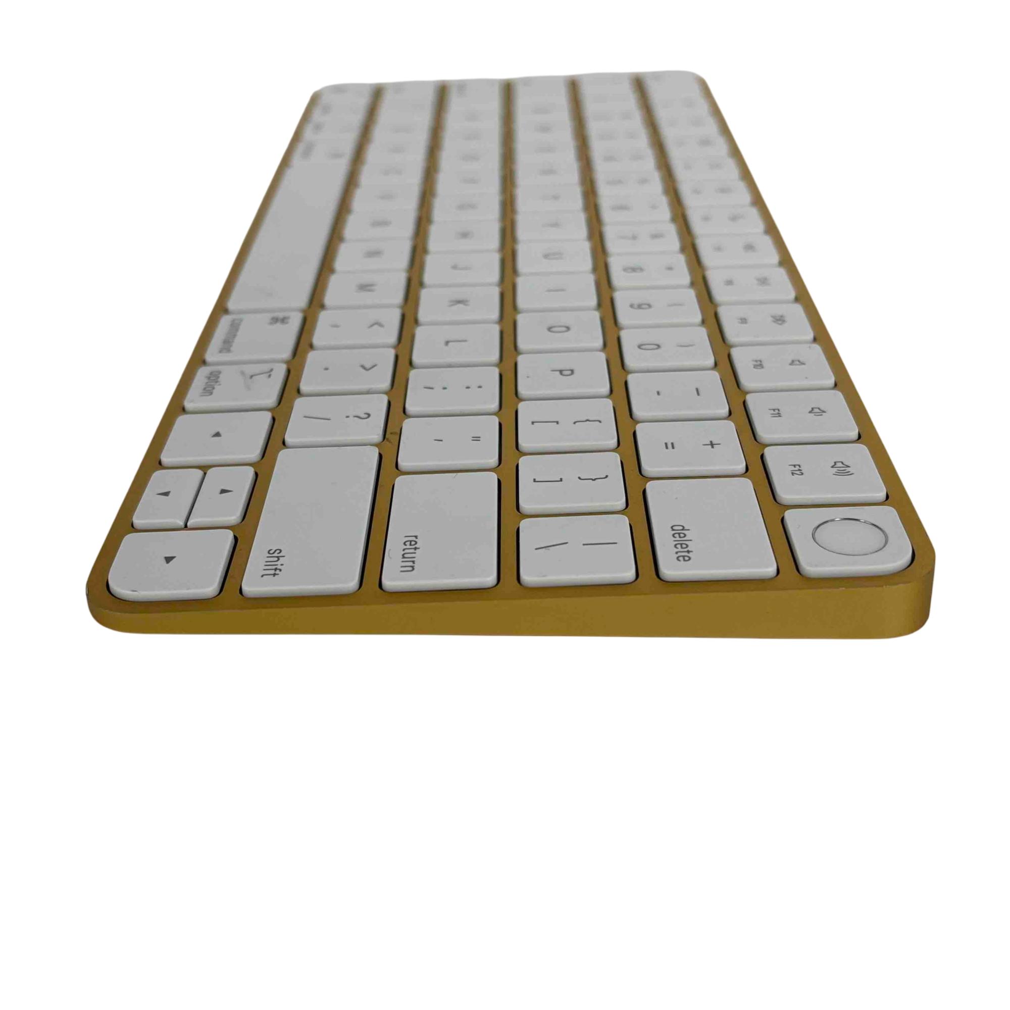 Enhance your typing experience with the Apple Magic Keyboard A2449, featuring a sleek white and gold design that blends elegance with functionality. This wireless keyboard includes a numeric keypad, offering precision and efficiency for all your computing tasks. Ideal for both professional and personal use, its lightweight and minimalist design ensures portability without sacrificing performance.