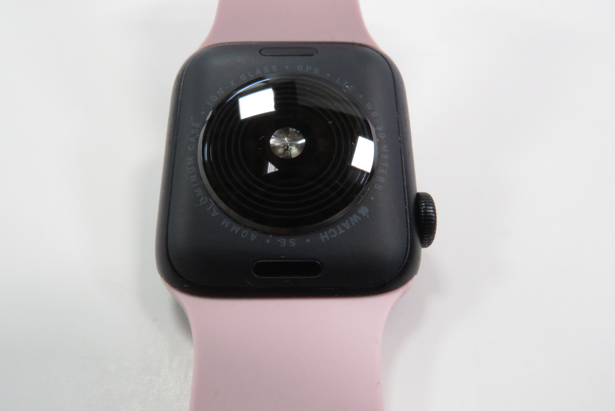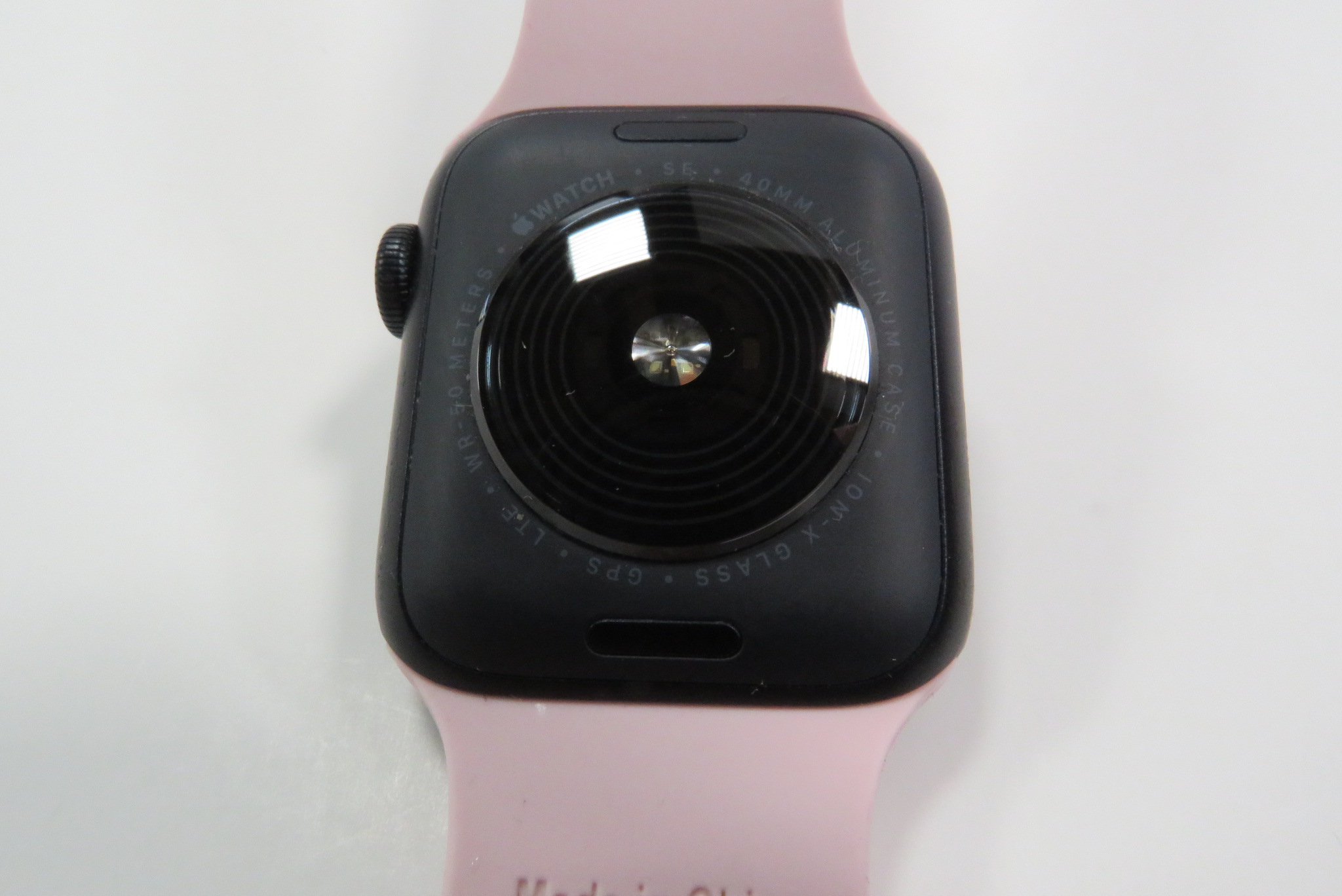 All Apple Watch SE 2 devices are controlled with a Digital Crown with haptic feedback and a touch capable display. This particular Apple Watch SE 2, a cellular capable model in the 40 mm size, features a 324x394 LTPO OLED screen with Ion-X glass packed in an aluminum case with a ceramic and sapphire crystal back that connects to the charger.