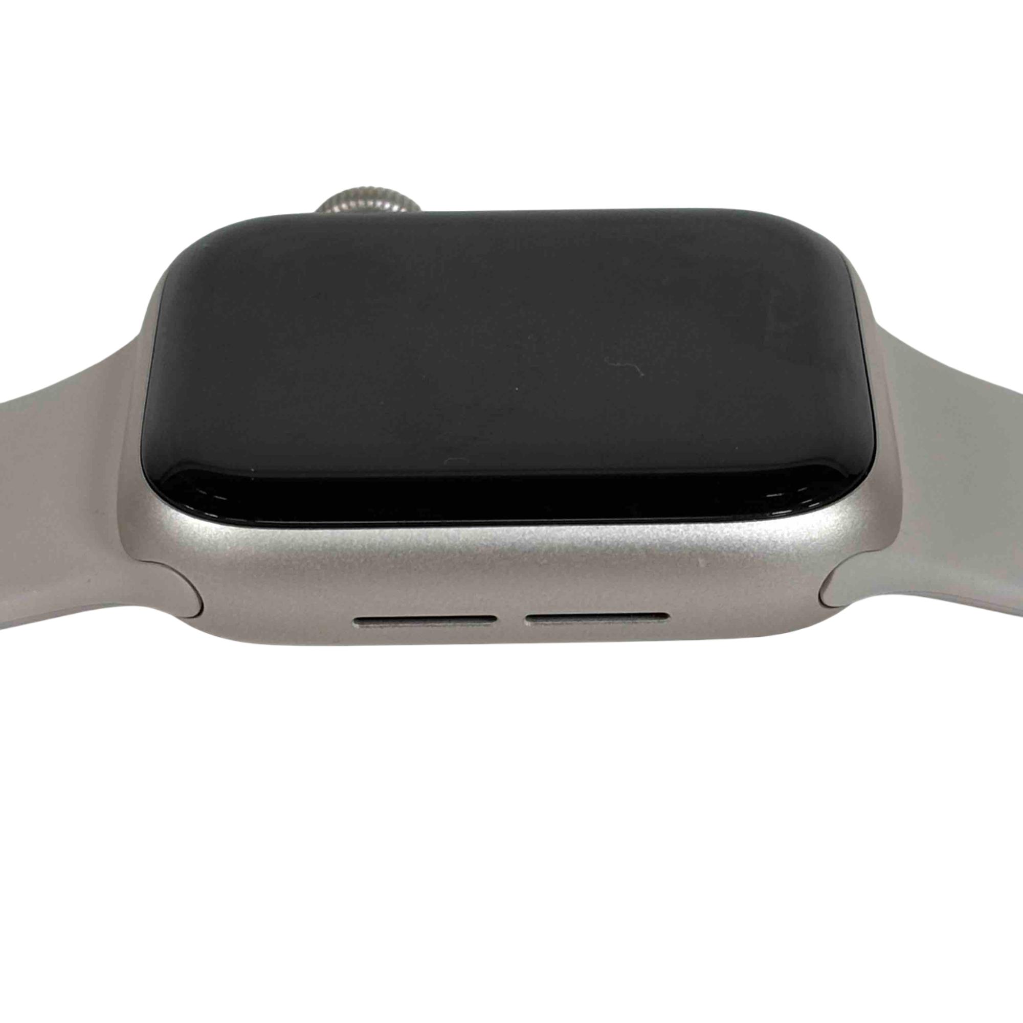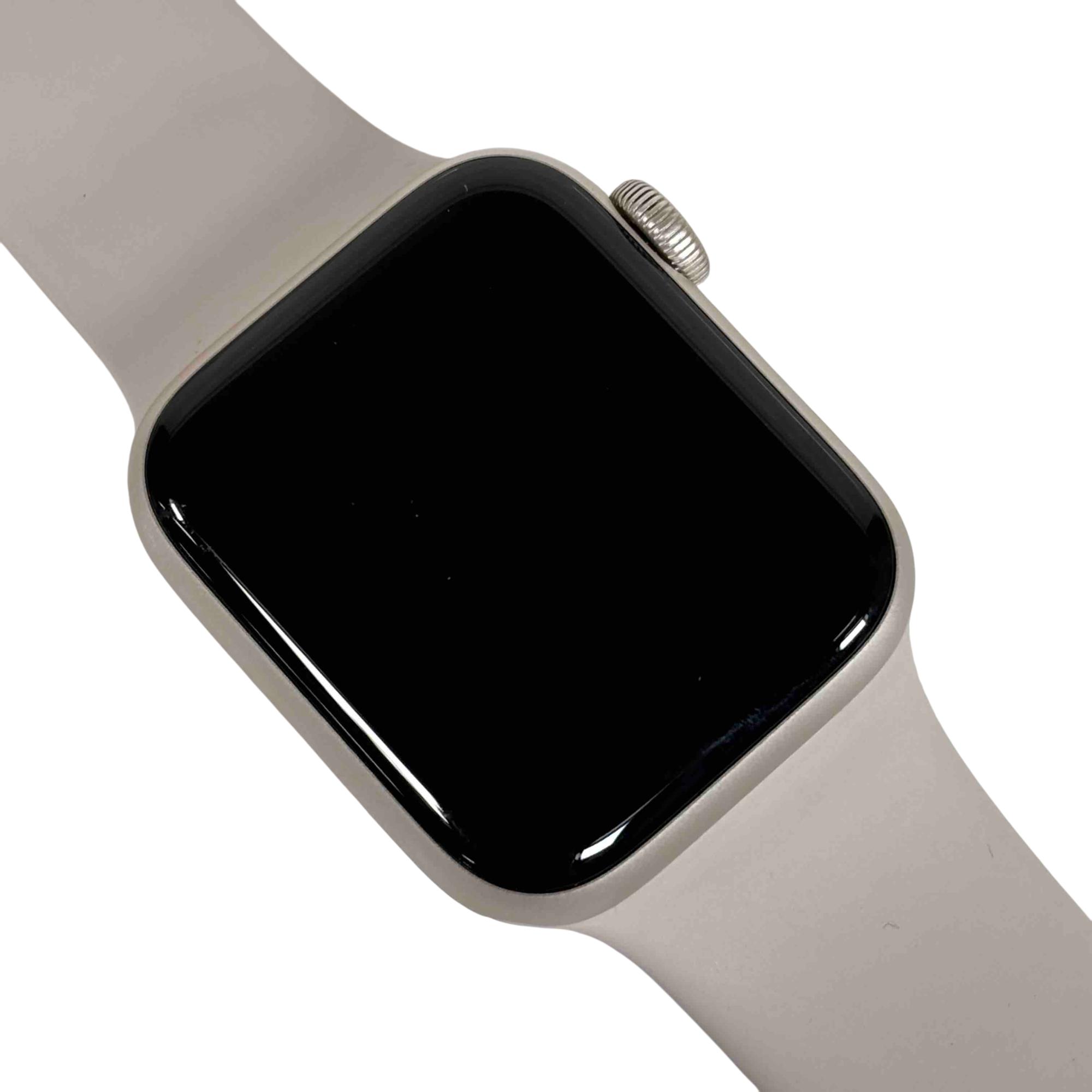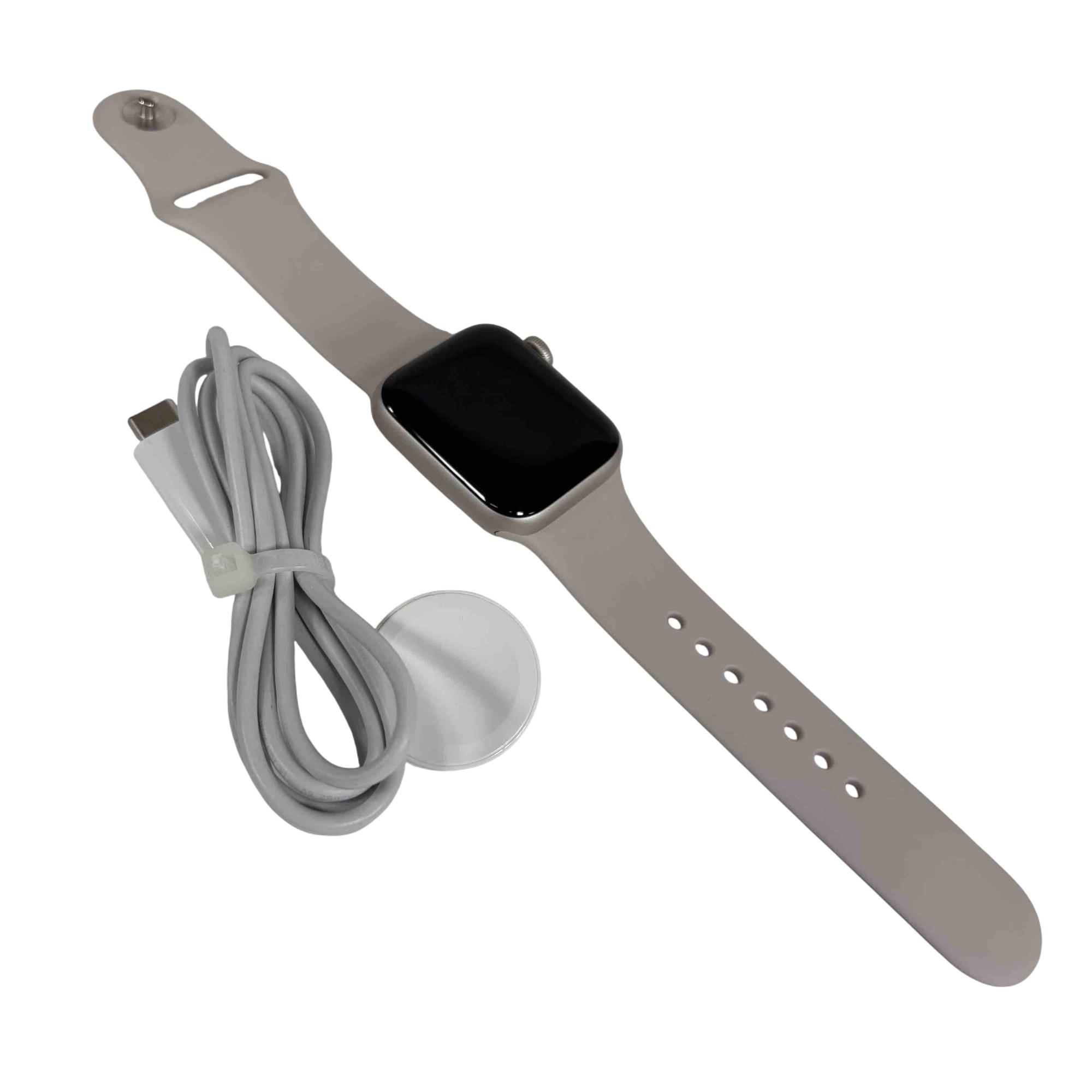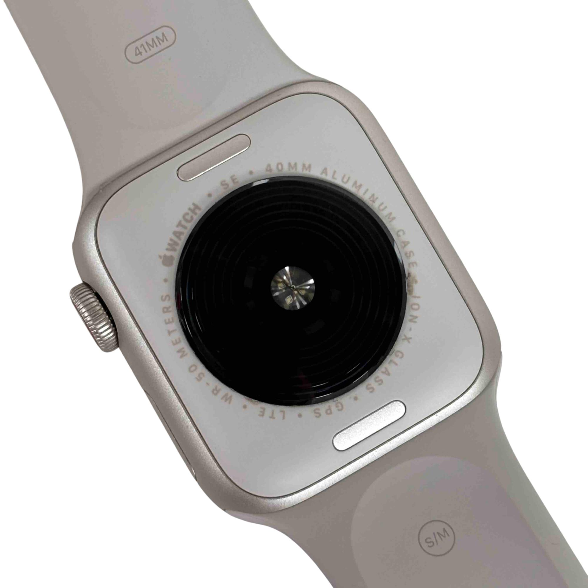 A sophisticated and feature-rich smartwatch that offers a blend of style and functionality. Encased in a 40mm aluminum frame, it comes with a starlight sport band that adds a touch of elegance to its overall design. This model supports both GPS and cellular services, enabling you to make calls, send texts, and get directions without needing your phone. Features a powerful S5 dual-core SiP for fast performance, fall detection, Emergency SOS, and international emergency calling from your watch. It also includes high and low heart rate notifications, irregular heart rhythm notifications, and even the ability to take an ECG. With the Always-On Altimeter, it provides real-time elevation all day long. The watch is swimproof, so it can be worn in the pool or ocean.