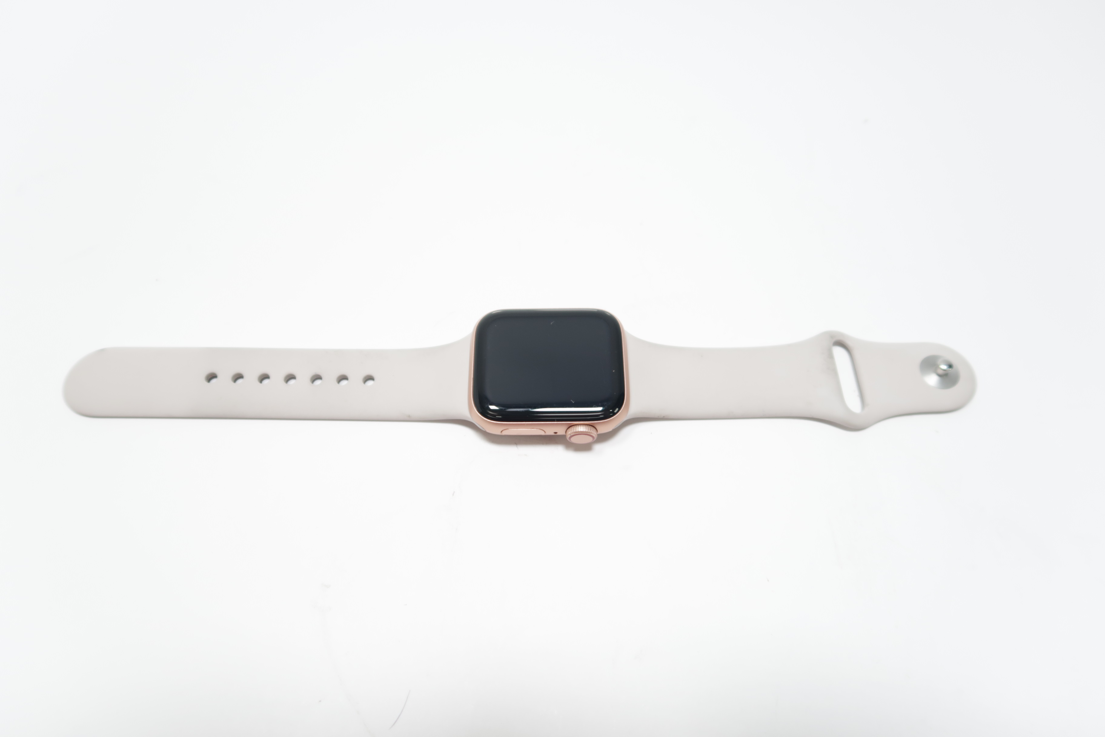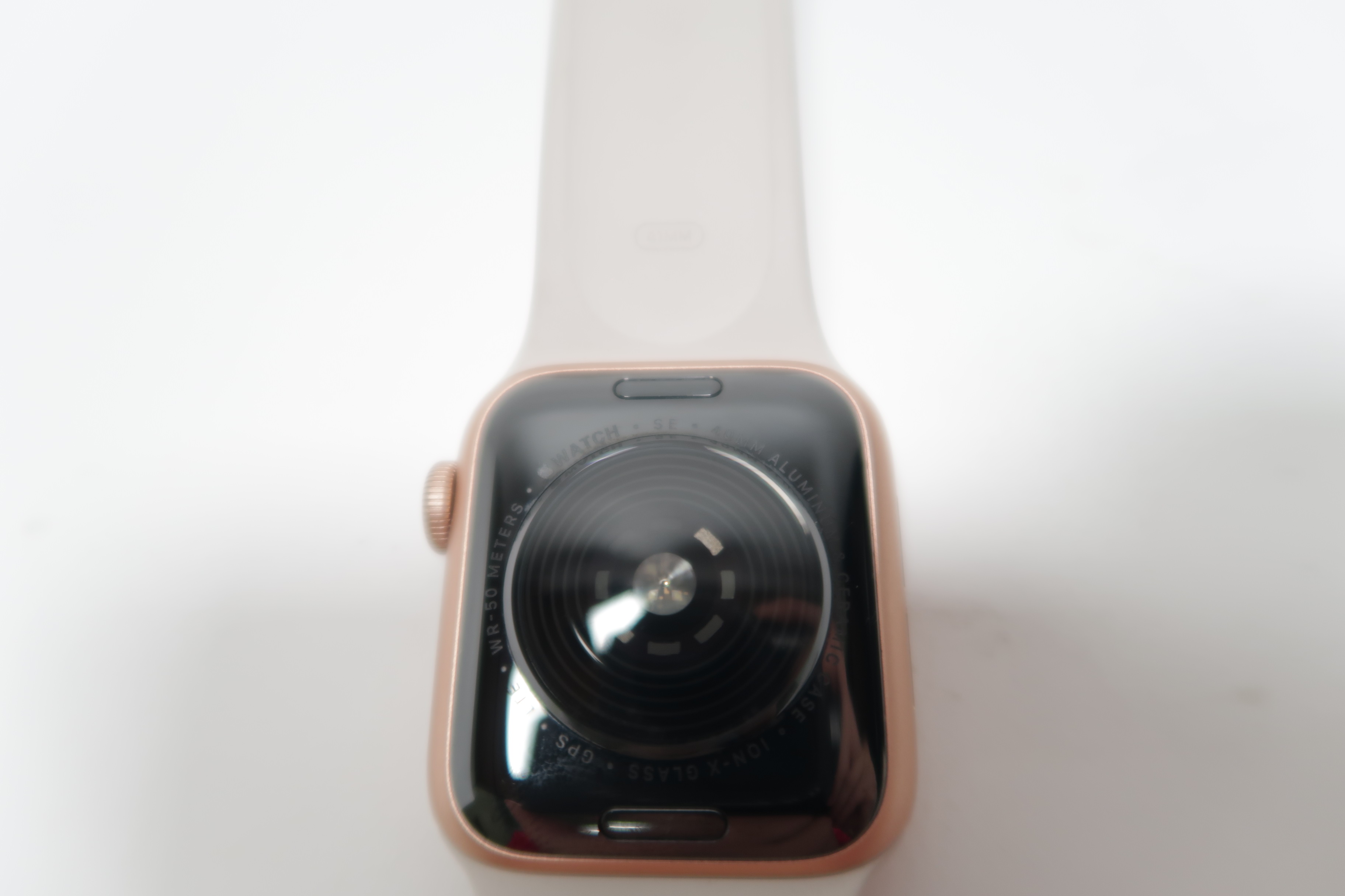 All Apple Watch SE devices are controlled with a Digital Crown with haptic feedback and a touch capable display. This particular Apple Watch SE, the GPS model in the 40 mm size, features a 324x394 LTPO OLED screen with Ion-X glass packed in an aluminum case with a ceramic and sapphire crystal back that connects to the charger.