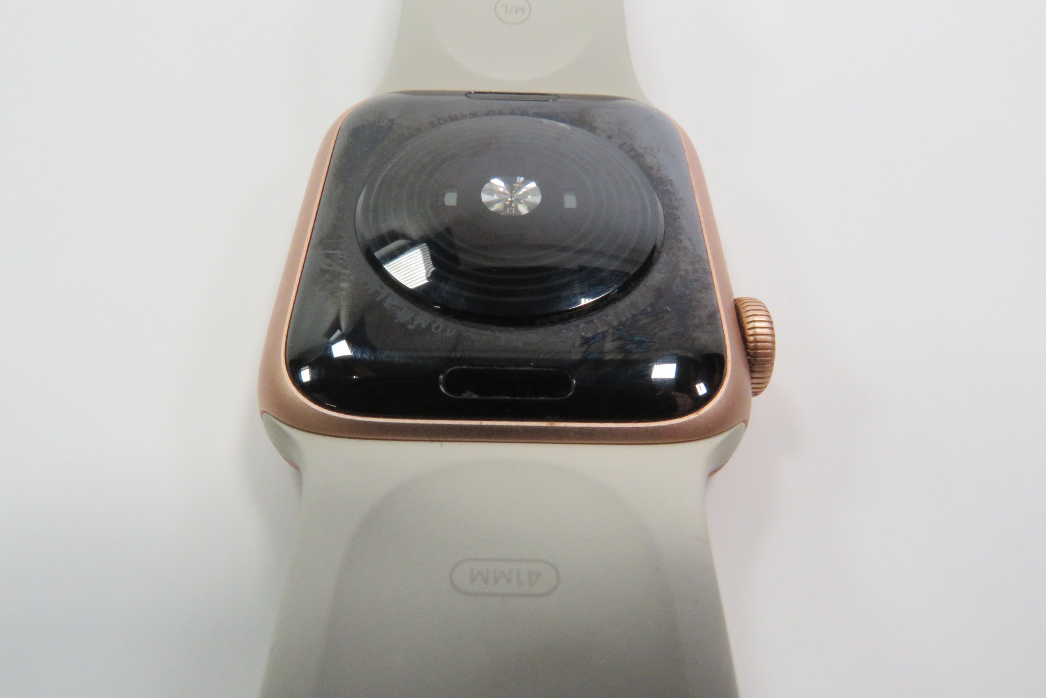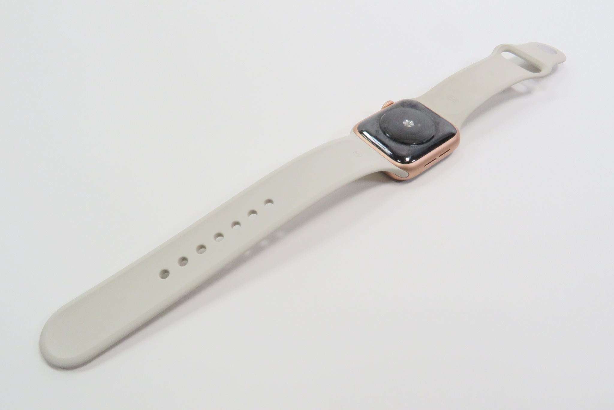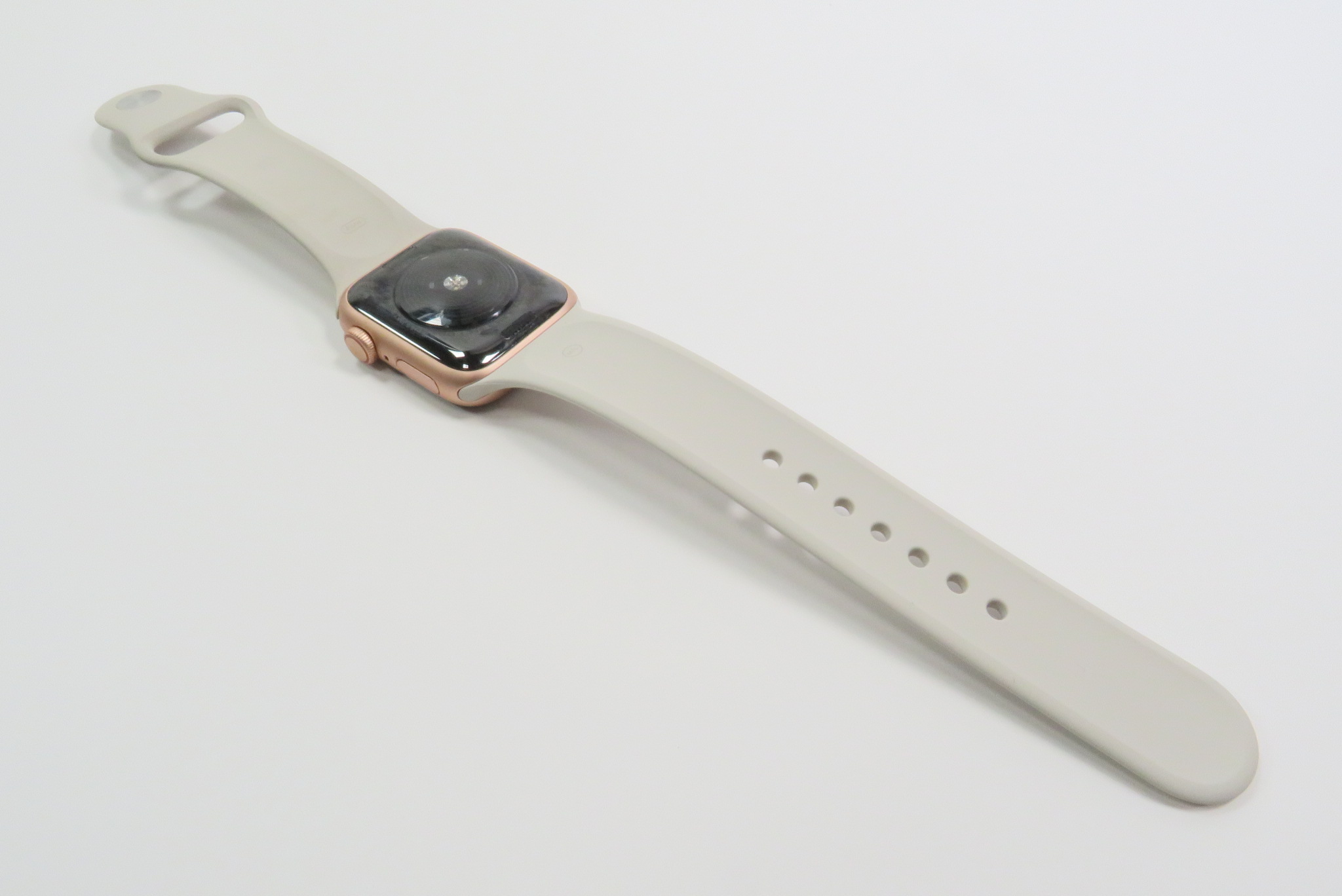All Apple Watch SE devices are controlled with a Digital Crown with haptic feedback and a touch capable display. This particular Apple Watch SE, the GPS model in the 40 mm size, features a 324x394 LTPO OLED screen with Ion-X glass packed in an aluminum case with a ceramic and sapphire crystal back that connects to the charger.