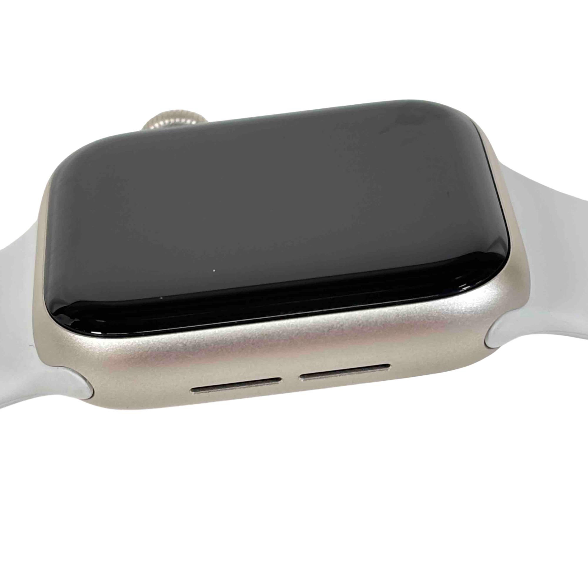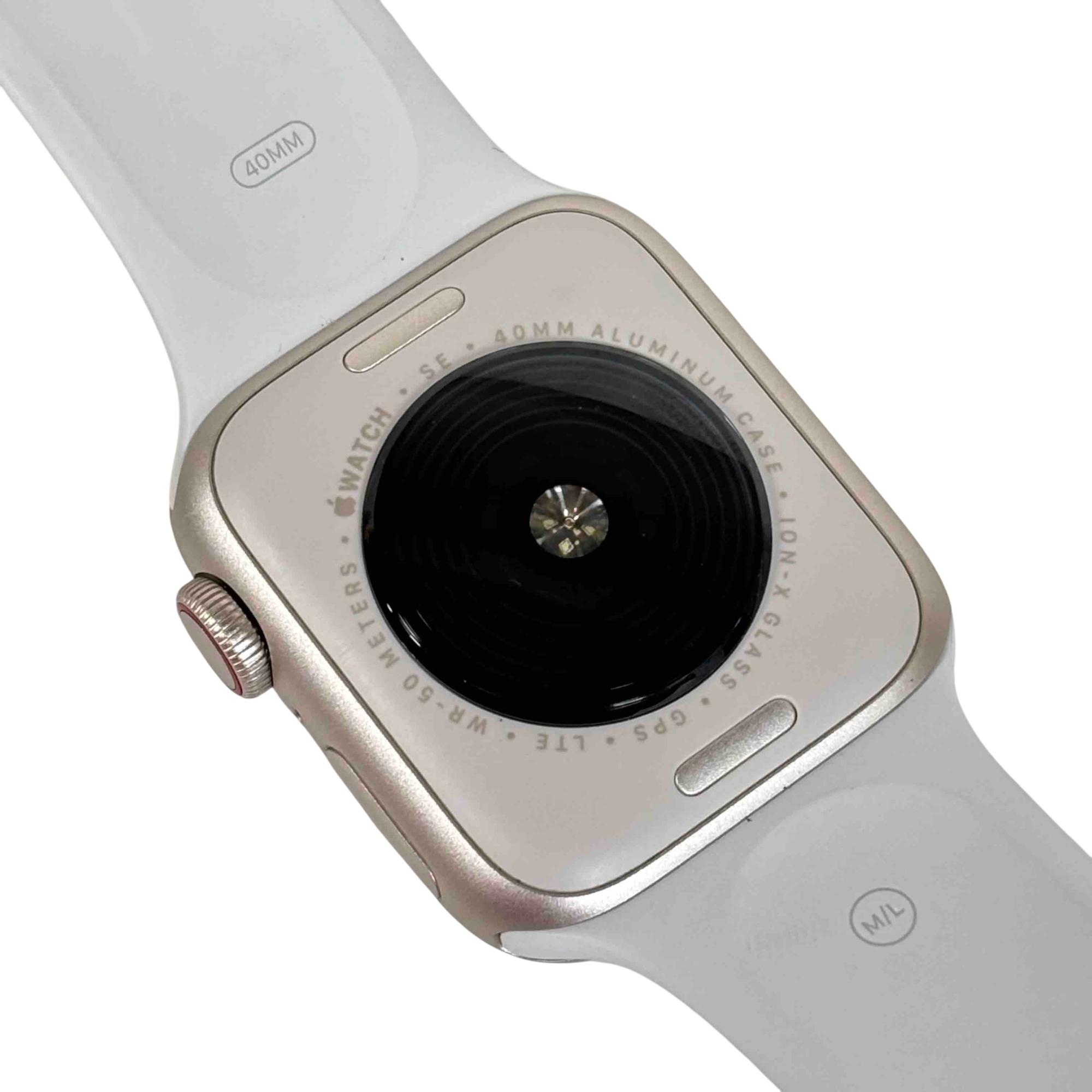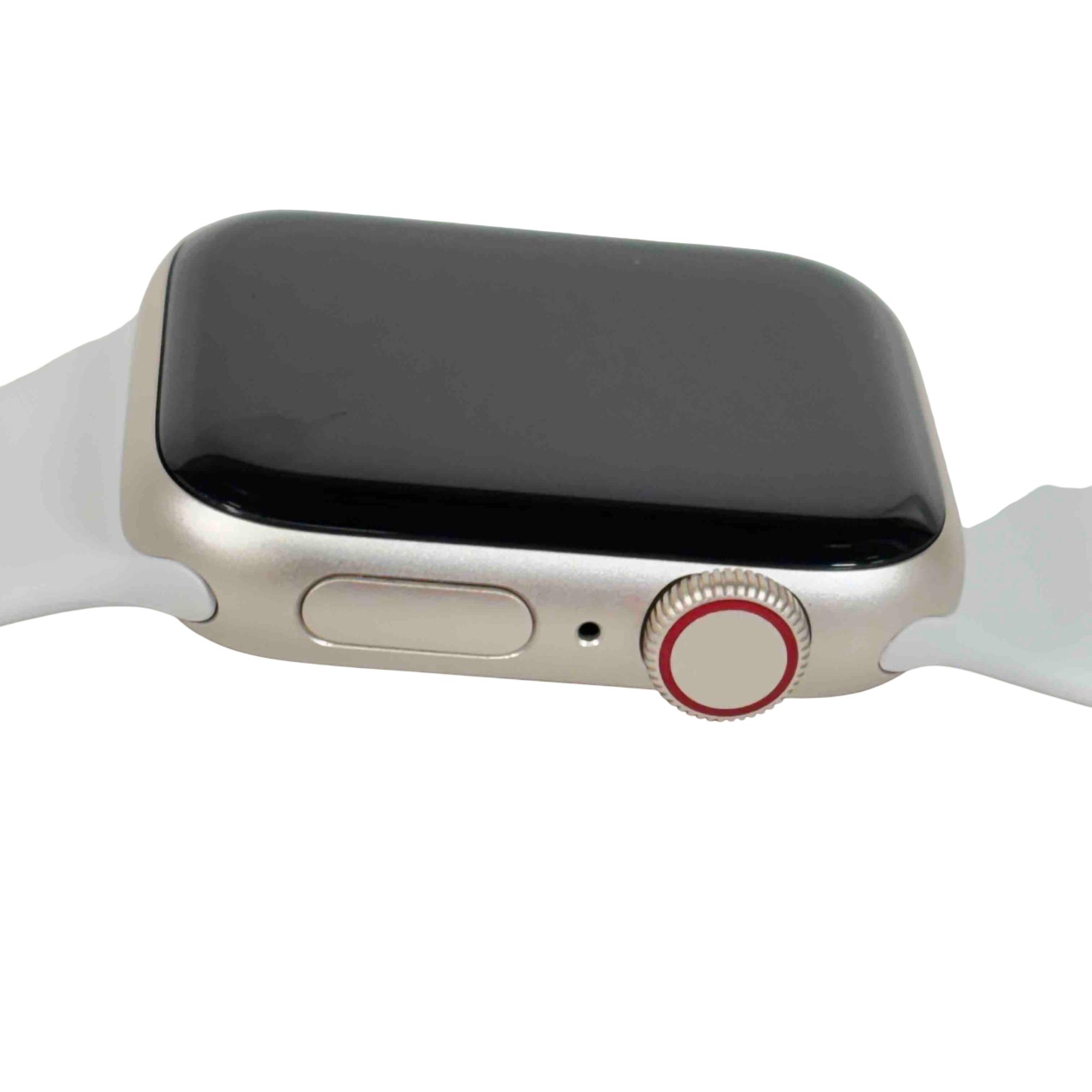 A sophisticated and feature-rich smartwatch that offers a blend of style and functionality. Encased in a 40mm aluminum frame, it comes with a starlight sport band that adds a touch of elegance to its overall design. This model supports both GPS and cellular services, enabling you to make calls, send texts, and get directions without needing your phone. Features a powerful S5 dual-core SiP for fast performance, fall detection, Emergency SOS, and international emergency calling from your watch. It also includes high and low heart rate notifications, irregular heart rhythm notifications, and even the ability to take an ECG. With the Always-On Altimeter, it provides real-time elevation all day long. The watch is swimproof, so it can be worn in the pool or ocean.
