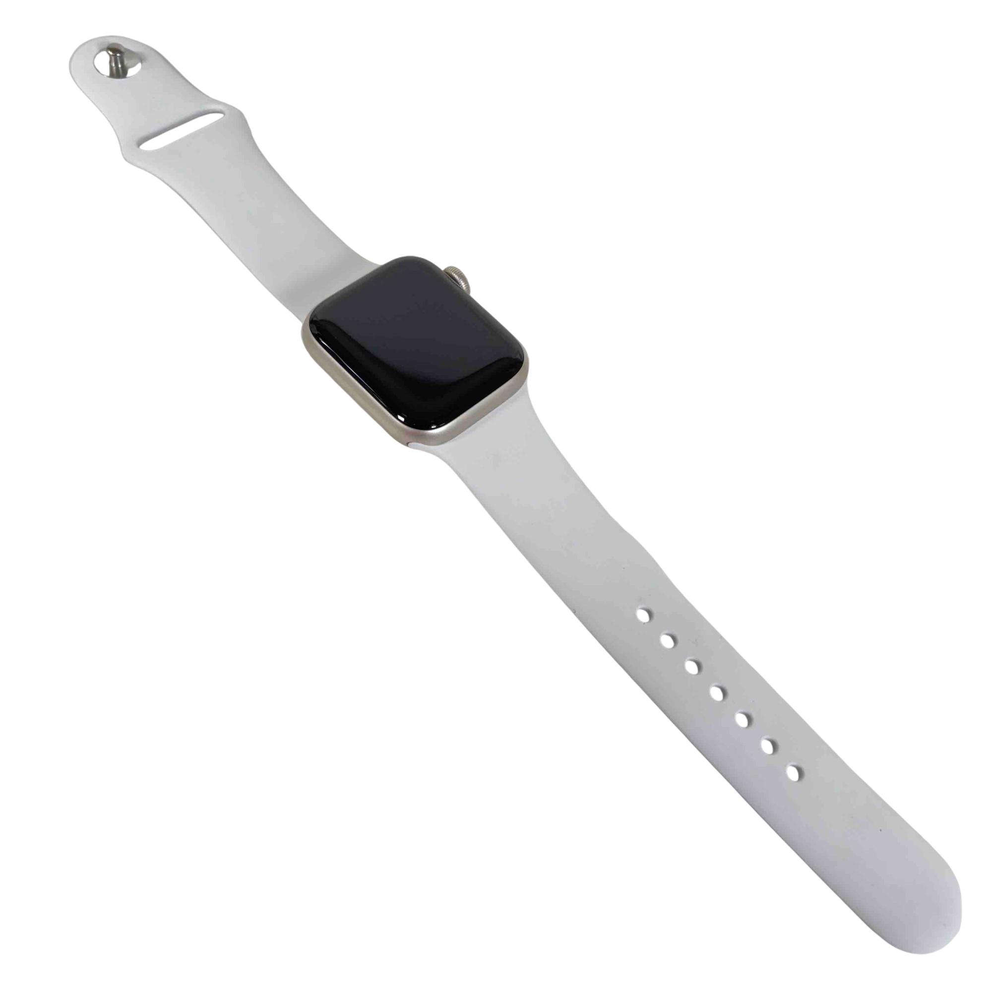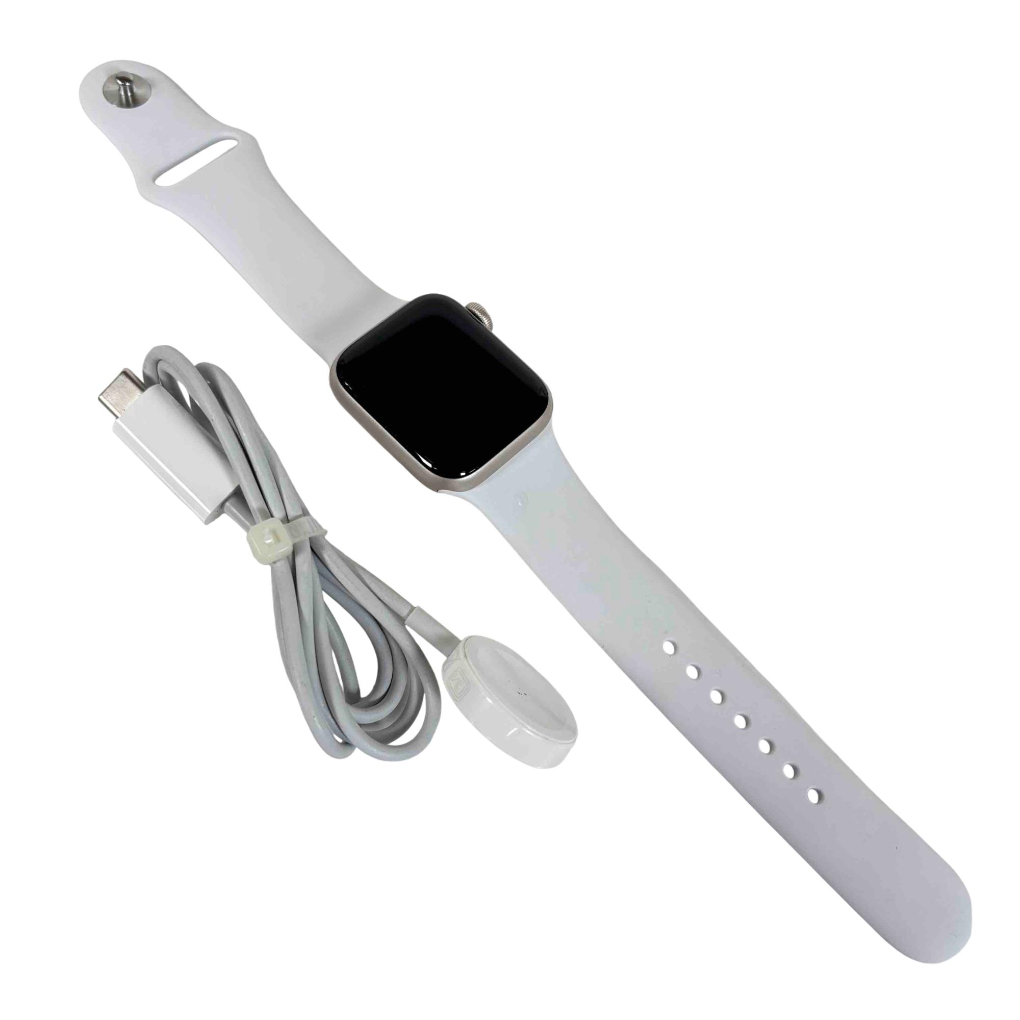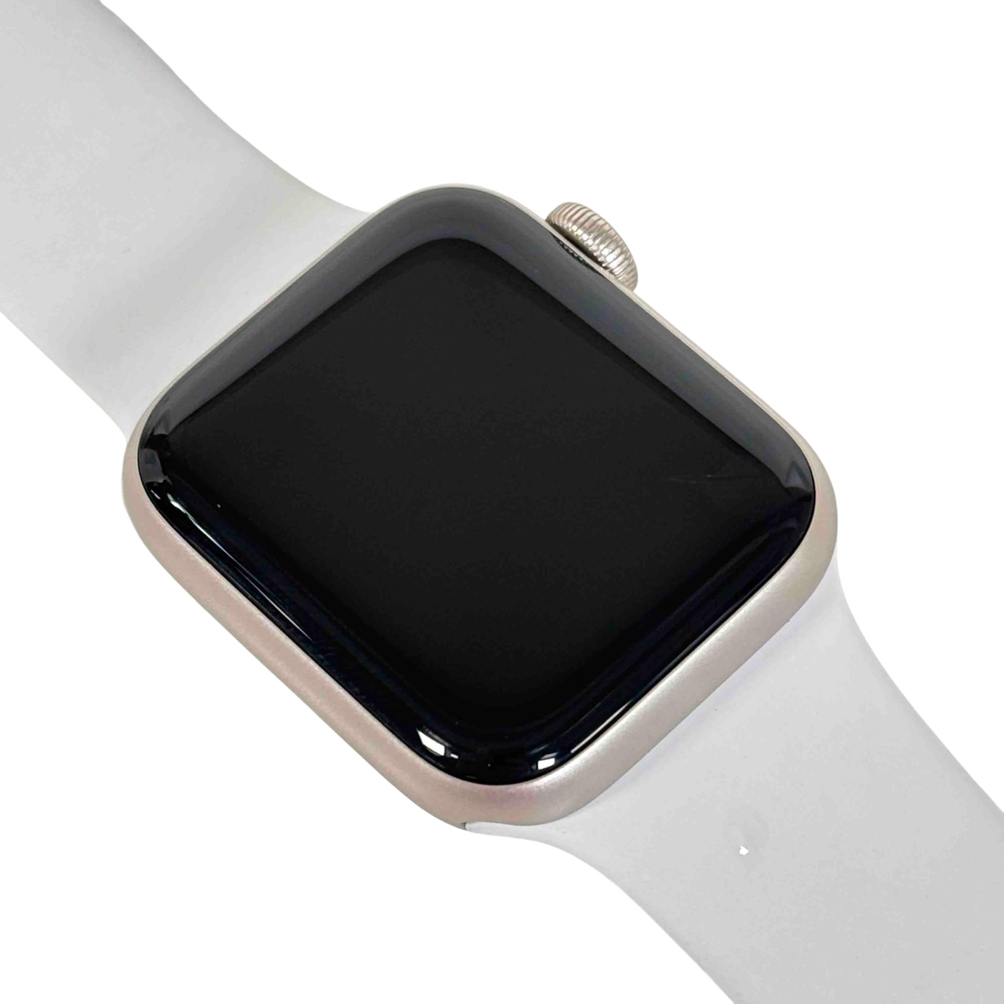 A sophisticated and feature-rich smartwatch that offers a blend of style and functionality. Encased in a 40mm aluminum frame, it comes with a starlight sport band that adds a touch of elegance to its overall design. This model supports both GPS and cellular services, enabling you to make calls, send texts, and get directions without needing your phone. Features a powerful S5 dual-core SiP for fast performance, fall detection, Emergency SOS, and international emergency calling from your watch. It also includes high and low heart rate notifications, irregular heart rhythm notifications, and even the ability to take an ECG. With the Always-On Altimeter, it provides real-time elevation all day long. The watch is swimproof, so it can be worn in the pool or ocean.