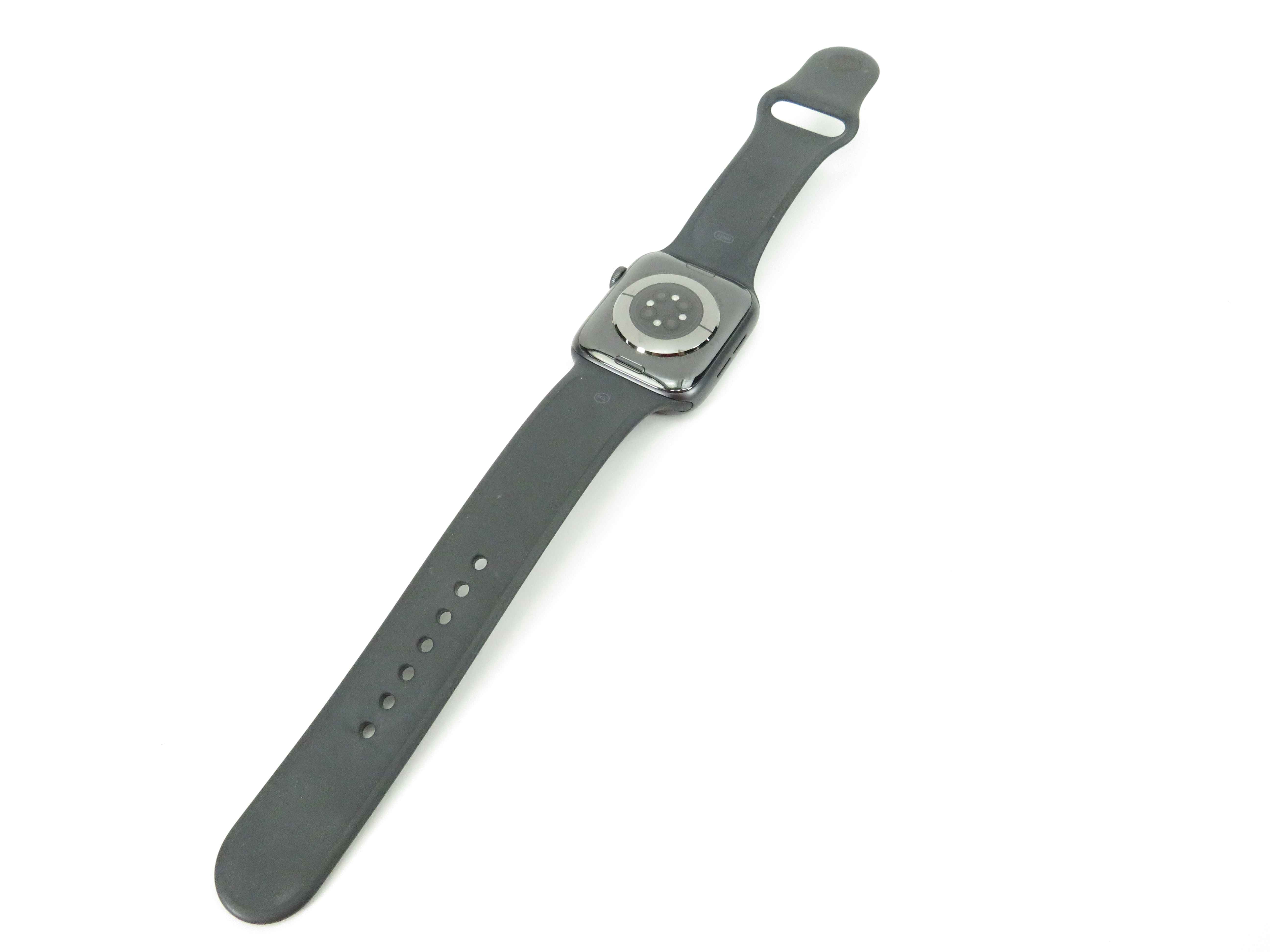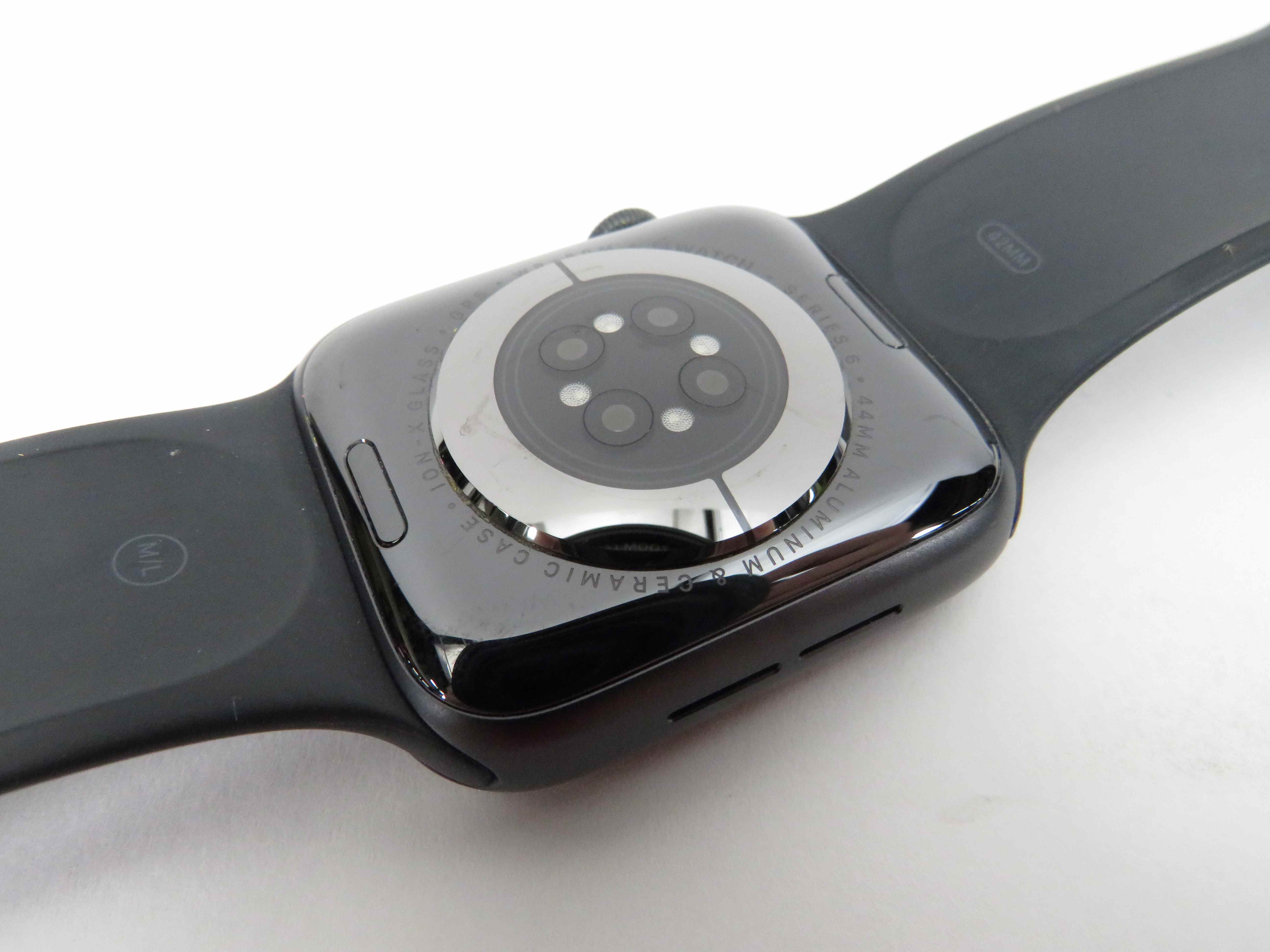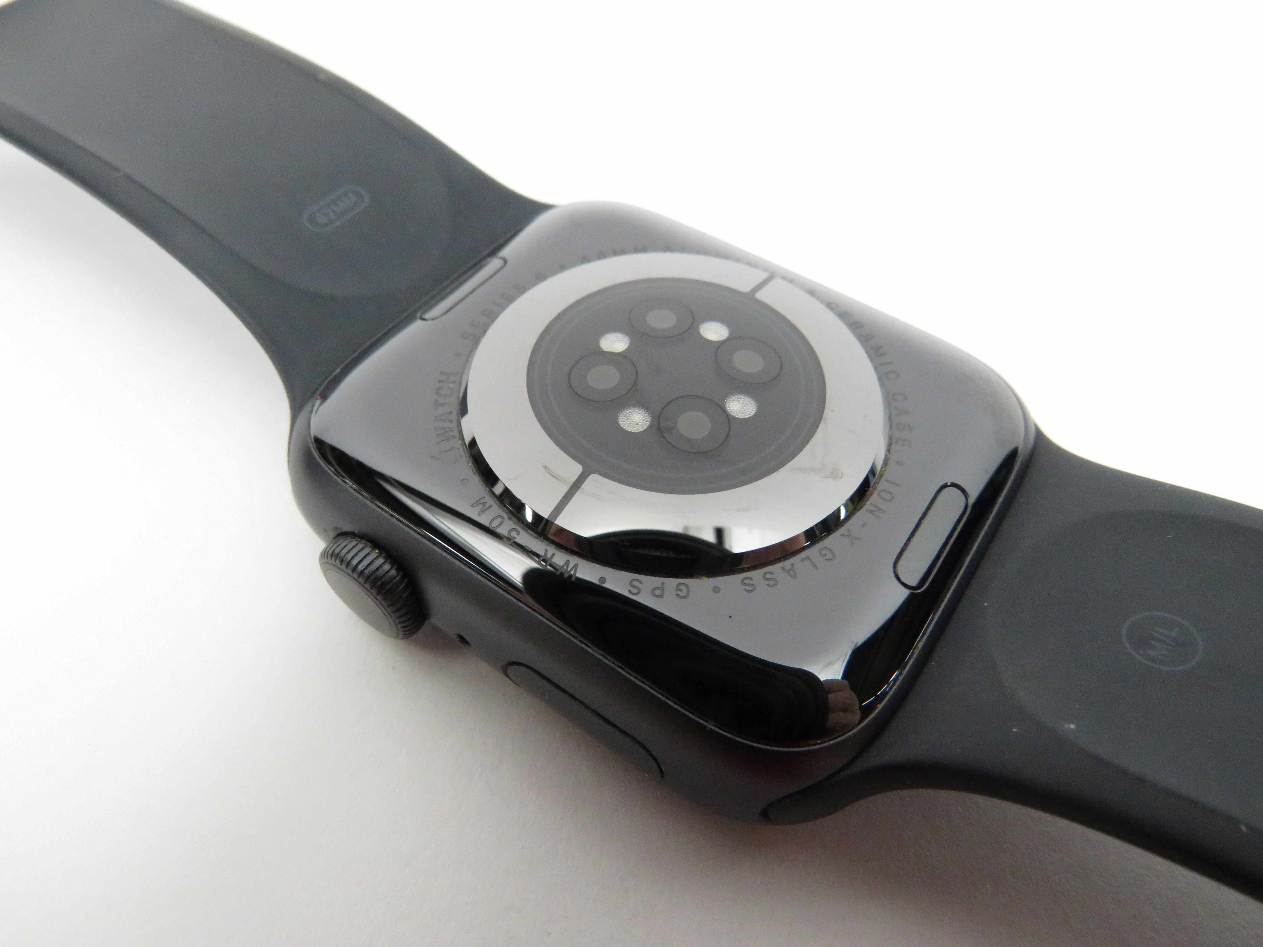 All Apple Watch Series 6 devices are controlled with a Digital Crown with haptic feedback and a touch capable display. This particular Apple Watch Series 6 model in the 44 mm size, features a 368x448 LTPO OLED screen either with Ion-X glass packed in an aluminum case or sapphire crystal glass packed in a stainless steel case as well as a ceramic and sapphire crystal back that connects to the charger.