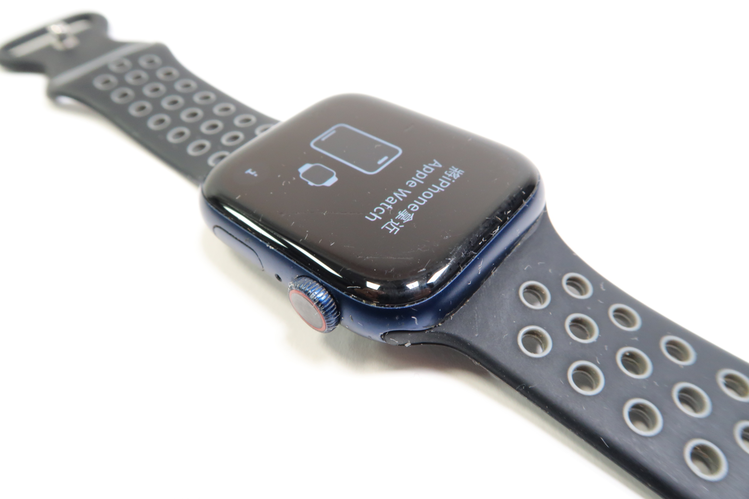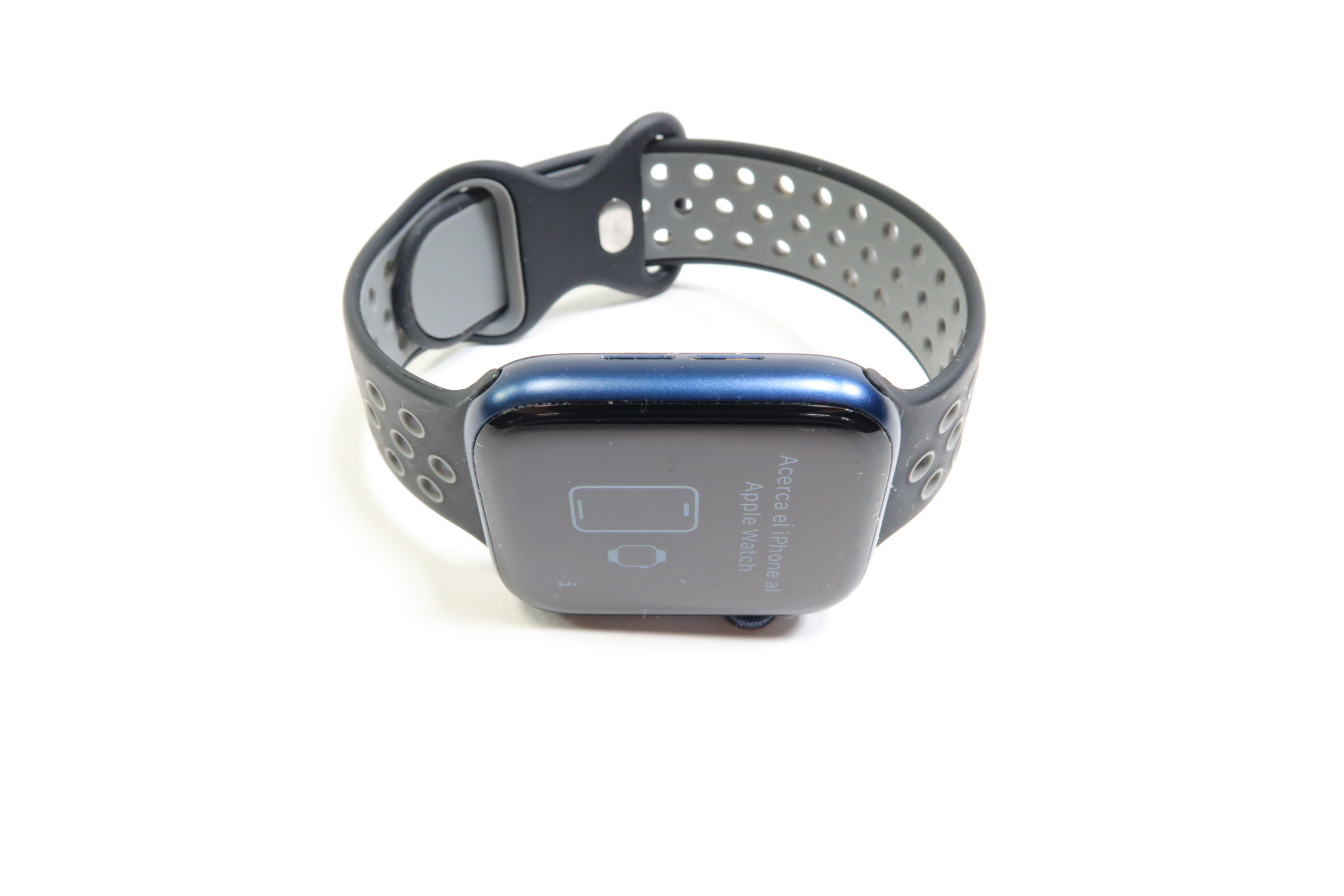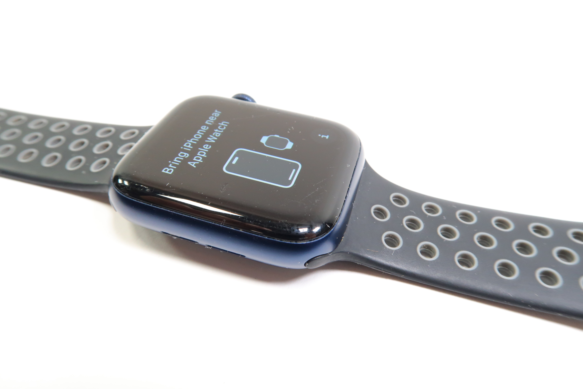 All Apple Watch Series 6 devices are controlled with a Digital Crown with haptic feedback and a touch capable display. This particular Apple Watch Series 6 model in the 44 mm size, features a 368x448 LTPO OLED screen either with Ion-X glass packed in an aluminum case or sapphire crystal glass packed in a stainless steel case as well as a ceramic and sapphire crystal back that connects to the charger.