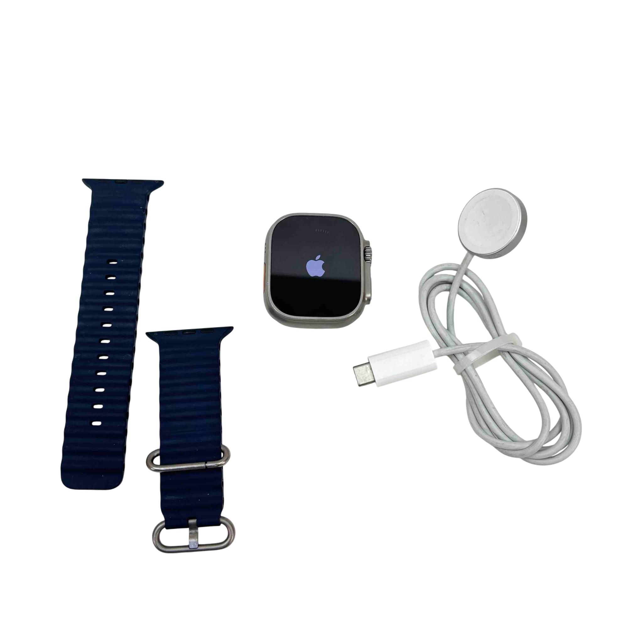 Introducing the Apple Watch Ultra 2, a fusion of luxury and technology crafted with a robust 49mm titanium and ceramic case. Perfectly designed for those who demand the best, this watch features a stunning sapphire crystal display and a stylish blue band with a metal buckle. Ideal for staying connected, its built to endure with LTE, GPS, and a water resistance of up to 100 meters.