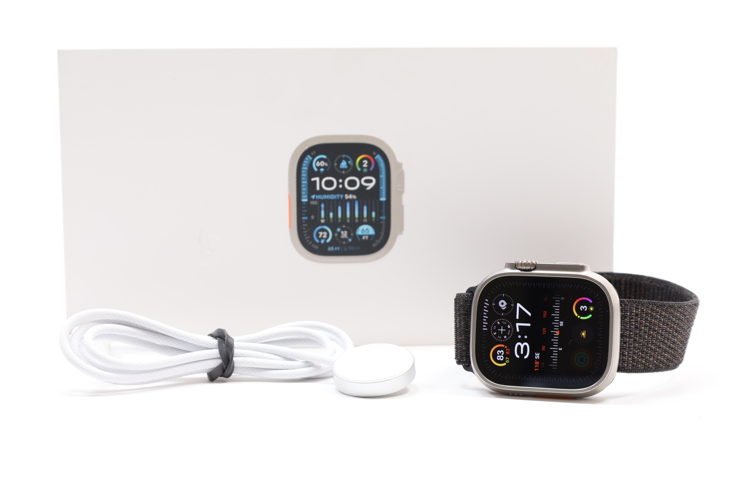 A rugged and highly capable smartwatch designed for endurance athletes, outdoor adventurers, and water sports enthusiasts. Encased in a corrosion-resistant titanium 49mm case, it features Apple's brightest Always-On Retina display, customizable Action button, and advanced safety and health functions like fall detection, crash detection, and heart health monitoring. The watch supports cellular connectivity, allowing you to make calls, send texts, and stream media without your iPhone, even with international roaming. It offers advanced fitness metrics, dual-frequency GPS for accurate tracking, and specialized modes for athletes, including custom workouts and detailed outdoor navigation with the Compass app. The watch is also water-resistant up to 100m and includes the Depth and Oceanic+ apps for water sports.