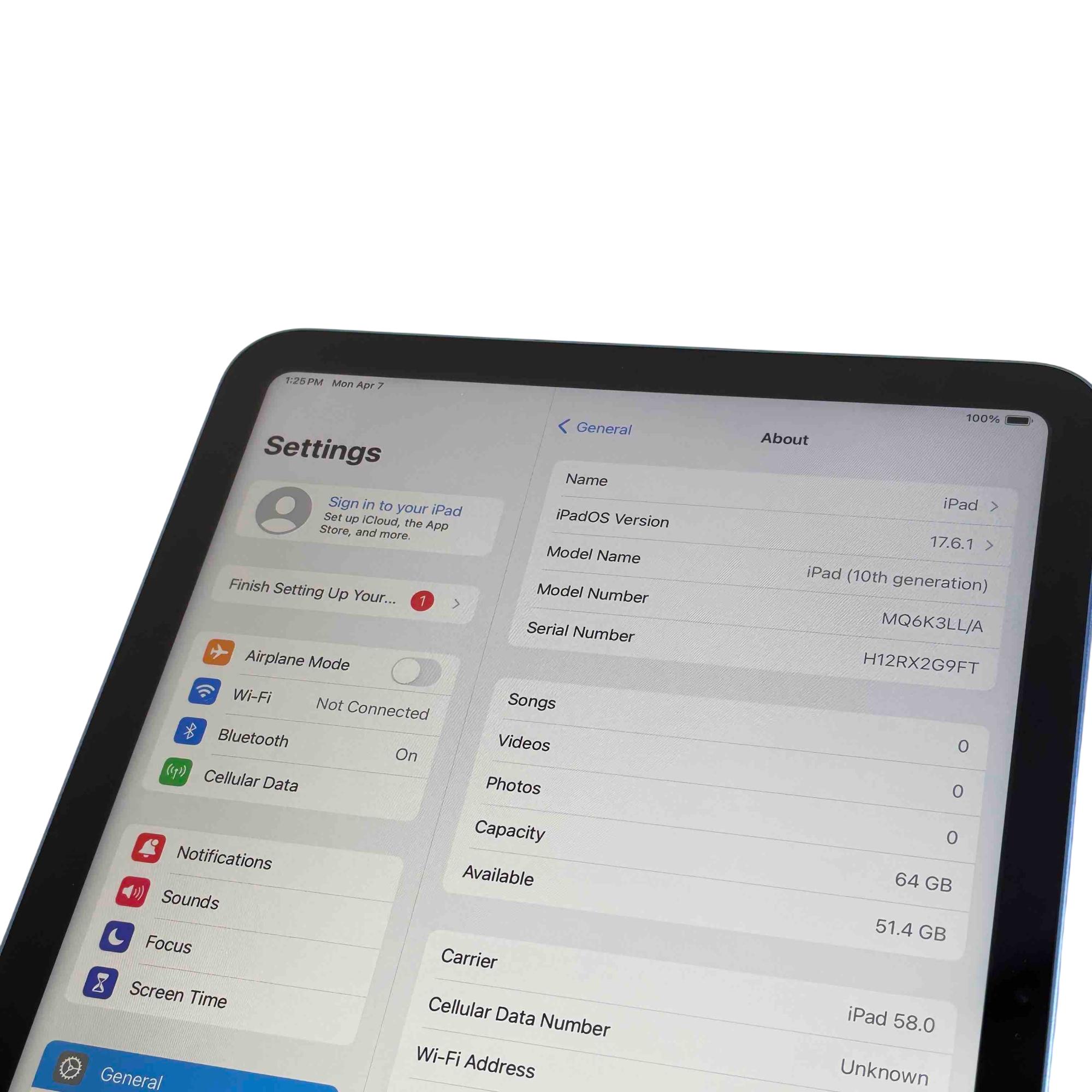 Model: iPad 10th Generation MQ6K3LL/A