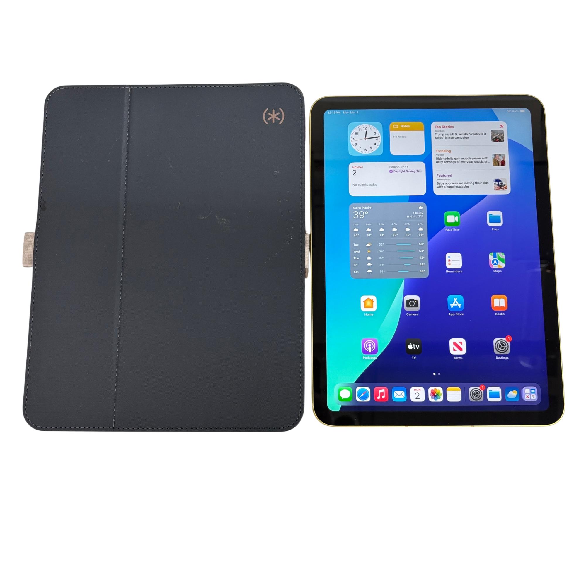 The Apple iPad 11-Inch (A16) MD7H4LL/A in vibrant yellow combines a sleek design with powerful performance, offering a crisp and colorful widescreen display ideal for multitasking and media consumption. This model features advanced connectivity options and a robust iPadOS experience, enhancing productivity and entertainment. The included case provides durable protection with a streamlined, ergonomic design perfect for daily use.