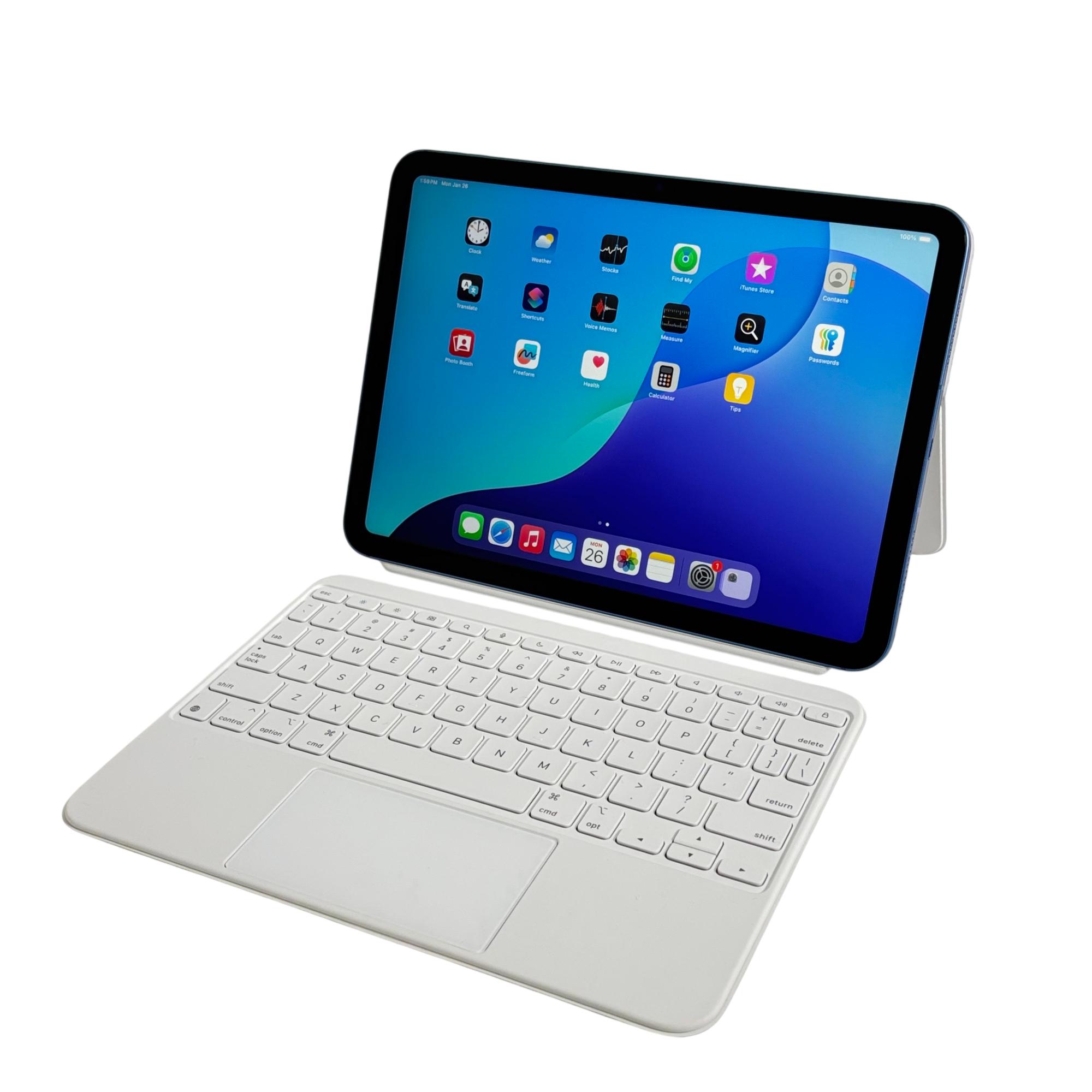 Apple iPad 10th Generation (MQ6K3LL/A, 64GB, 10.9-inch, Wi-Fi + Cellular, Blue) with Keyboard Case and Apple Pencil (USB-C) offers a vibrant 10.9-inch Liquid Retina display and combines powerful performance with portable convenience.