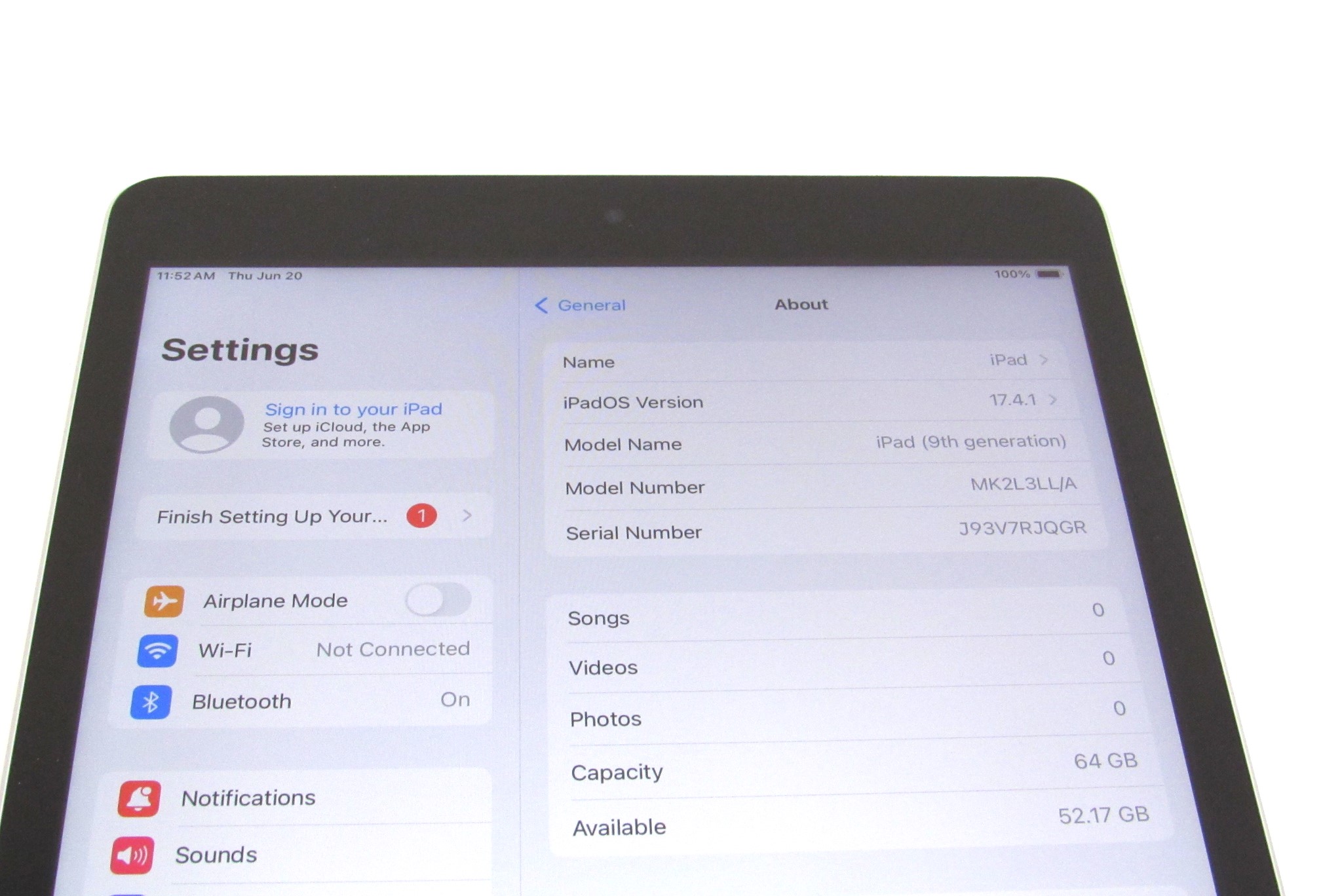 Model: iPad 9th Generation MK2L3LL/A