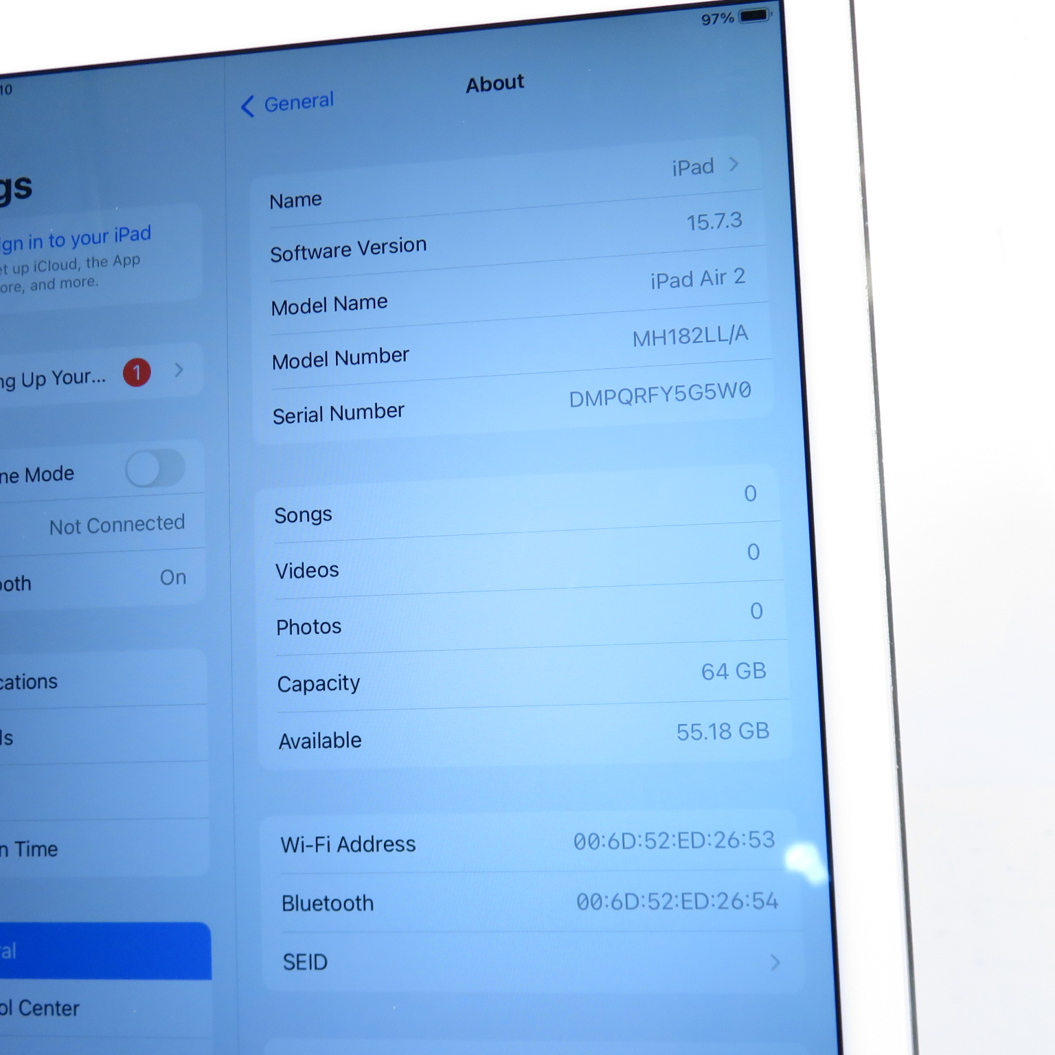 Model: iPad Air 2 MH182LL/A