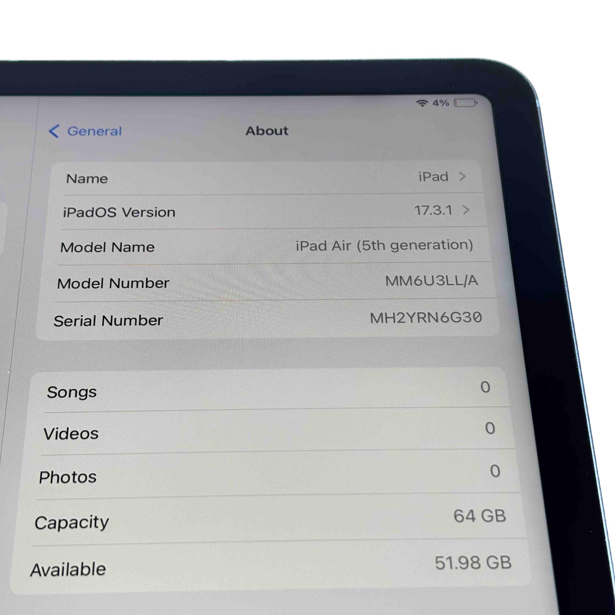 Model: iPad Air 5th Gen A2589 MM6U3LL/A