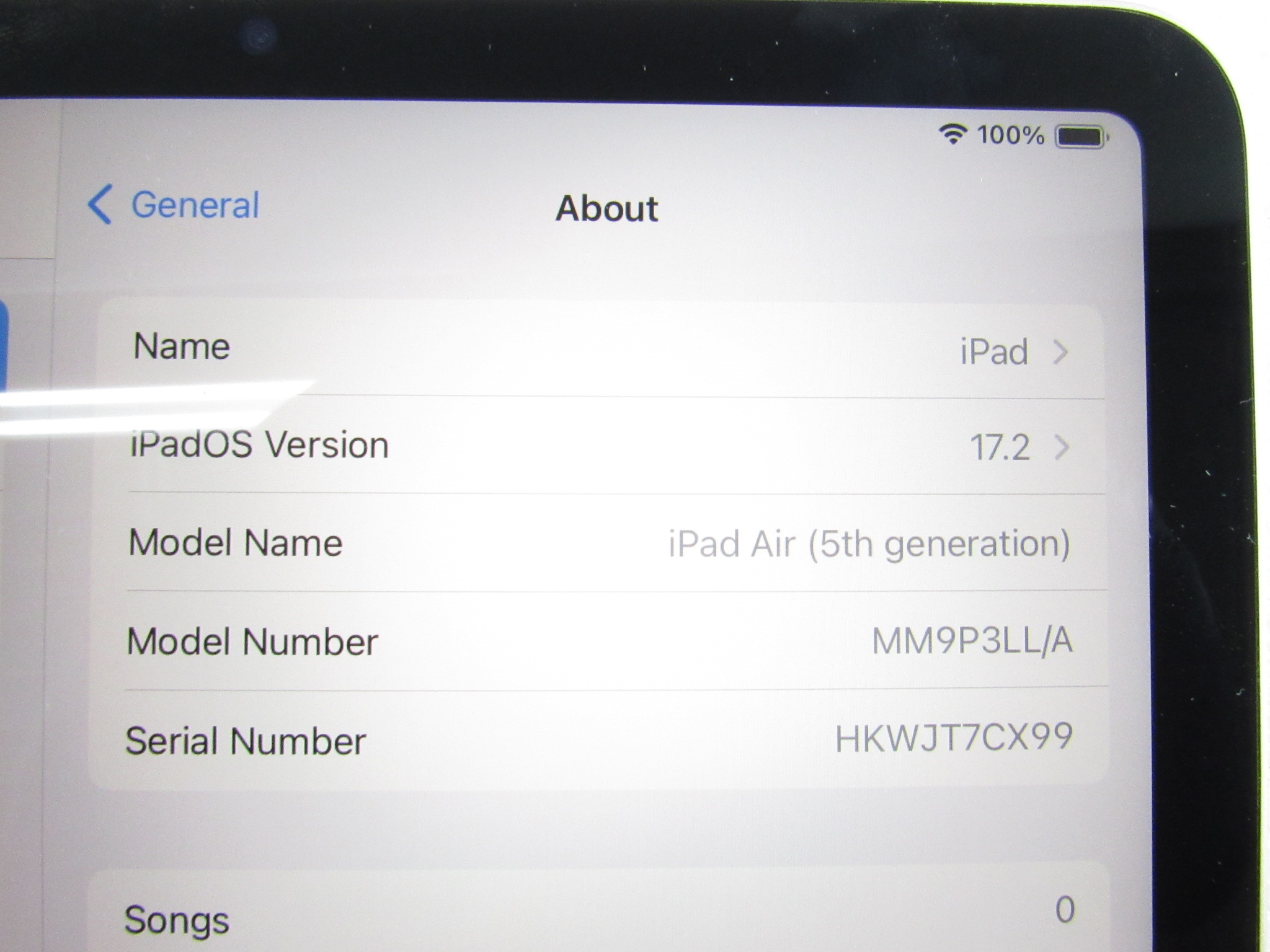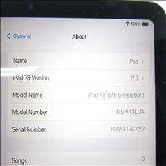 Model: iPad Air 5th Gen MM9P3LL/A