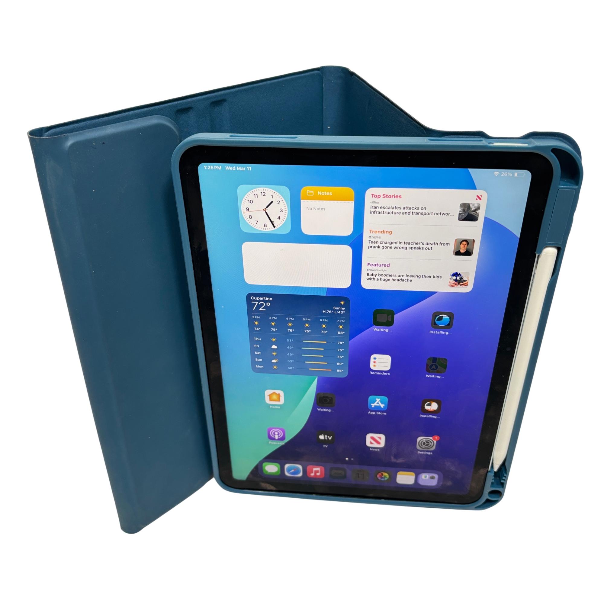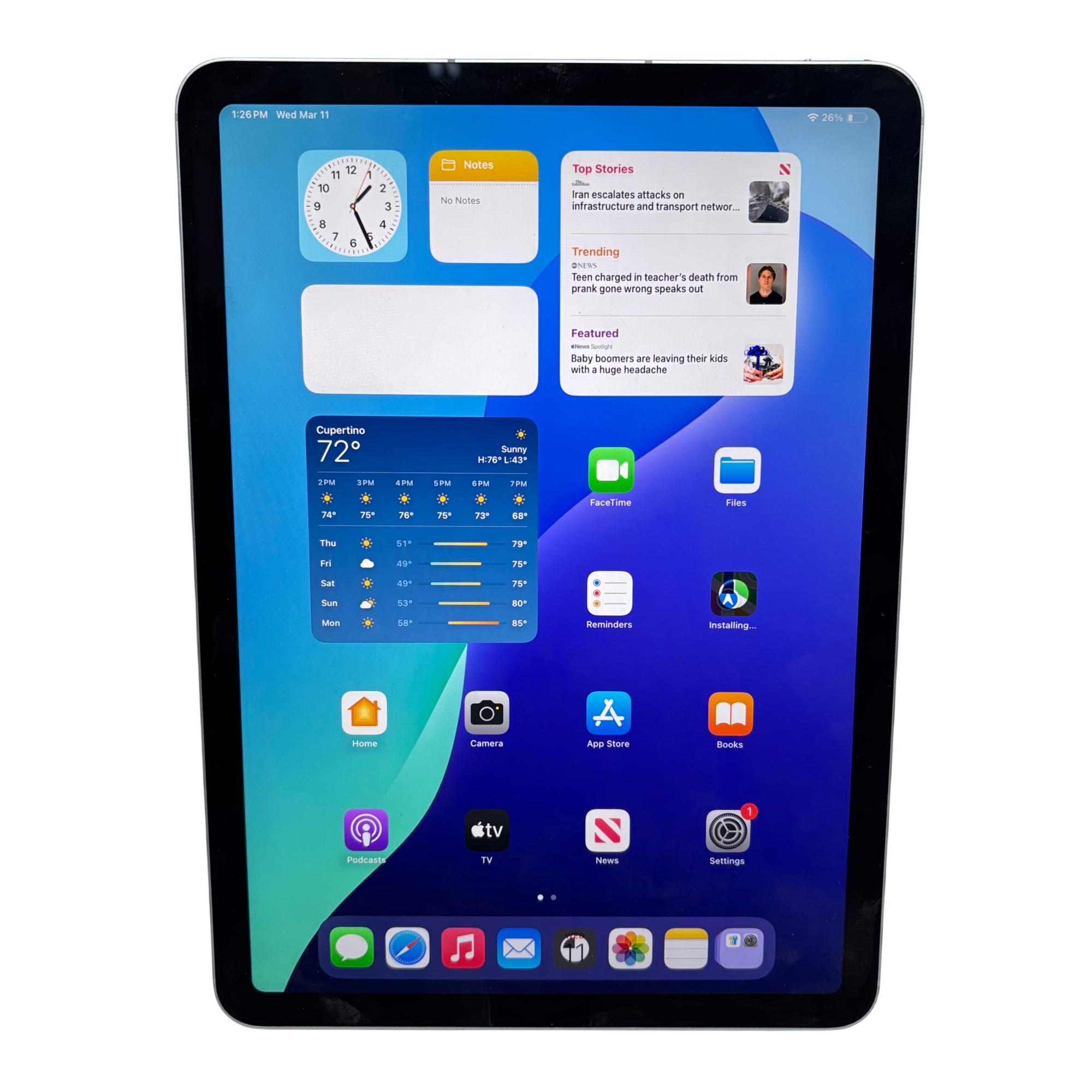 Apple iPad Air 11-inch (likely 5th Gen, Wi-Fi, 128GB, Silver, Model A2903) offers a sleek and powerful tablet experience with a vibrant blue screen and a slim silver body. This model features a high-resolution display ideal for multimedia, productivity, and communication, complemented by a responsive touch interface and advanced camera system. Its lightweight design and strong performance make it suitable for both casual and professional use.