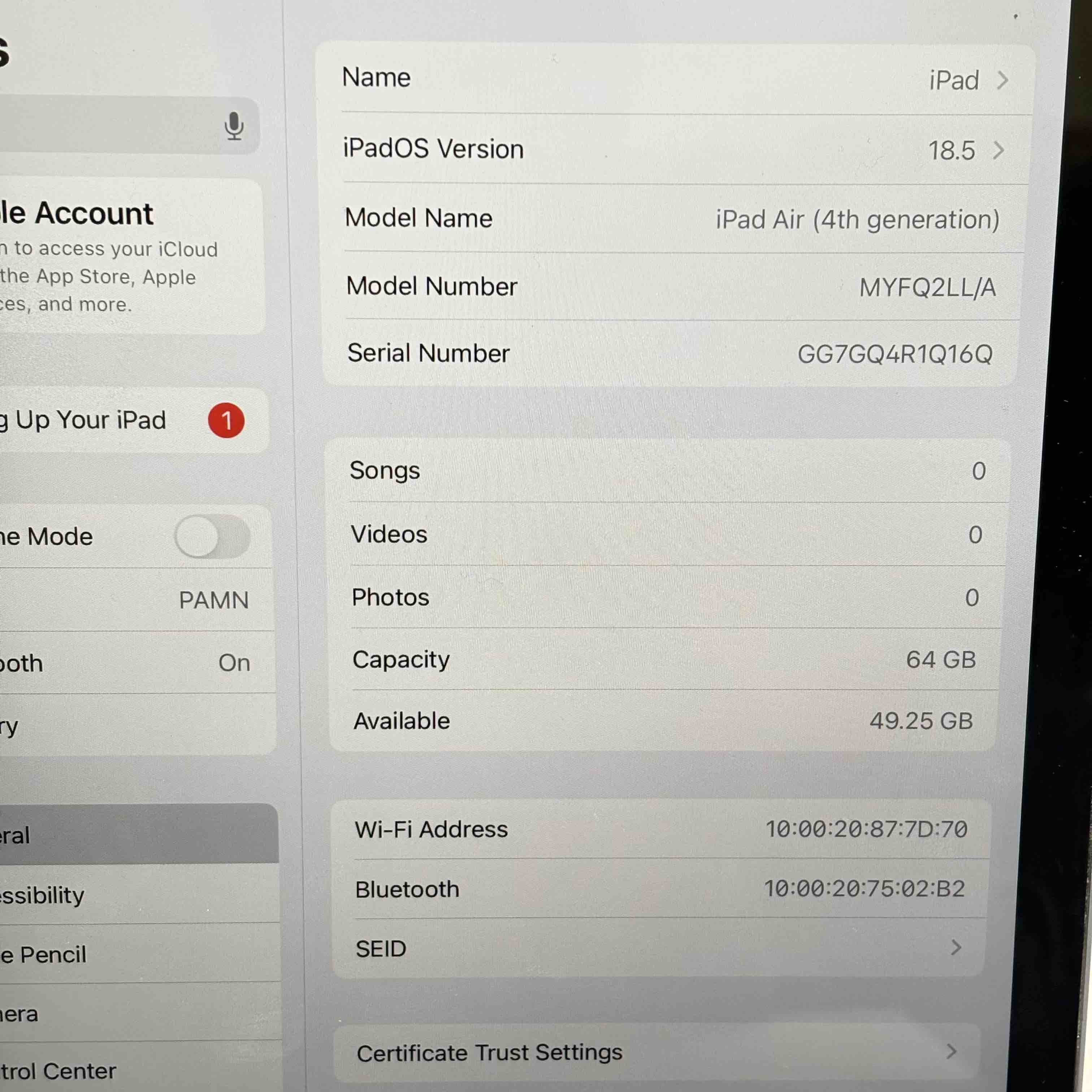 Model: iPad Air MYFQ2LL/A