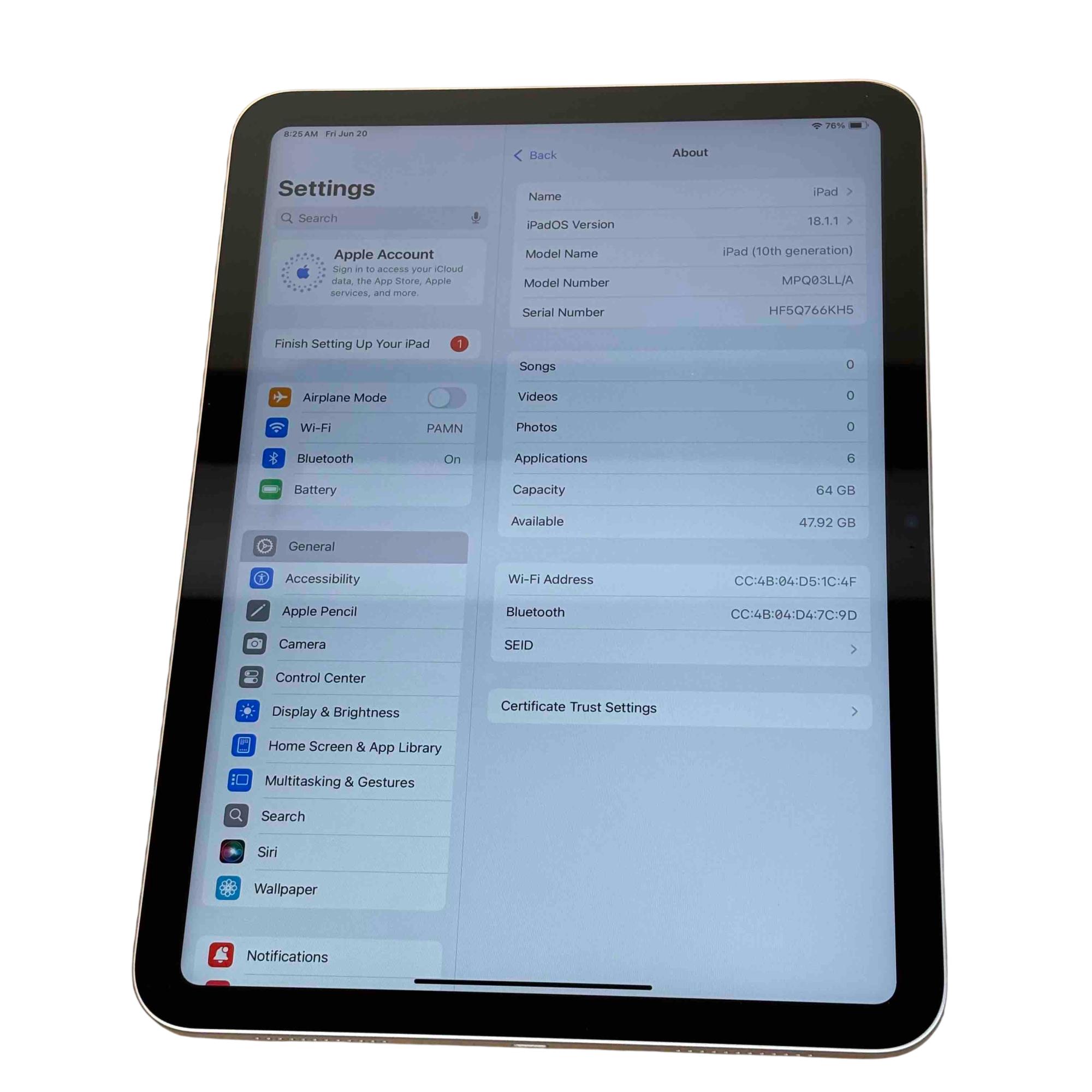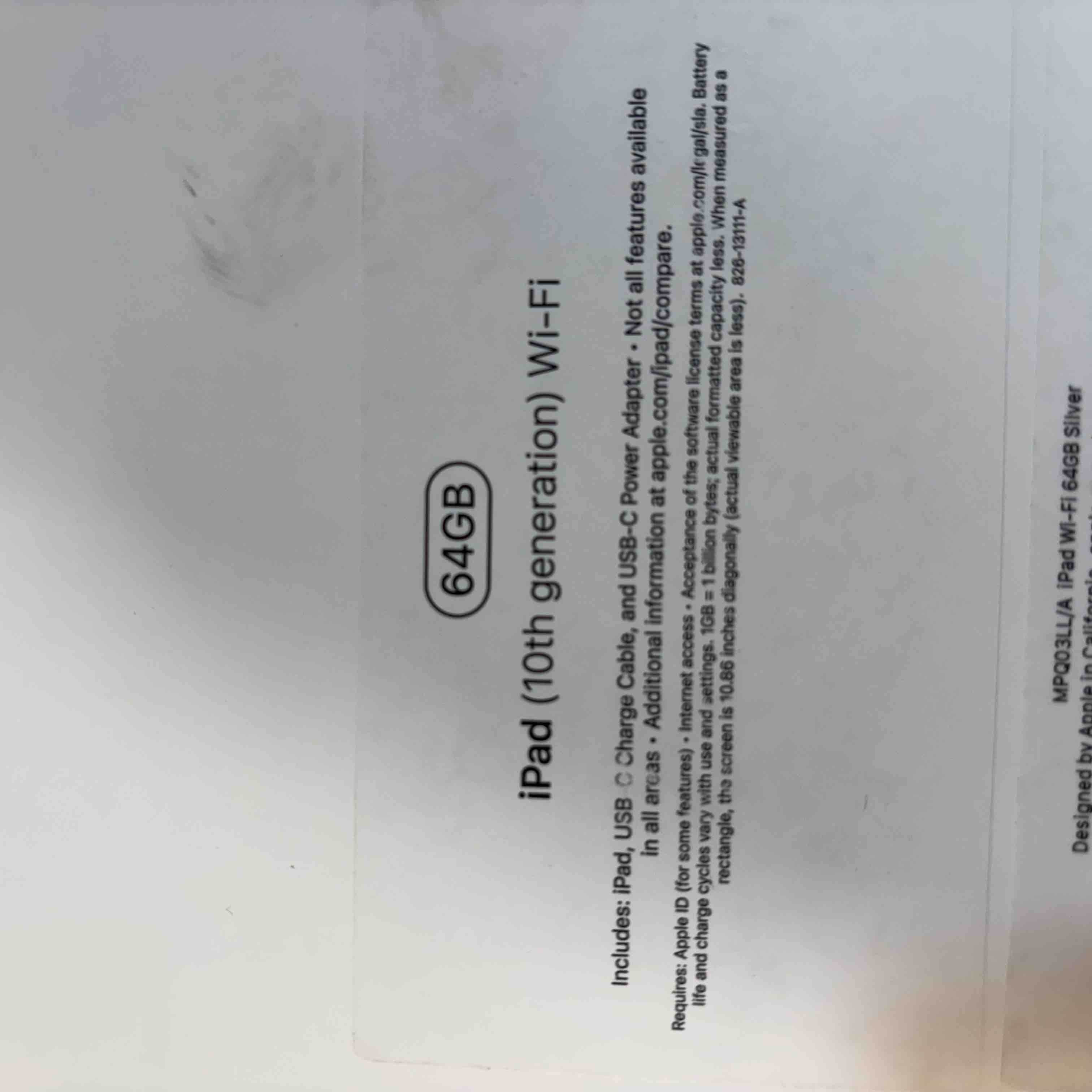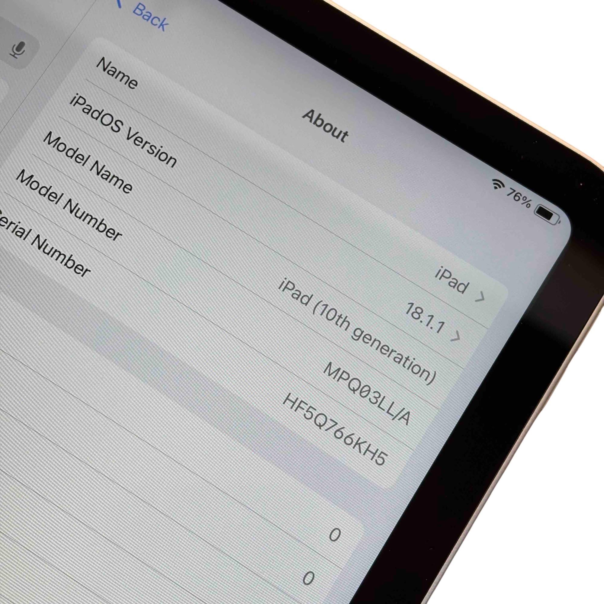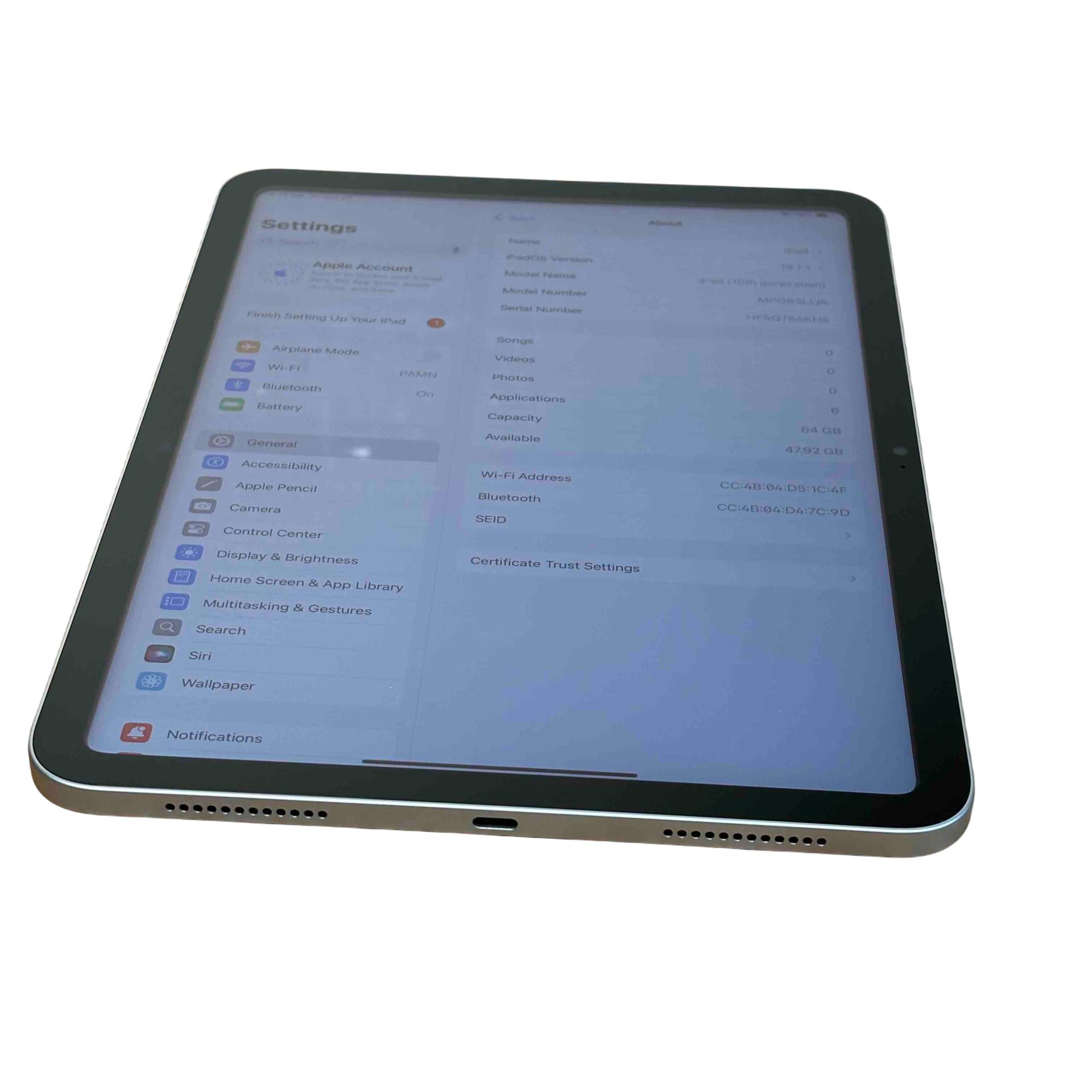 Model: iPad Gen 10 MPQ03LL/A A2696