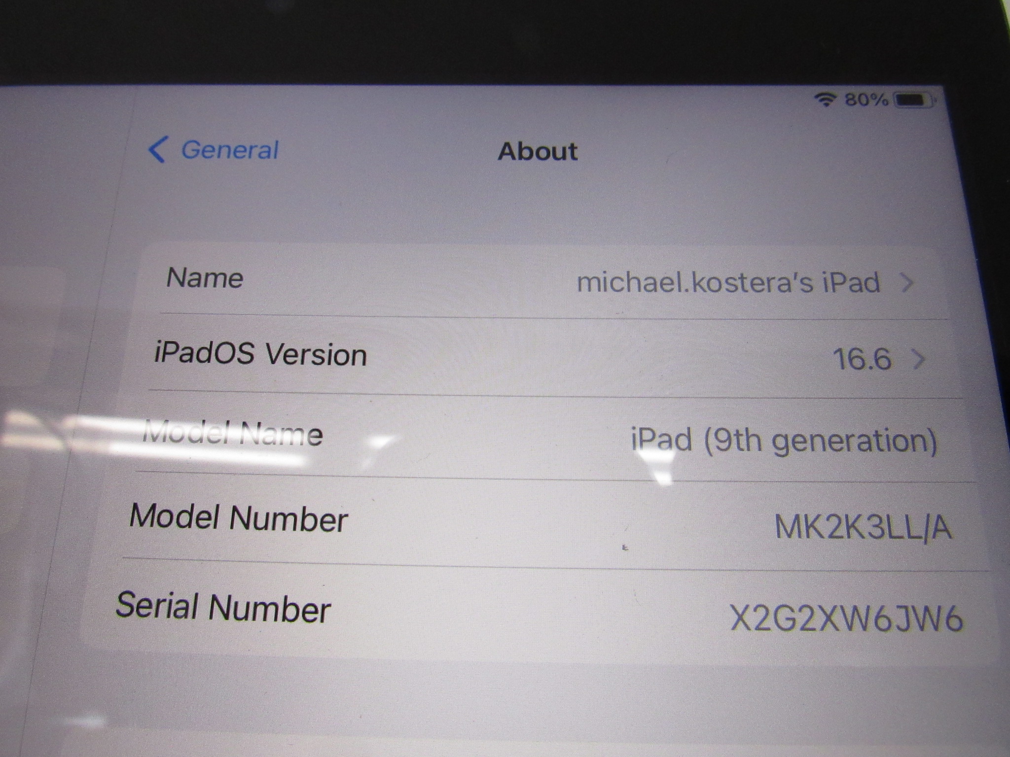 Model: iPad MK2K3LL/A A2602