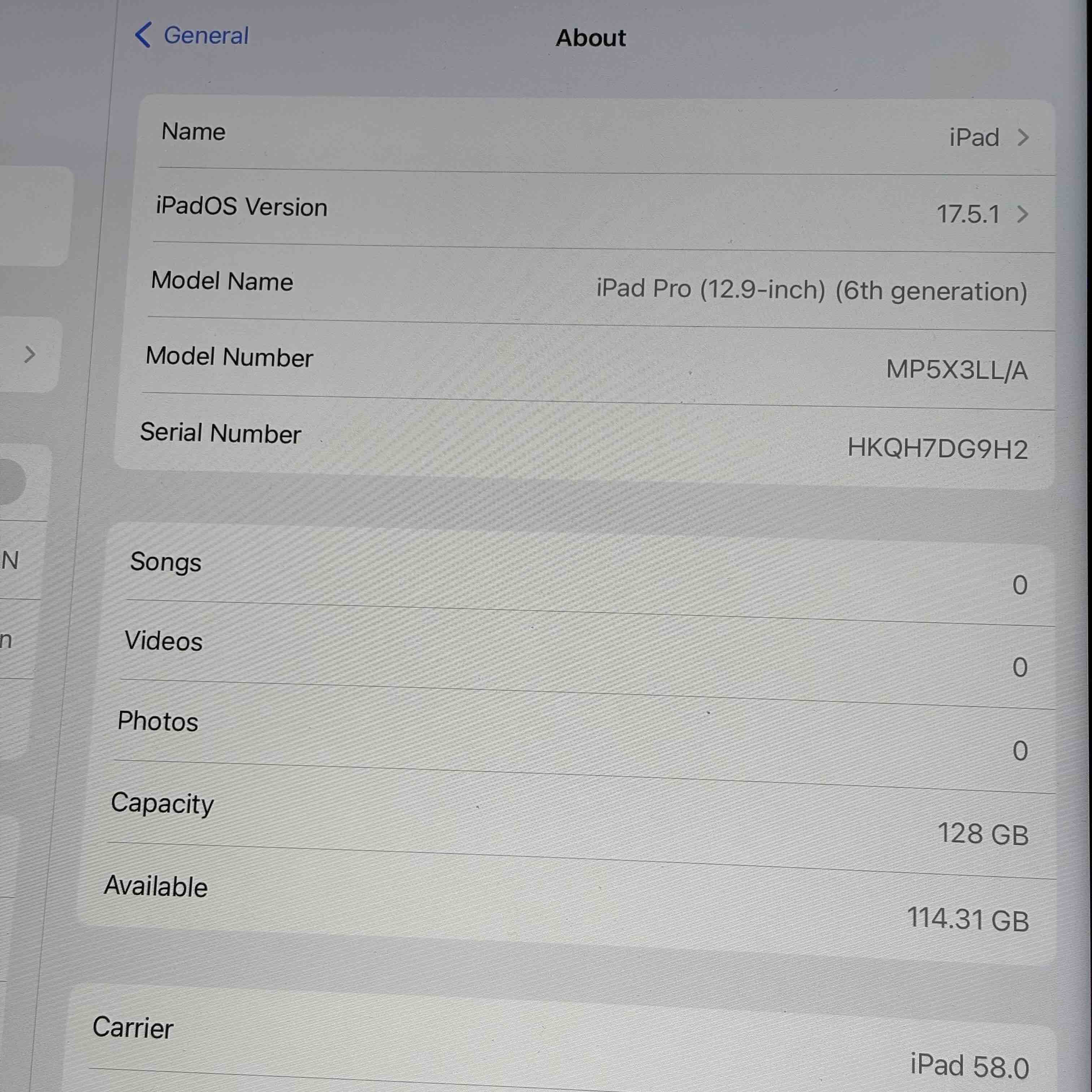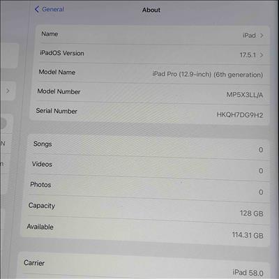 Model: iPad Pro 12.9" Gen 6 MP5X3LL/A A2764