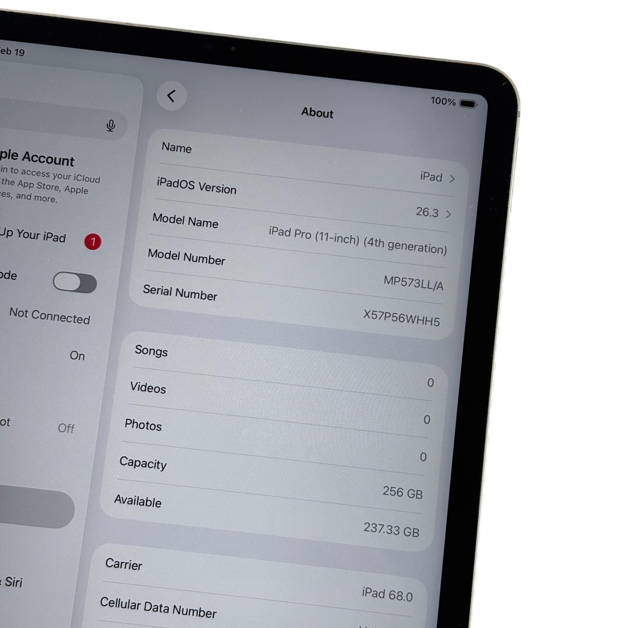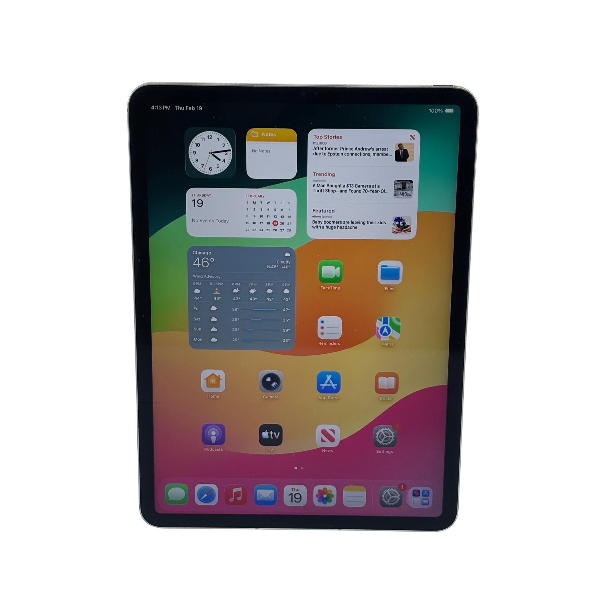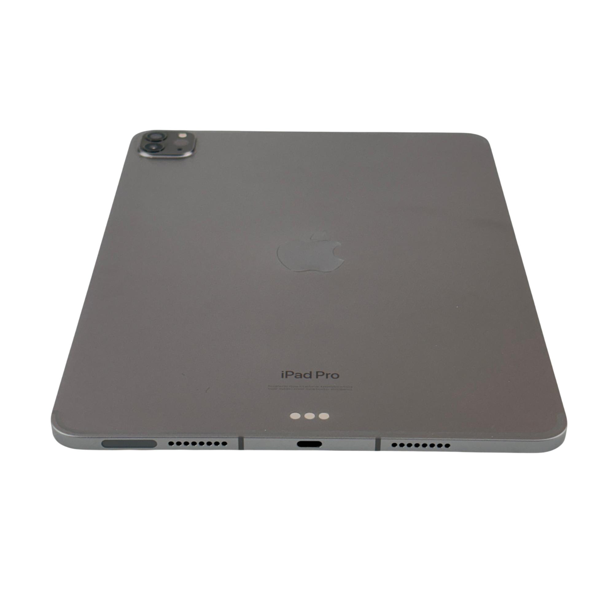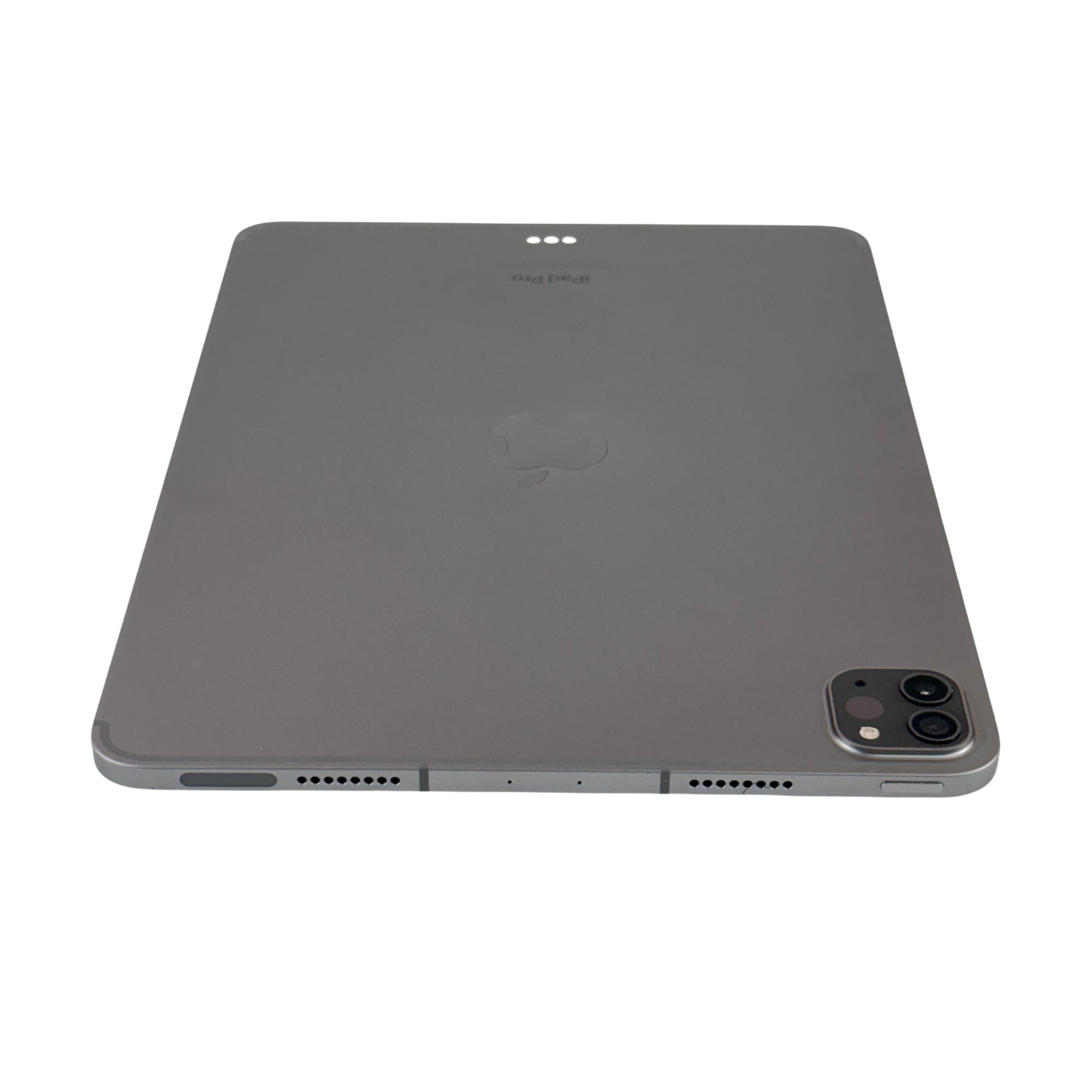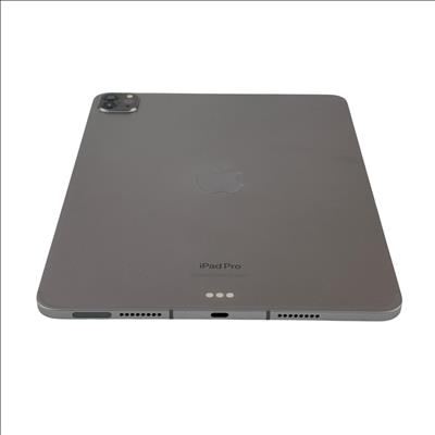 Apple iPad Pro 4th Gen MP573LL/A 11" tablet in Space Grey features a brilliant Liquid Retina display with ProMotion, True Tone, and P3 wide color. Powered by the M2 chip with 8-core CPU and 10-core GPU, it includes a 12MP Wide and 10MP Ultra Wide rear camera with LiDAR Scanner, and a 12MP Ultra Wide front camera with Center Stage. It offers superfast Wi-Fi 6E, 5G cellular, a USB-C port with Thunderbolt/USB 4 support, and Face ID for secure authentication.