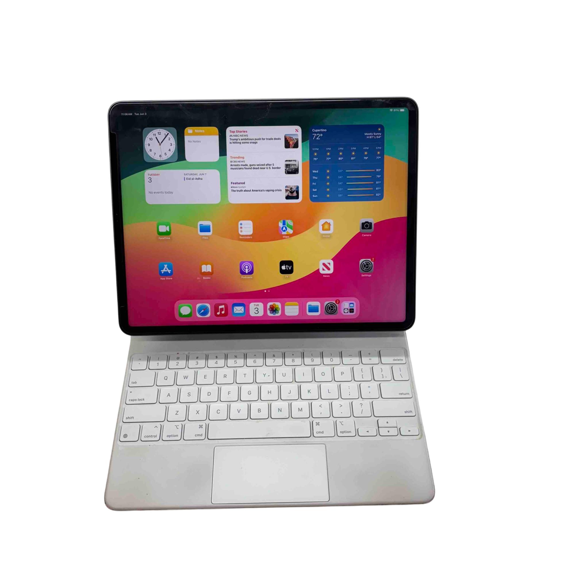 Experience true versatility and unmatched performance with the Apple iPad Pro 12.9-inch (2021) paired with the official white Magic Keyboard. Powered by the revolutionary M1 chip and featuring a breathtaking Liquid Retina XDR display, this iPad offers unrivaled speed and color accuracy, while the Magic Keyboard delivers laptop-like productivity with its full-size keys and built-in trackpad. Perfect for professionals and creatives alike, this lightly used combo is ready to elevate your workflow and entertainment.