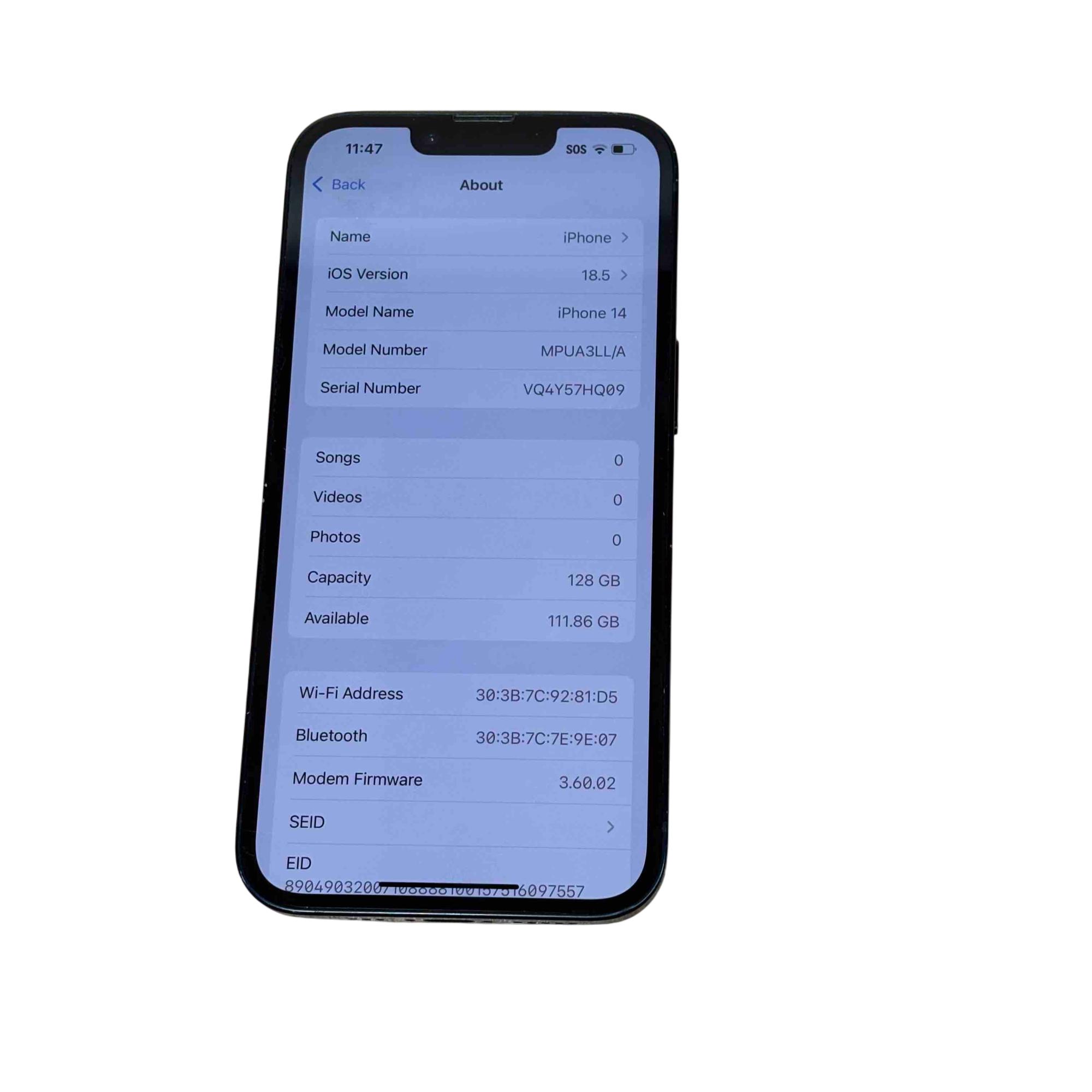 Model: iPhone 14 MPUA3LL/A