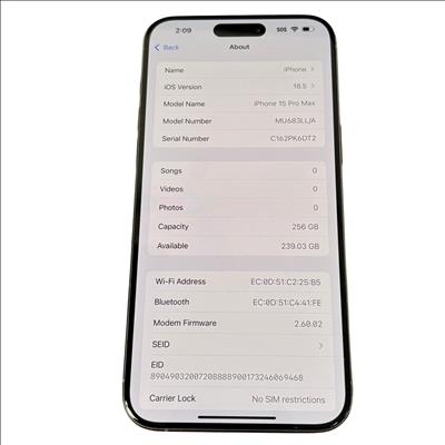 Model: iPhone 15 Pro Max 256GB MU683LL/A