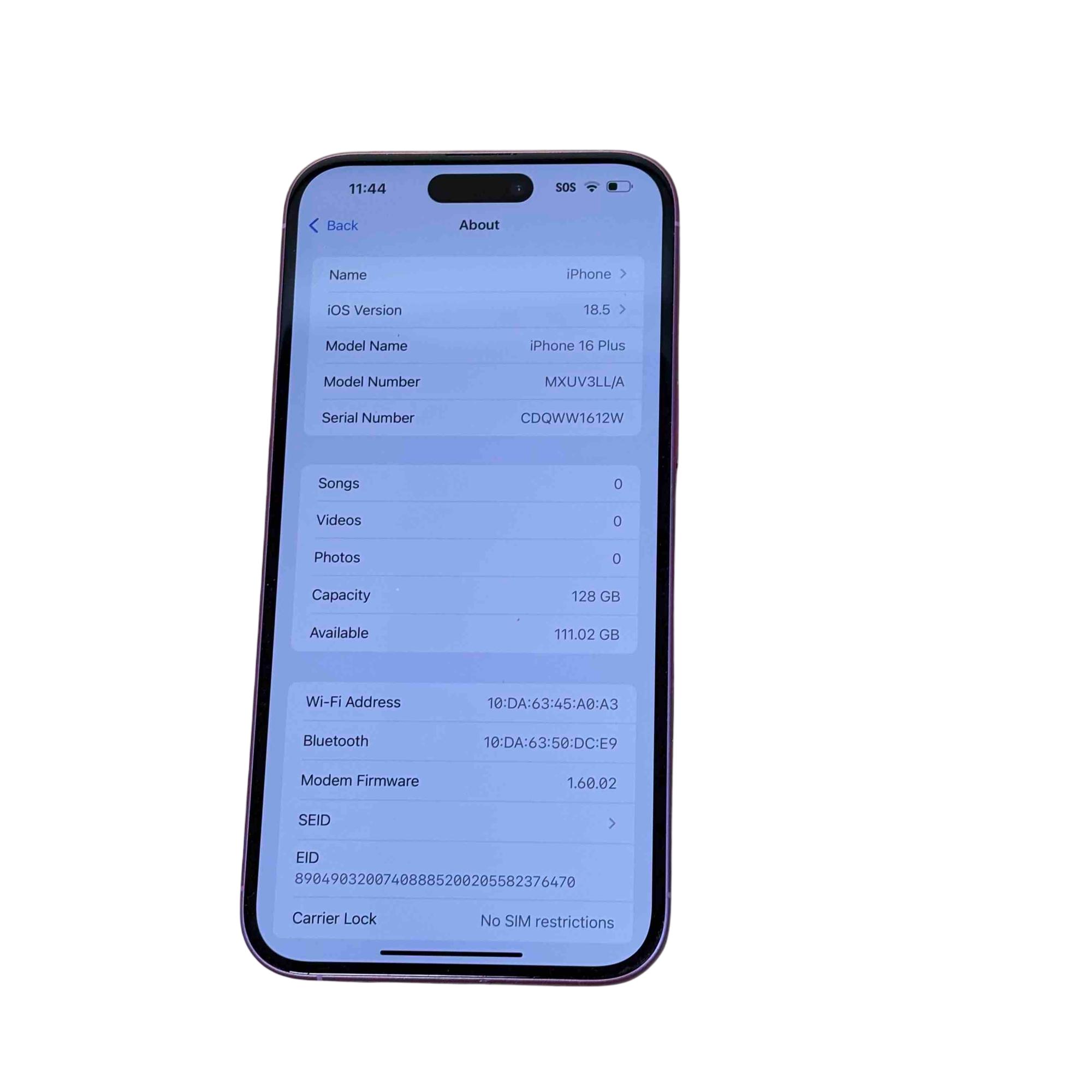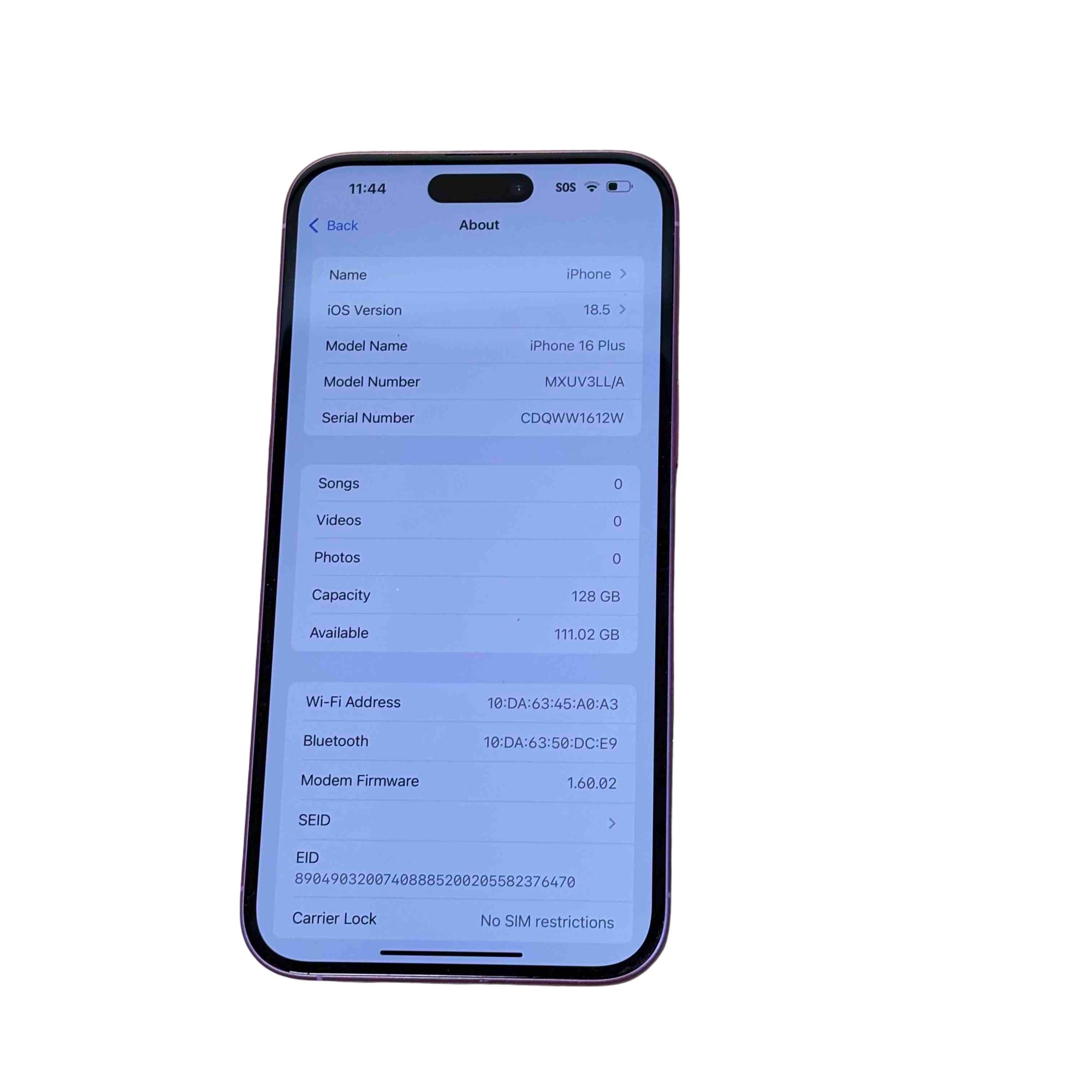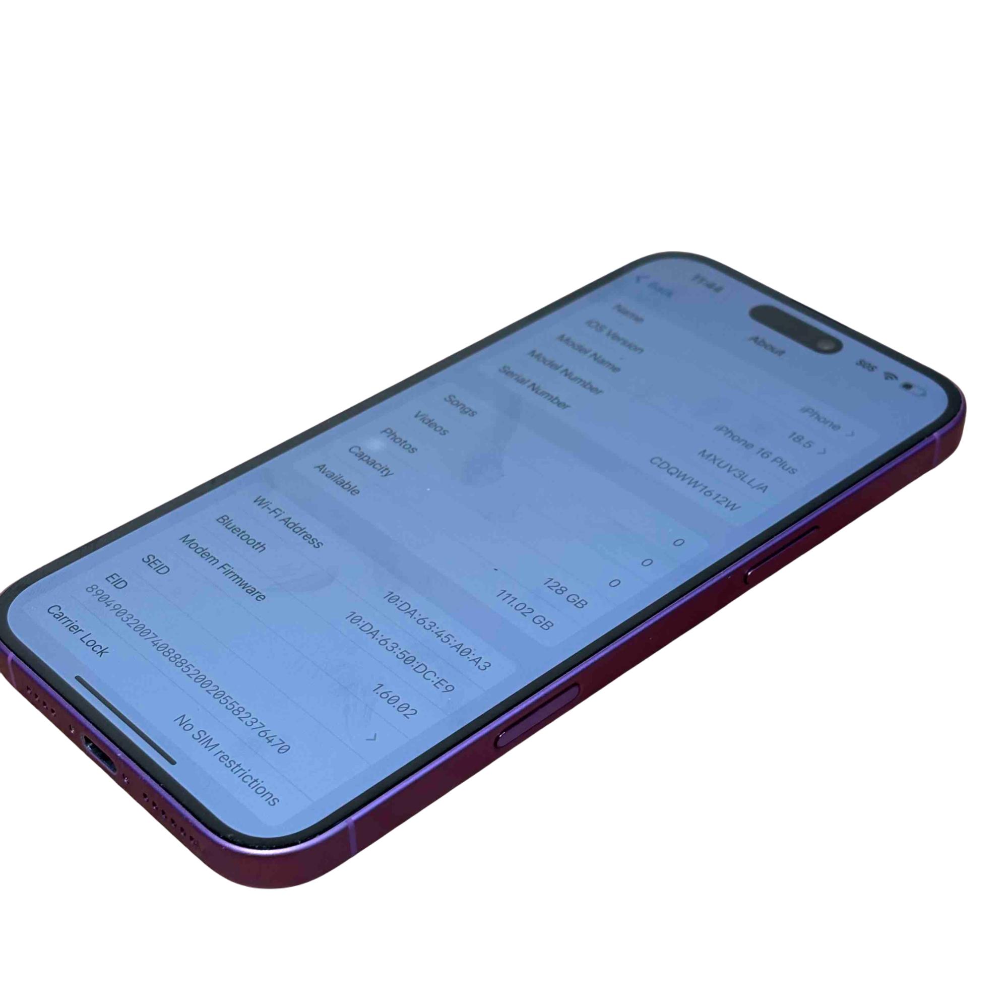 Model: iPhone 16 Plus MXUV3LL/A