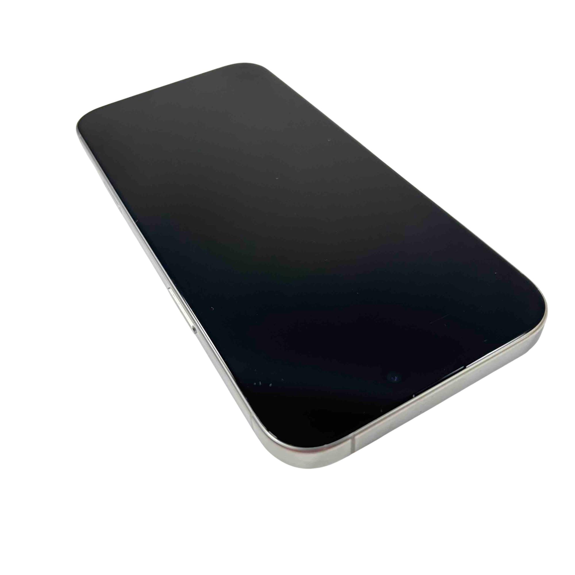 A 6.9-inch smartphone featuring a Super Retina XDR OLED display with 2532 x 1170 resolution, HDR support, and a peak brightness of 1200 nits. It includes a dual-camera system with a 48MP main lens that supports 2x telephoto capability and digital zoom up to 10x, offering a wide range of features such as Night mode, Smart HDR 5, Deep Fusion, and 4K Dolby Vision video recording. The 12MP TrueDepth front camera also supports high-quality photo and video capture with features like Portrait Lighting and Cinematic video stabilization. The device supports Face ID, spatial audio, and a variety of Dolby audio and video formats. It is compatible with 5G cellular networks and supports voice and video calling enhancements including FaceTime with SharePlay and screen sharing.