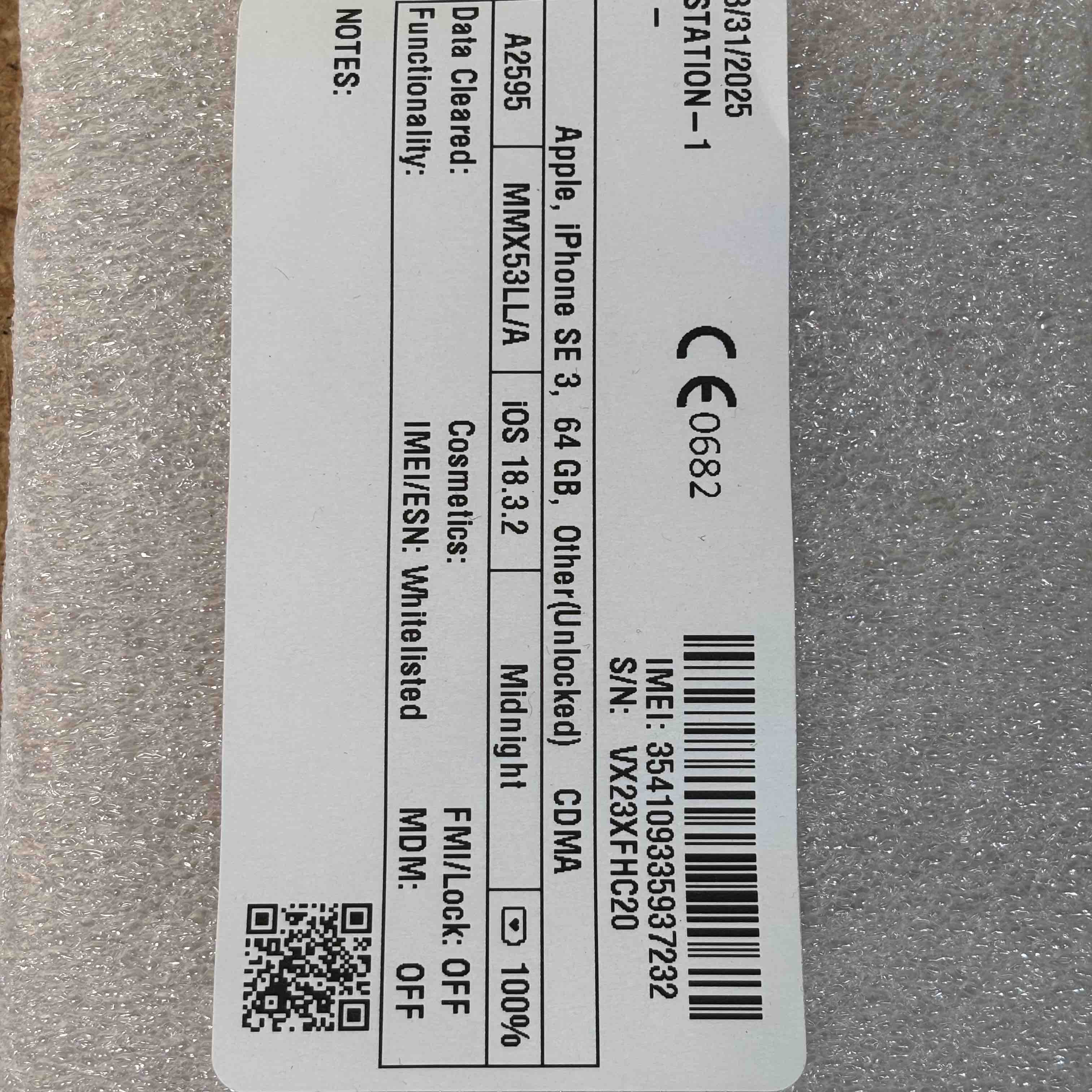 Model: iPhone SE 3rd generation MMX53LL/A