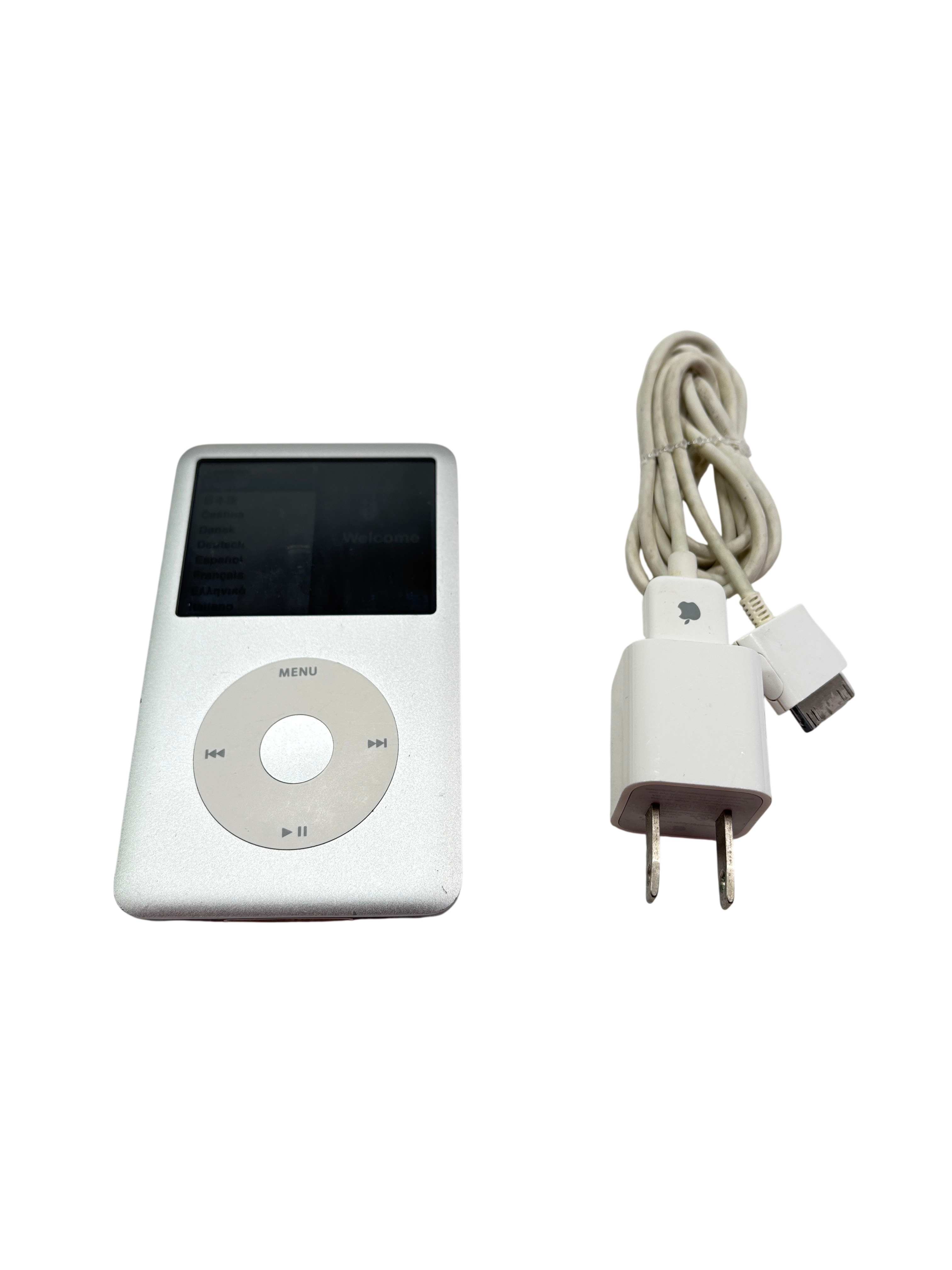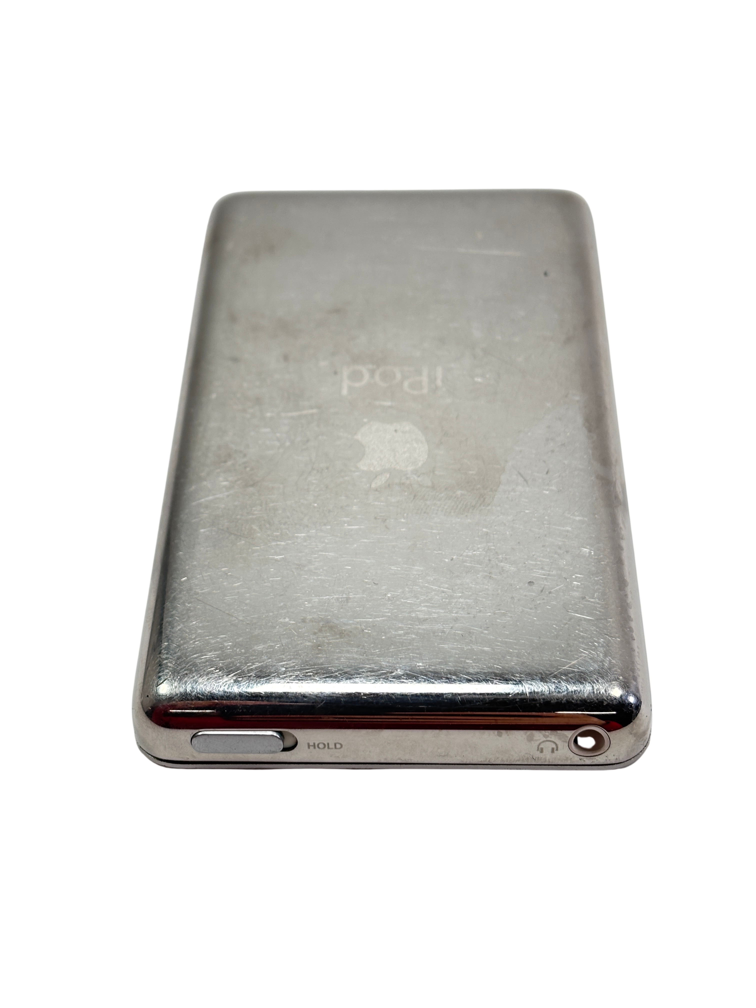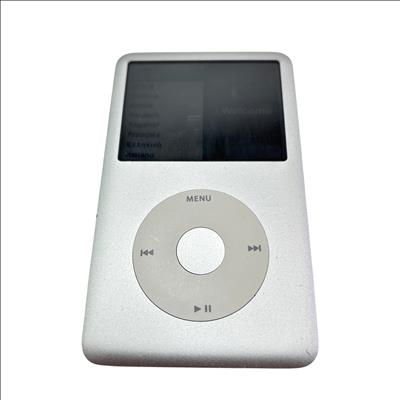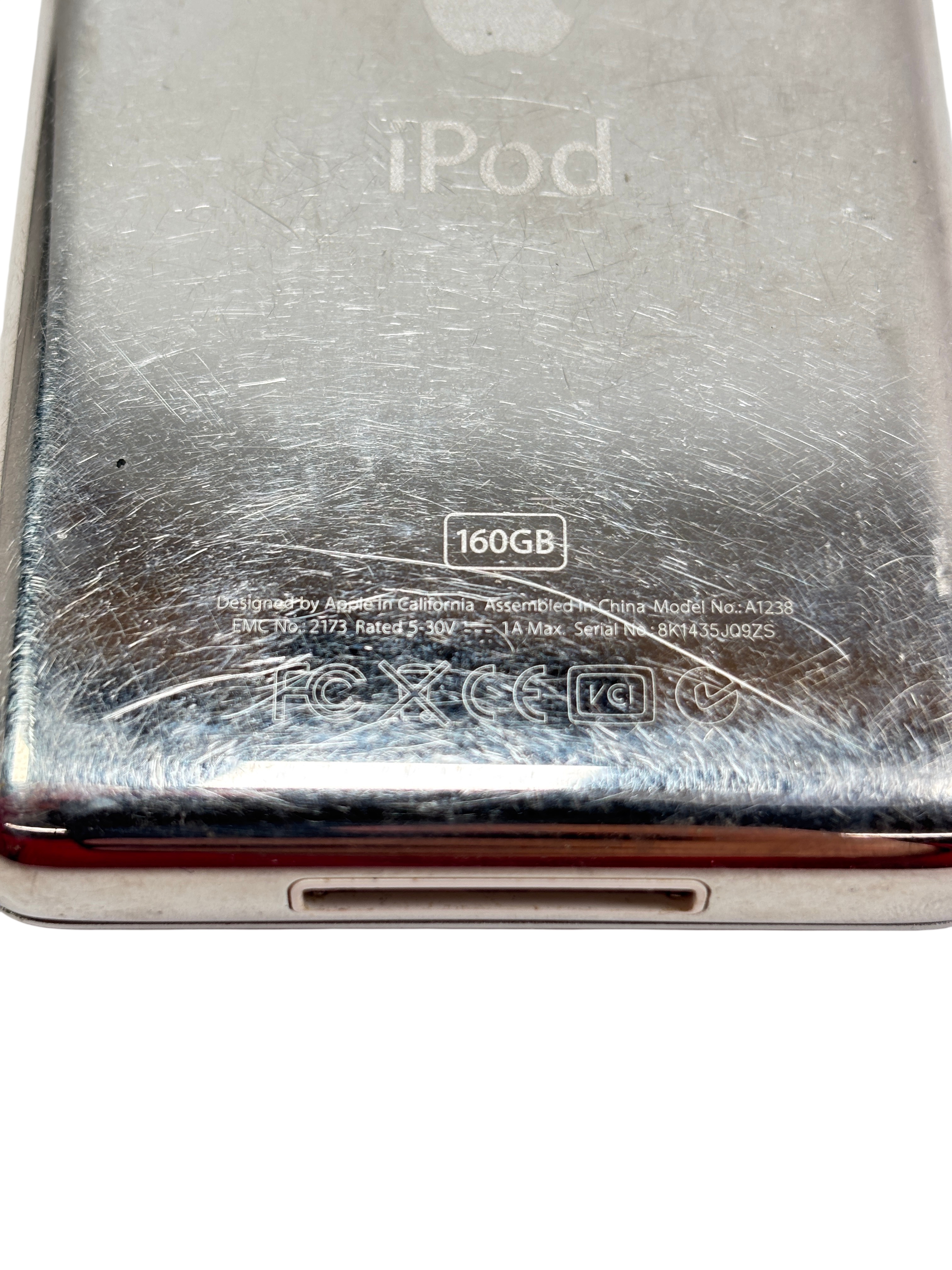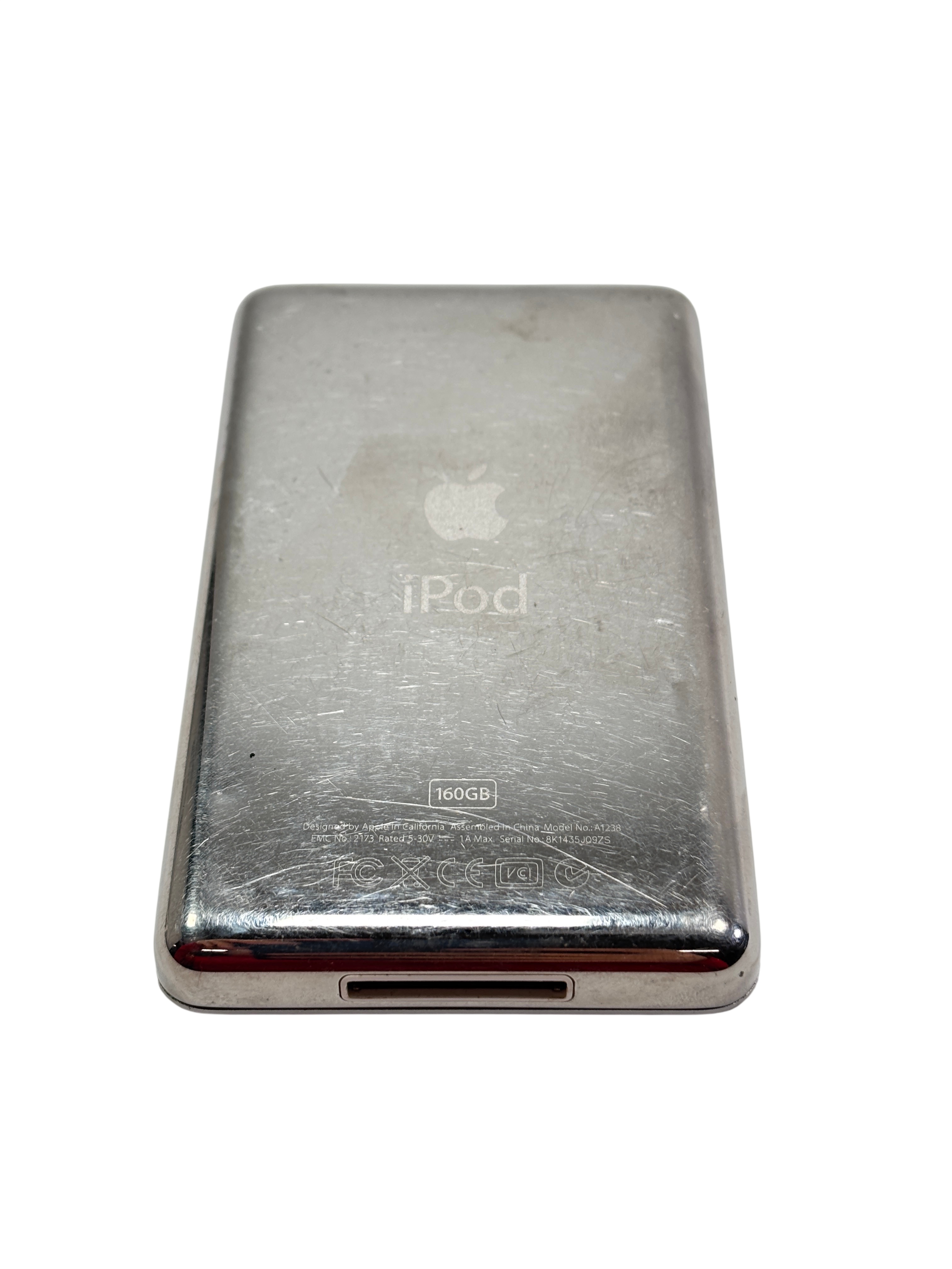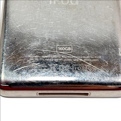 Apple iPod Classic 160GB Model A1238 features a large storage capacity ideal for extensive music libraries and media collections. This silver MP3 player includes the iconic click wheel for easy navigation and comes with a USB charging cable and wall adapter. Its compact dimensions and rechargeable battery make it a convenient device for portable entertainment. Despite some wear on the casing, this iPod Classic remains a reliable choice for music enthusiasts seeking a high-capacity media player.