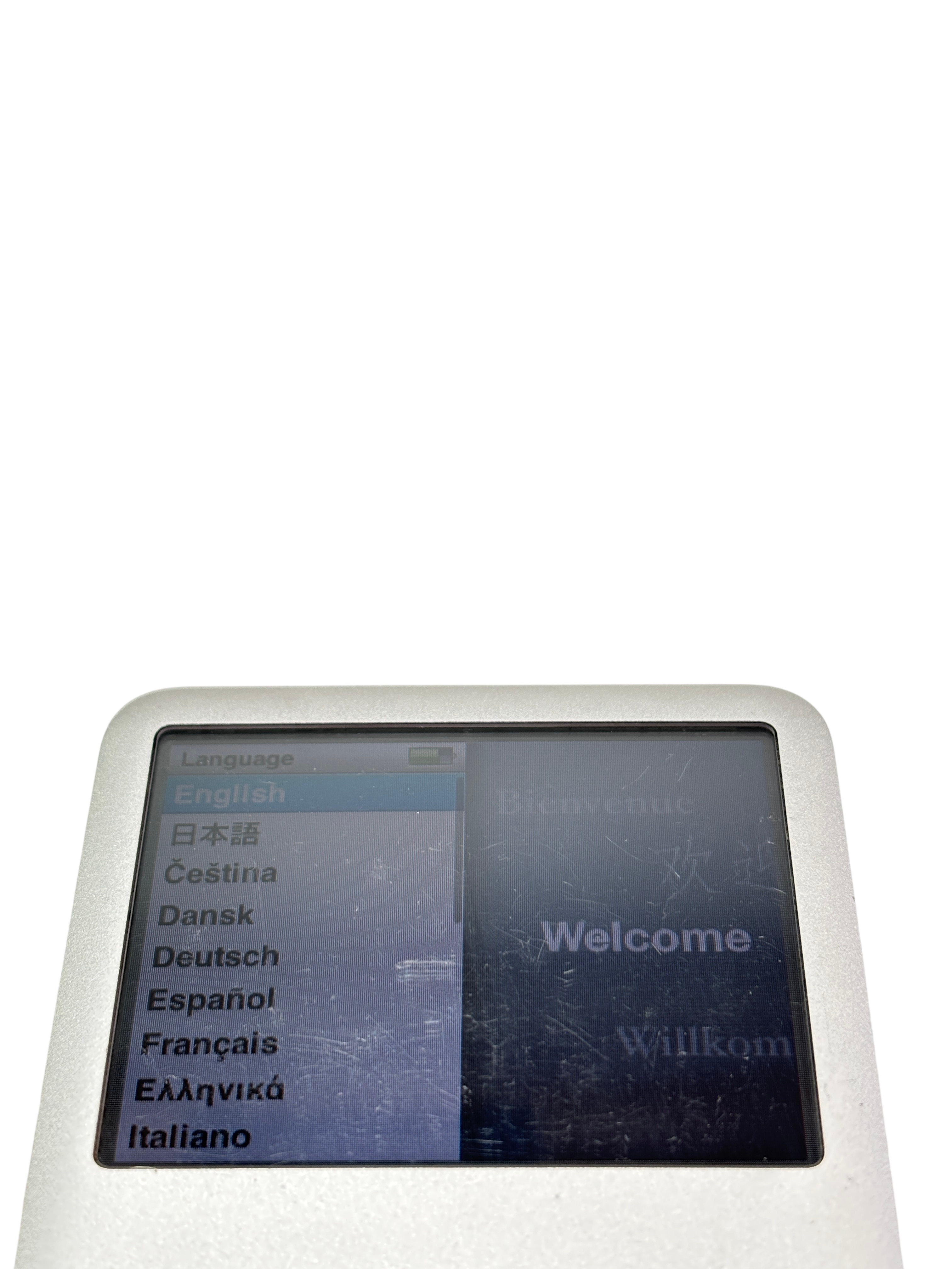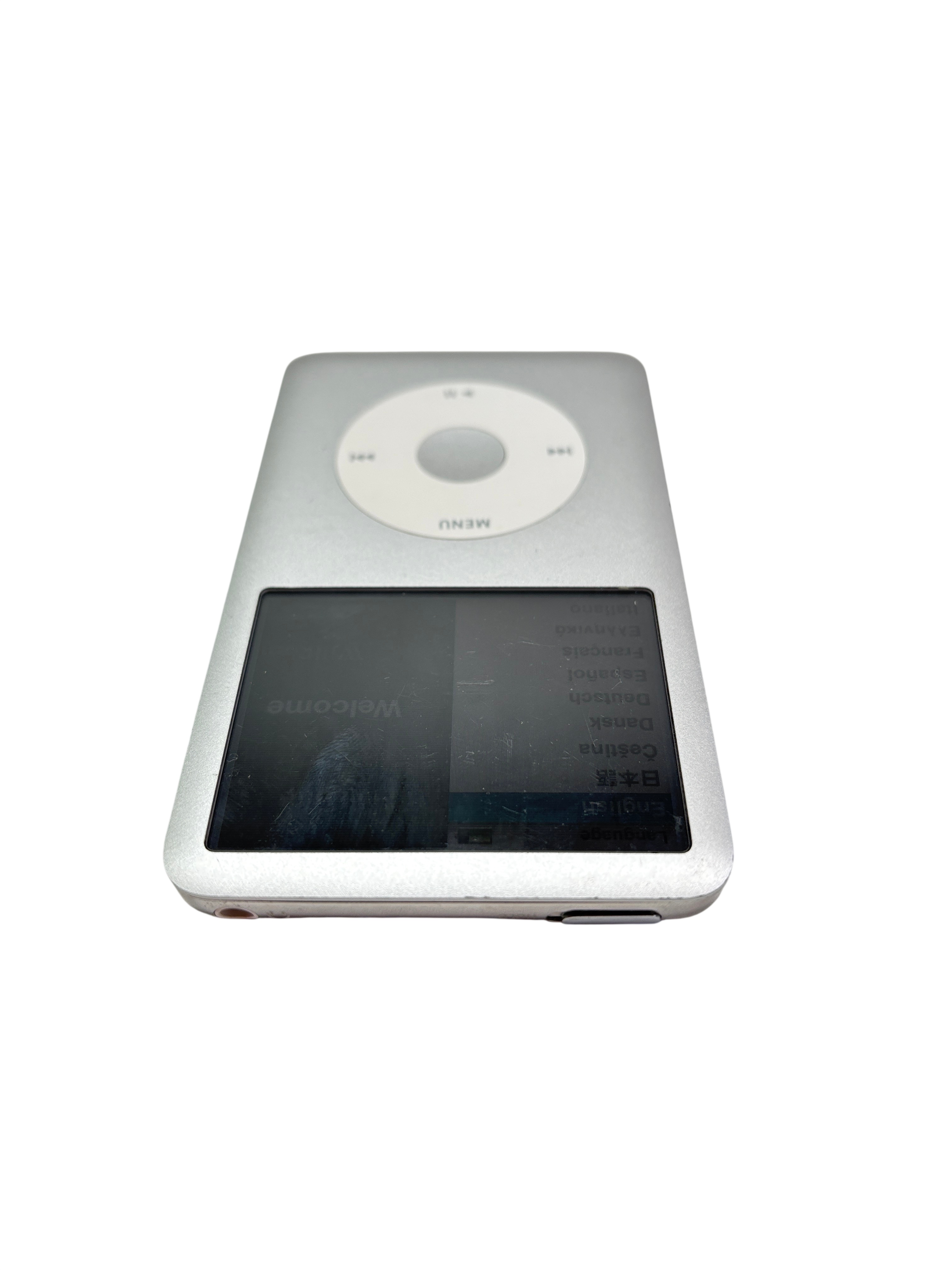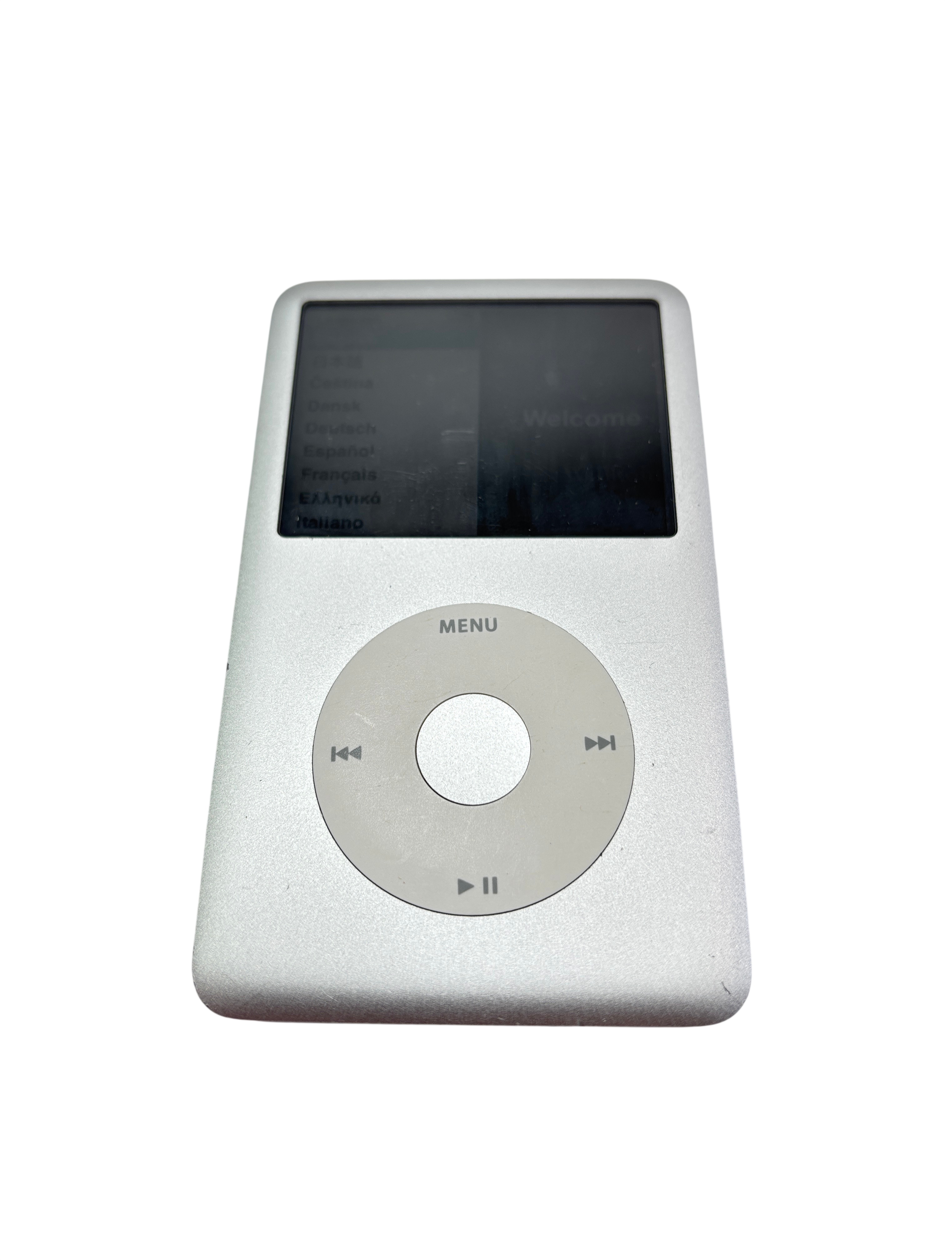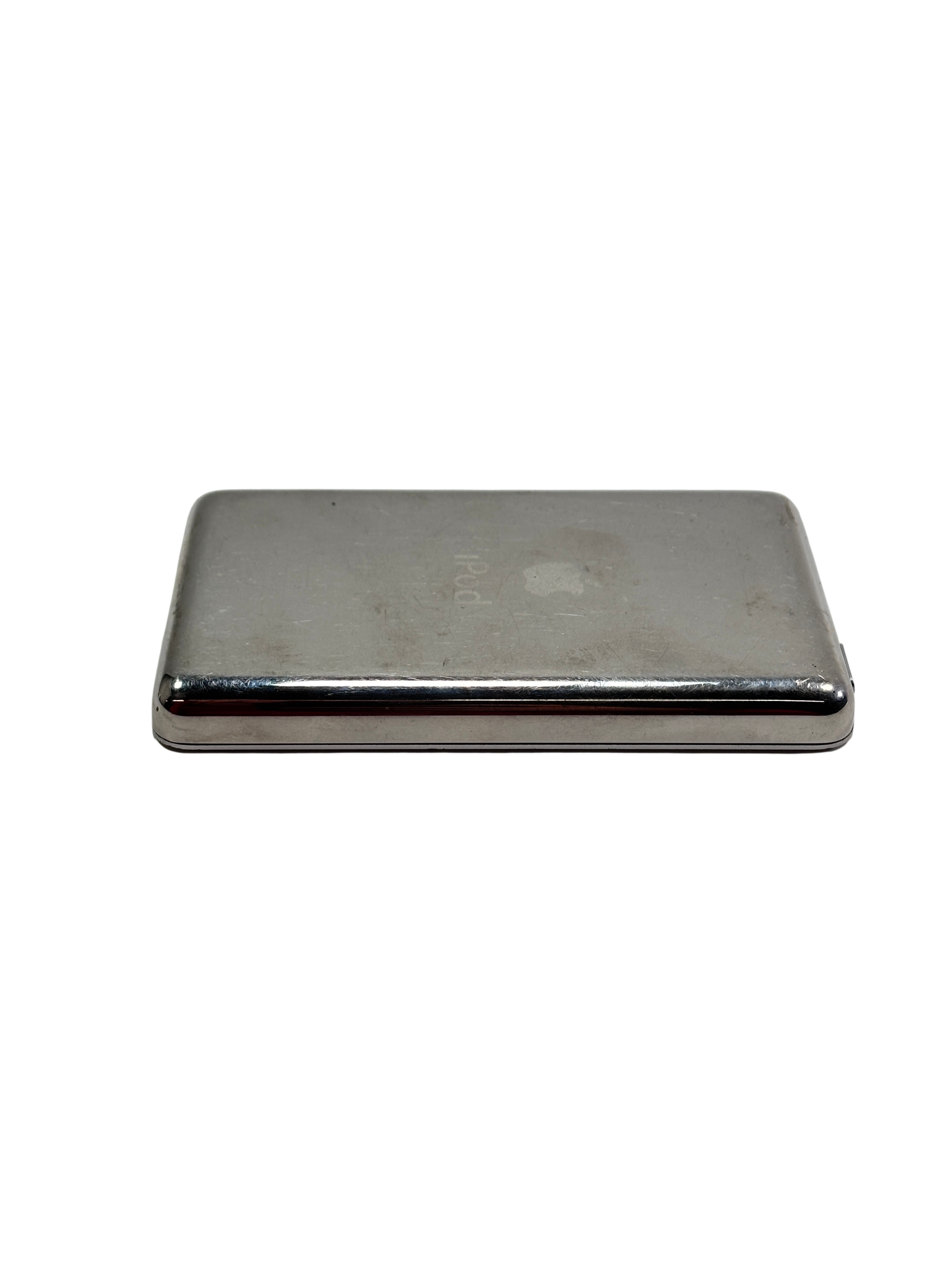 Apple iPod Classic 160GB Model A1238 features a large storage capacity ideal for extensive music libraries and media collections. This silver MP3 player includes the iconic click wheel for easy navigation and comes with a USB charging cable and wall adapter. Its compact dimensions and rechargeable battery make it a convenient device for portable entertainment. Despite some wear on the casing, this iPod Classic remains a reliable choice for music enthusiasts seeking a high-capacity media player.