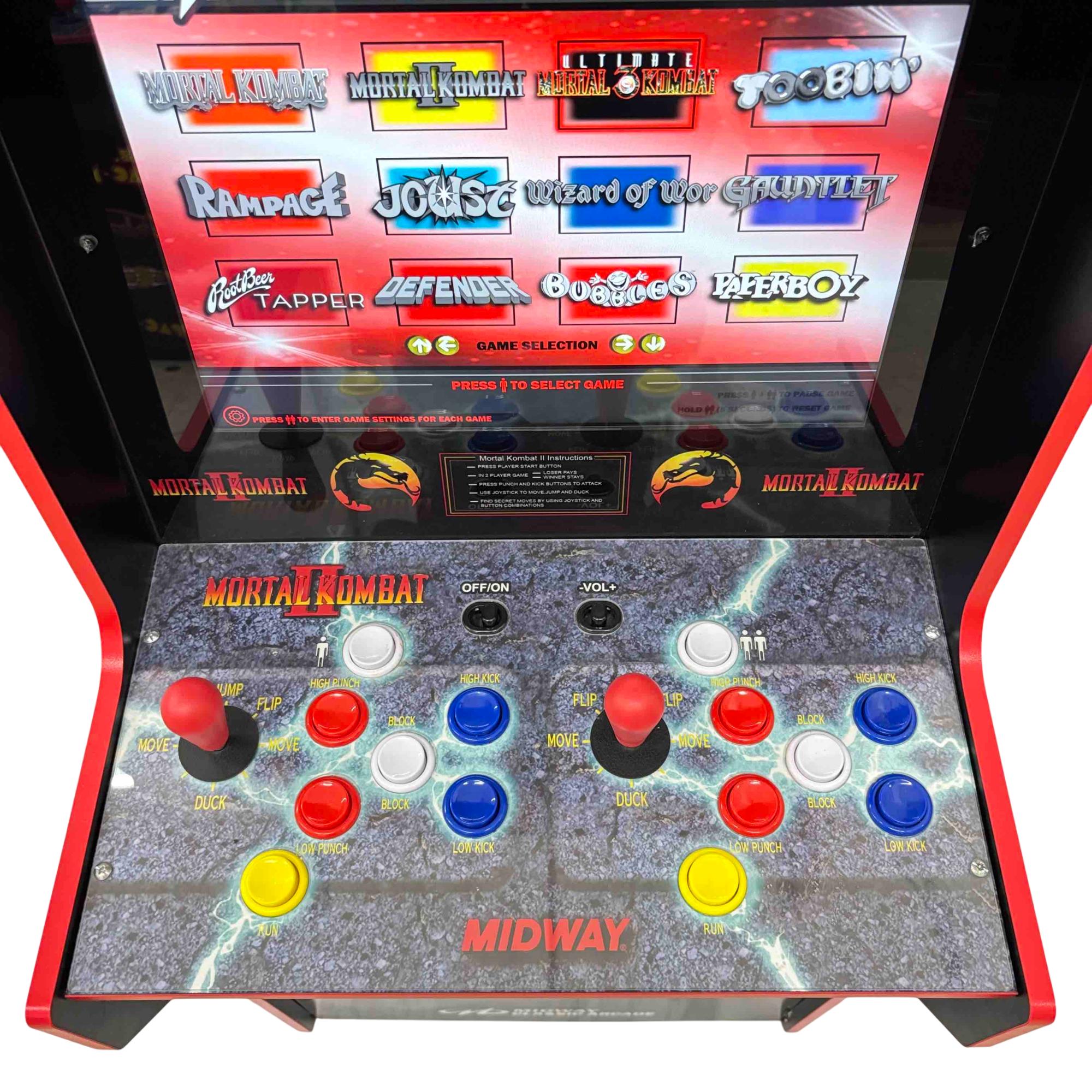 Relive the glory days of arcade gaming with the Arcade1Up Midway Legacy Edition Mortal Kombat II Arcade Cabinet. Featuring 12 classic games, including the iconic Mortal Kombat II, this cabinet is a must-have for any retro gaming enthusiast. With authentic control panels, vibrant artwork, and a compact size perfect for home use, this arcade machine brings timeless entertainment right into your living room.