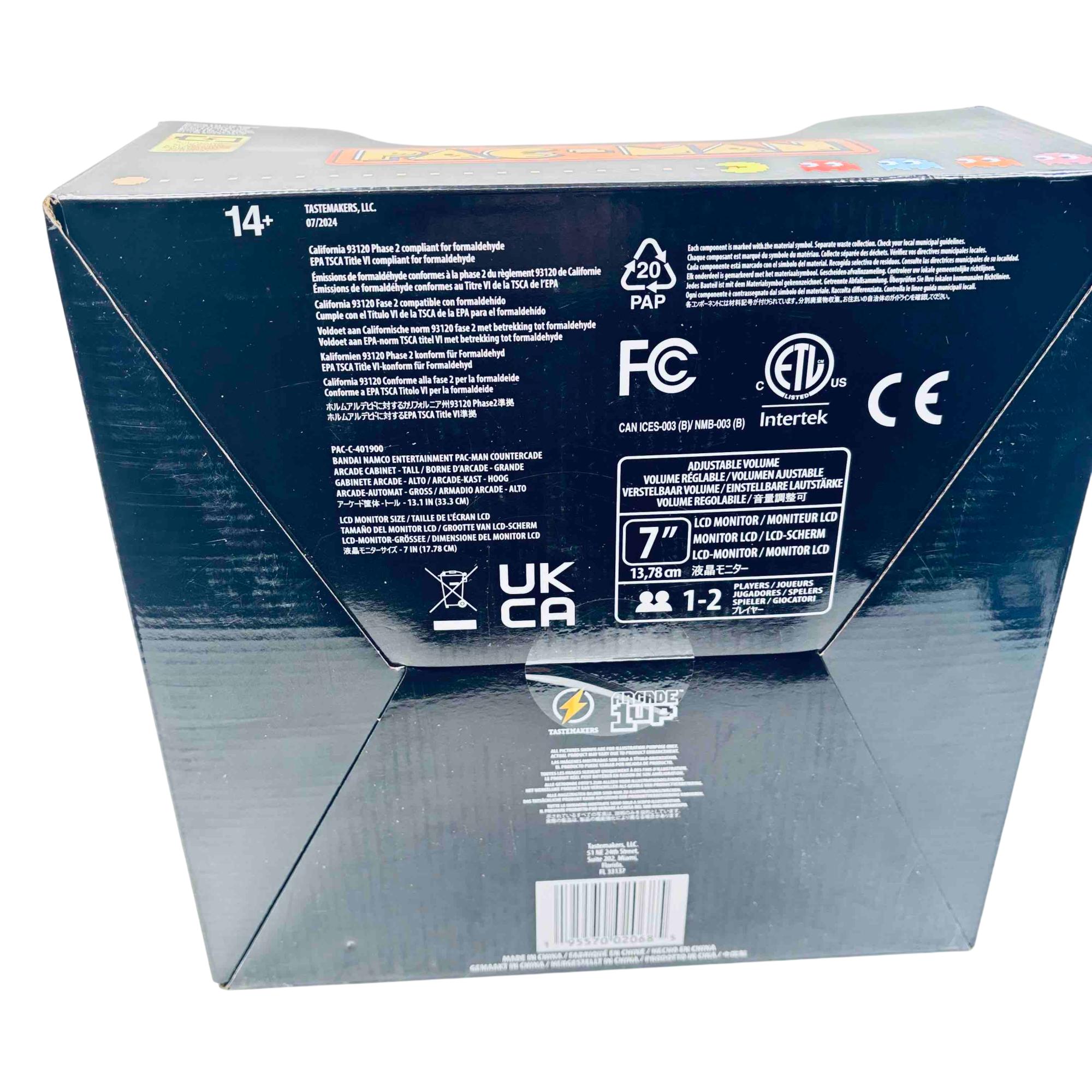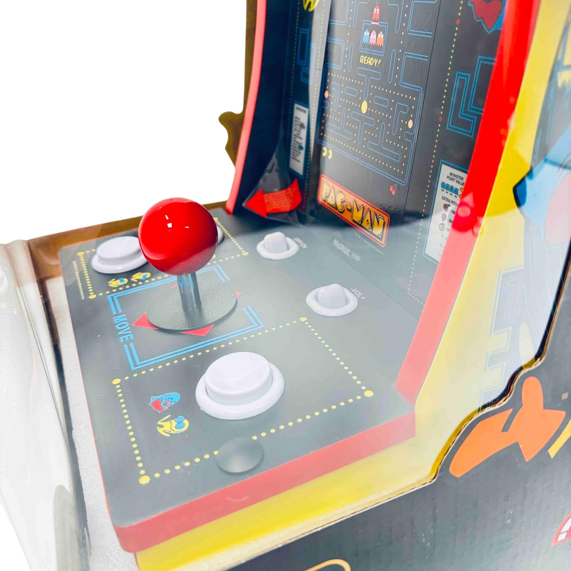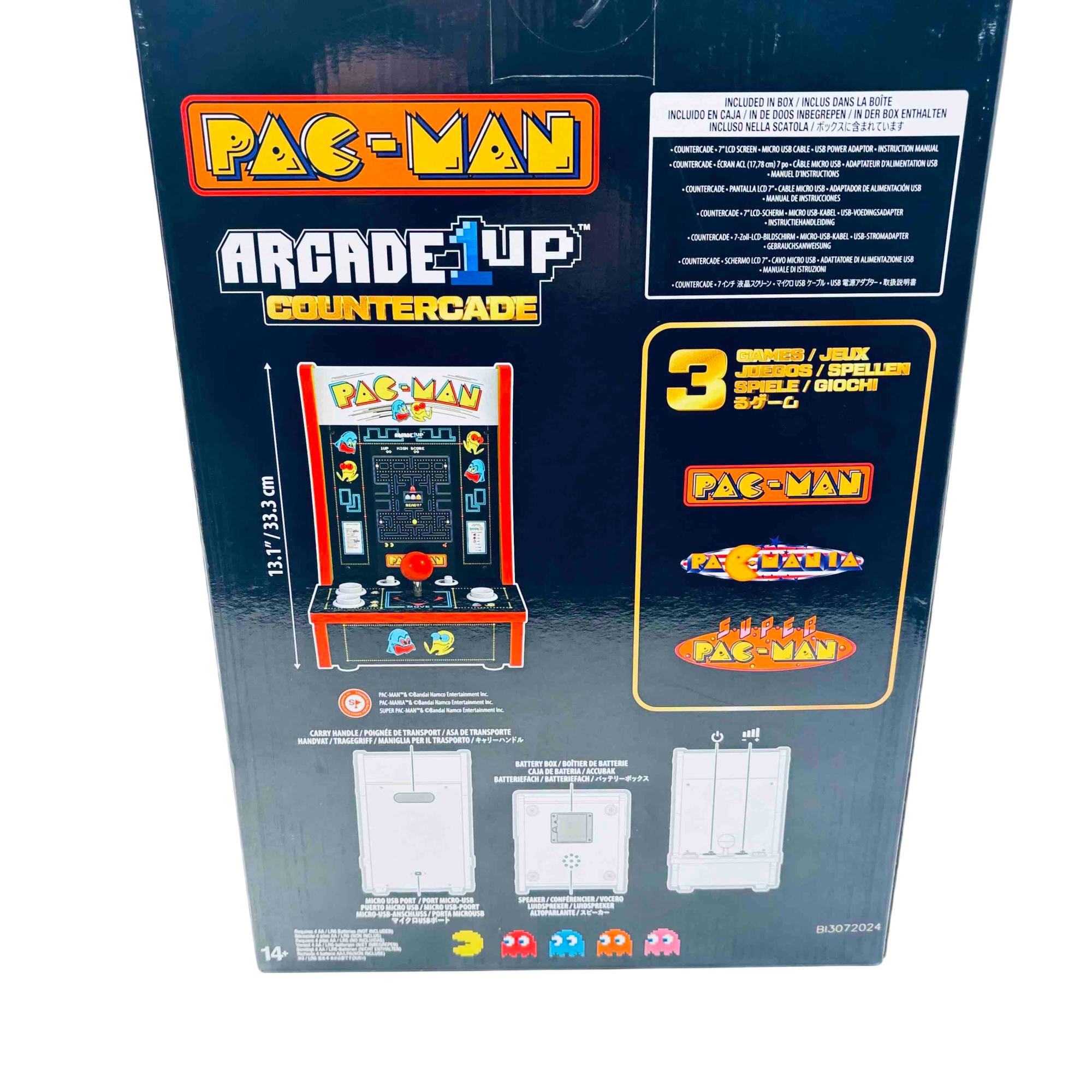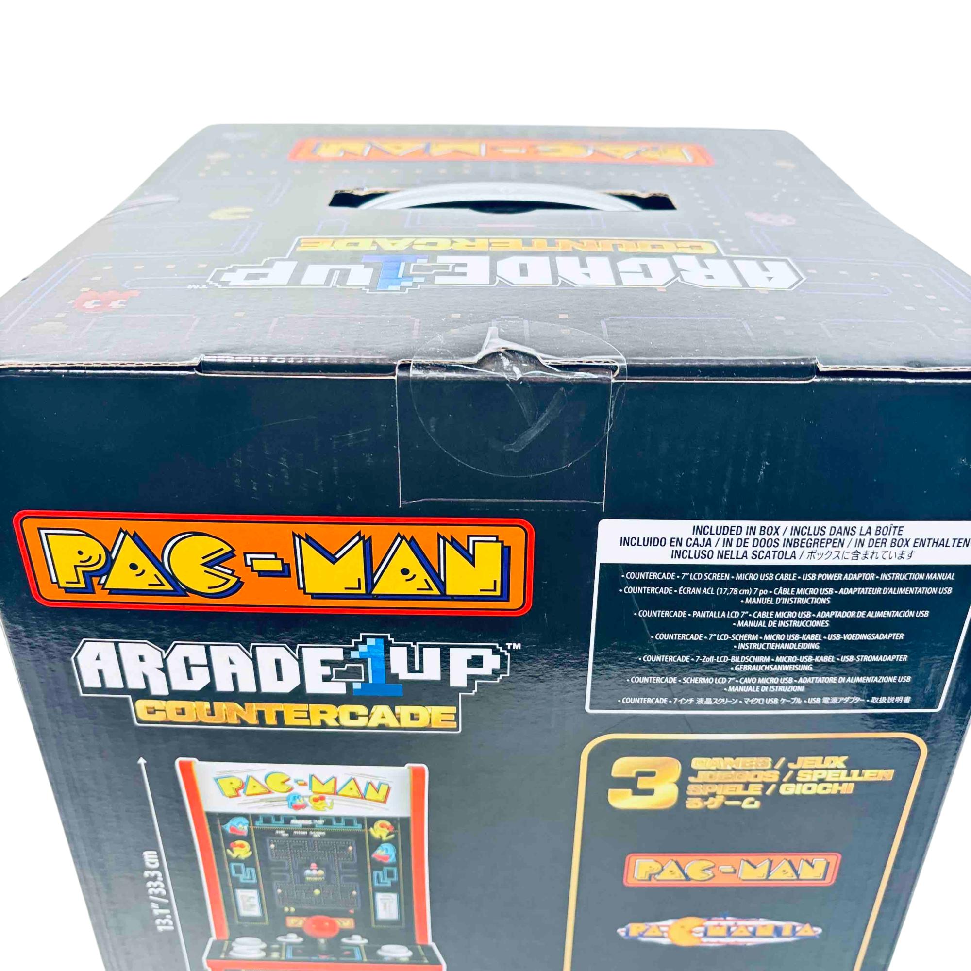 Experience the nostalgia of classic gaming with the Arcade1Up PAC-MAN Countercade. This compact arcade machine brings the iconic PAC-MAN gameplay to any space with its vibrant 7" LCD screen and classic controls. Designed for those who love retro games, its an authentic addition to your game room or home office, offering hours of fun in a stylish package.