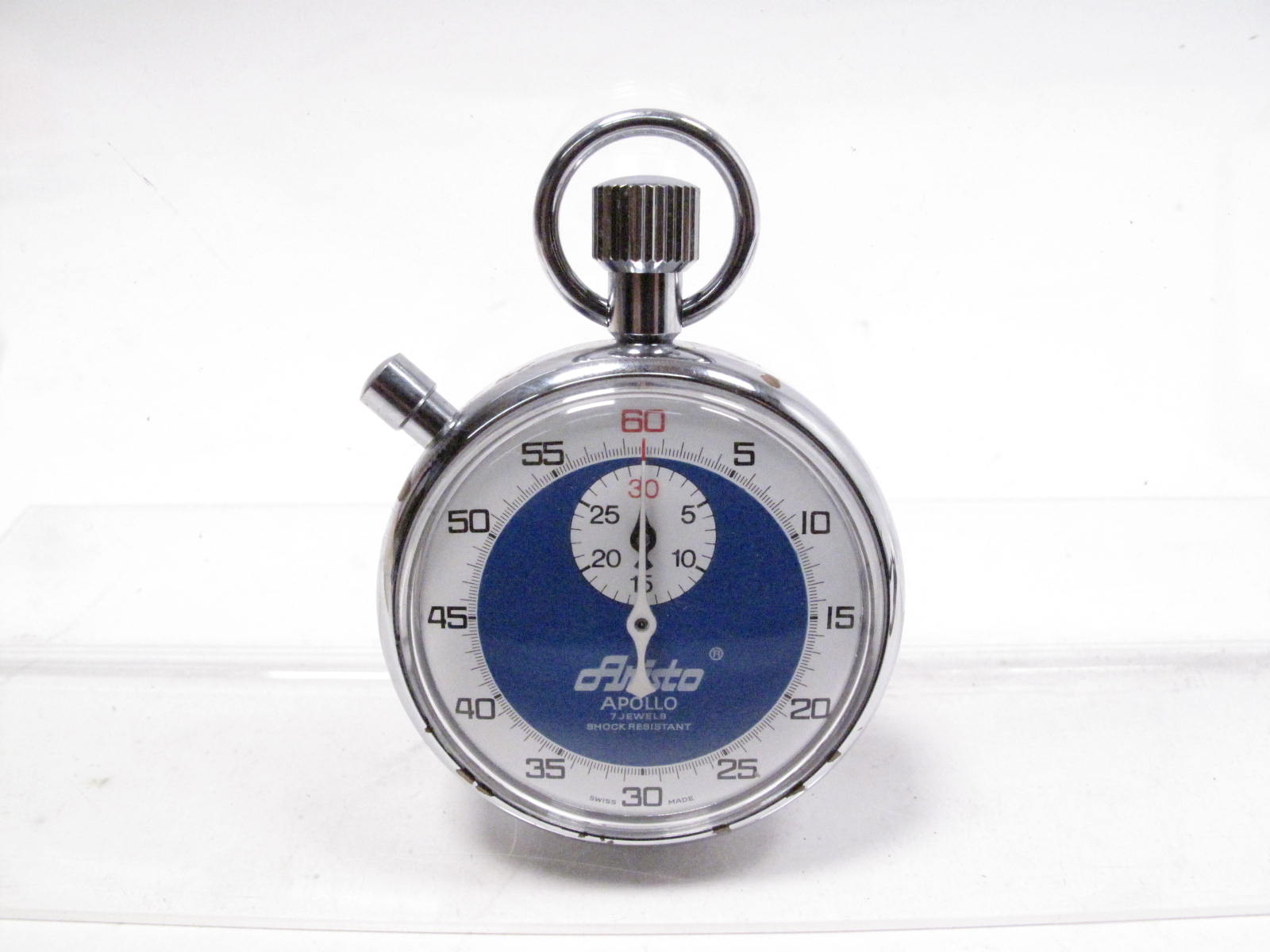 Swiss Aristo Apollo 7 Jewels Mechanical Wind Up Stopwatch Rare Blue Face
