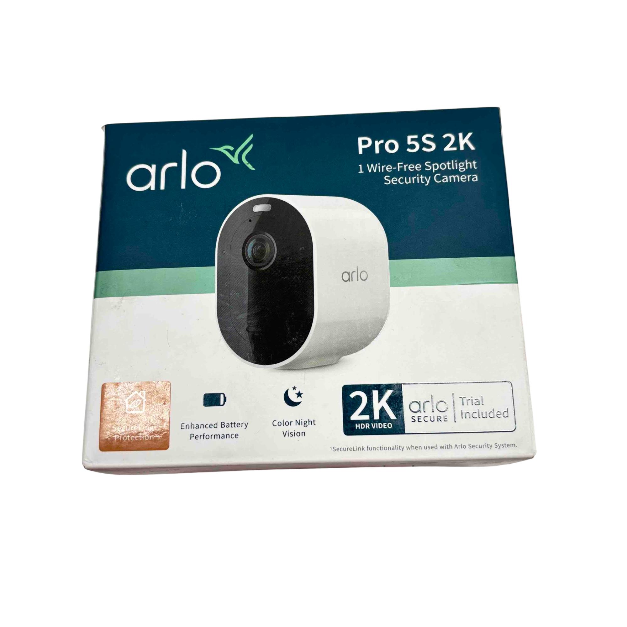 Upgrade your home security with the Arlo Pro 5S 2K Wire-Free Spotlight Security Camera. This sleek and sophisticated camera features 2K HDR video quality, enhanced battery life, and color night vision, ensuring clear and reliable monitoring day or night. Easily connect it to your home security system for optimal protection and peace of mind.