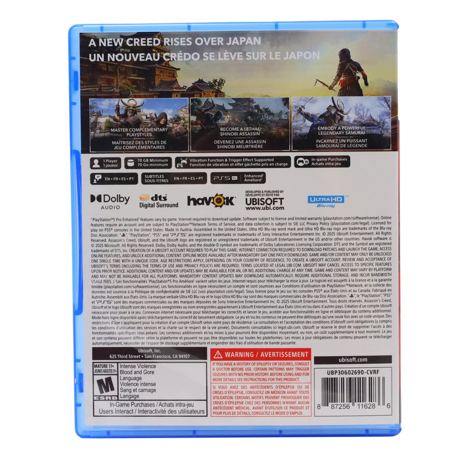 An open-world action-adventure game set in late 16th-century Japan, offering two playable protagonists with distinct playstyles: Yasuke, a former African slave turned samurai, and Naoe, a skilled shinobi of the Iga clan. Developed on an enhanced Anvil engine, the game introduces dynamic lighting, destructible environments, and seasonal changes that impact stealth and traversal. Players can use shadows, water concealment, and tools like a grappling hook or bamboo breathing stick to infiltrate enemy areas undetected. Missions unfold non-linearly, requiring players to gather intelligence and locate targets through clues and scouting rather than direct map markers. The narrative follows Yasuke’s service under Oda Nobunaga and Naoe’s pursuit of a stolen artifact tied to her father’s dying command, blending political intrigue and personal revenge in a world shaped by shifting alliances and ancient traditions.