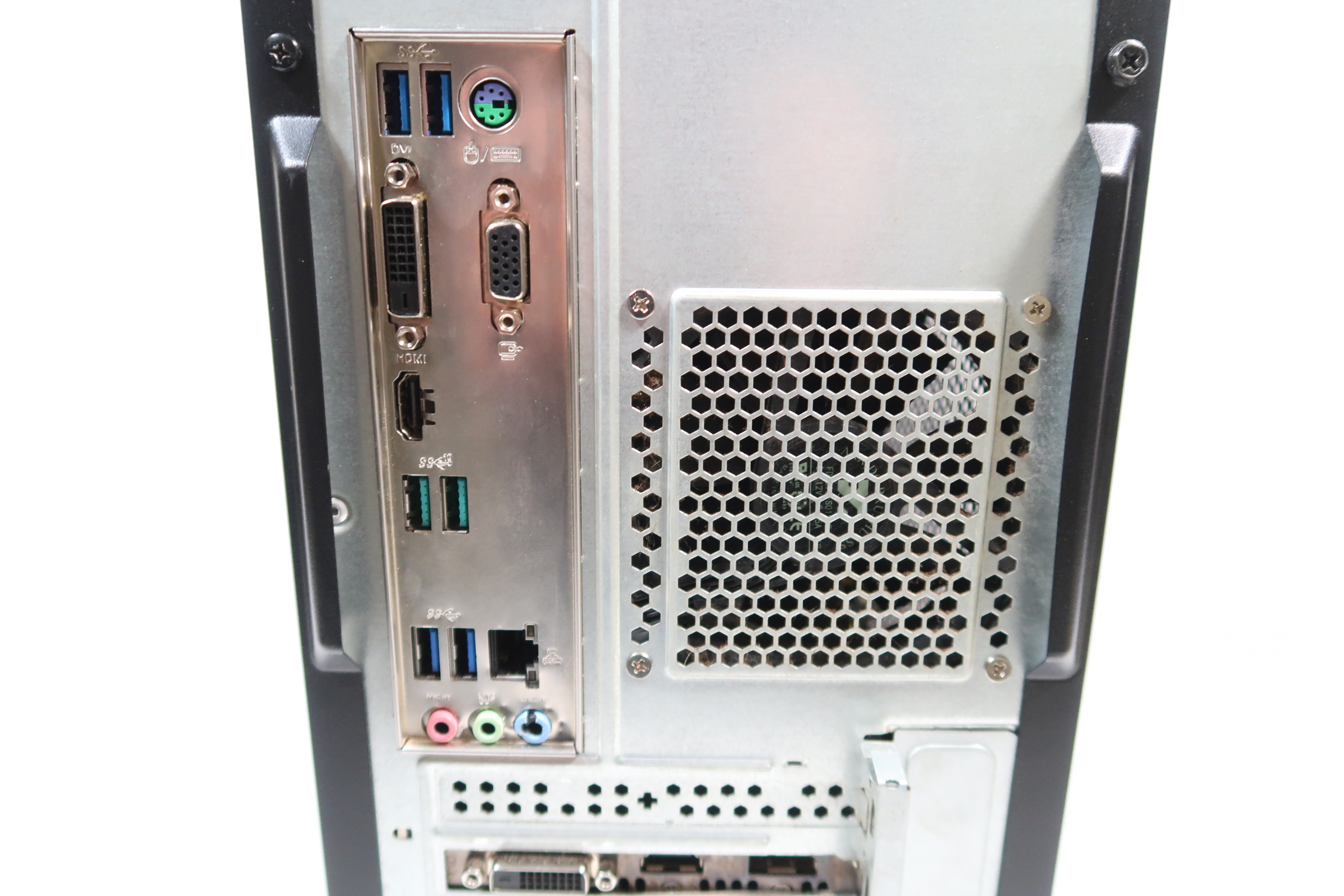 Back: 1x RJ45 Gigabit Ethernet: 1x HDMI 1.4: 1x VGA Port: 1x DVI-D: 1x PS2: 3 x Audio jacks: 4x USB 3.2 Gen 1 Type-A: 2x USB 3.2 Gen 2 Type-A