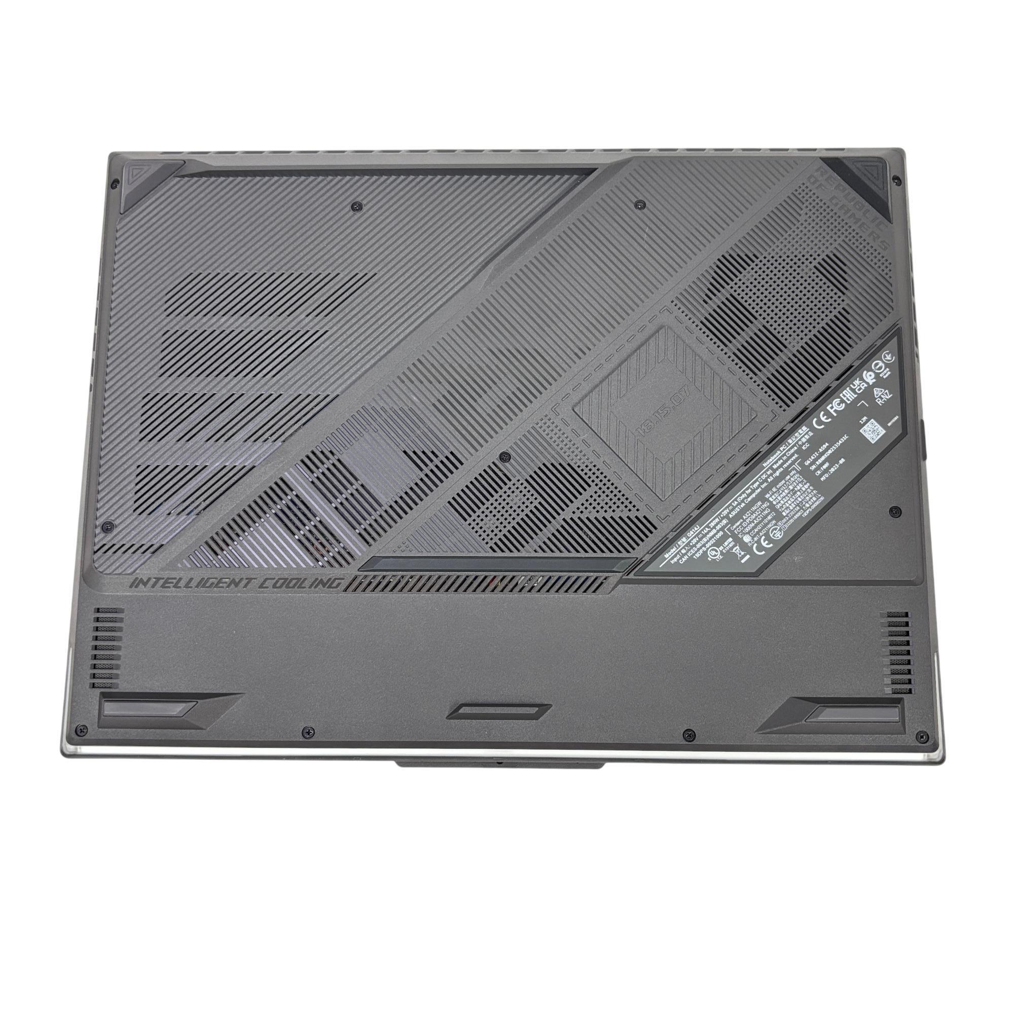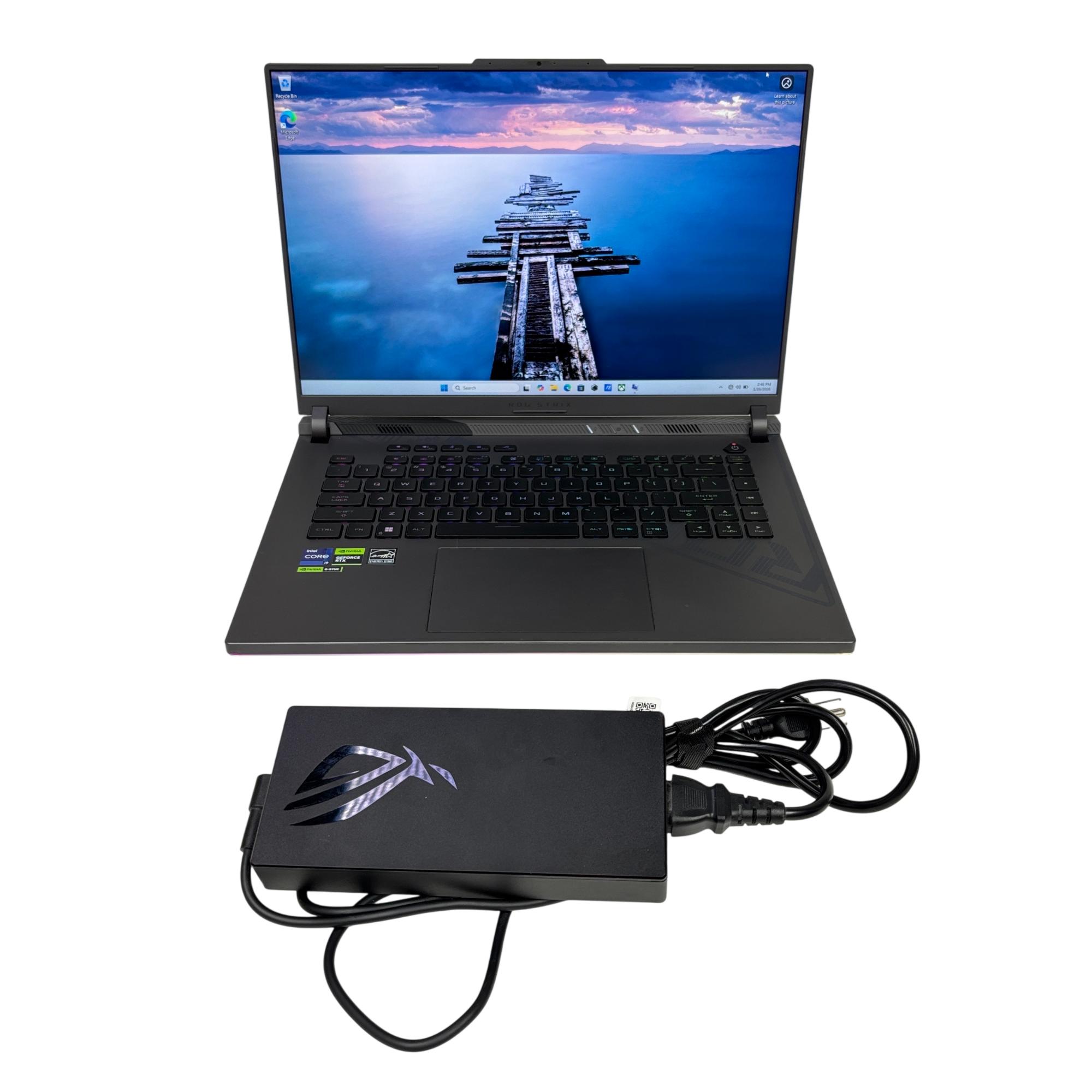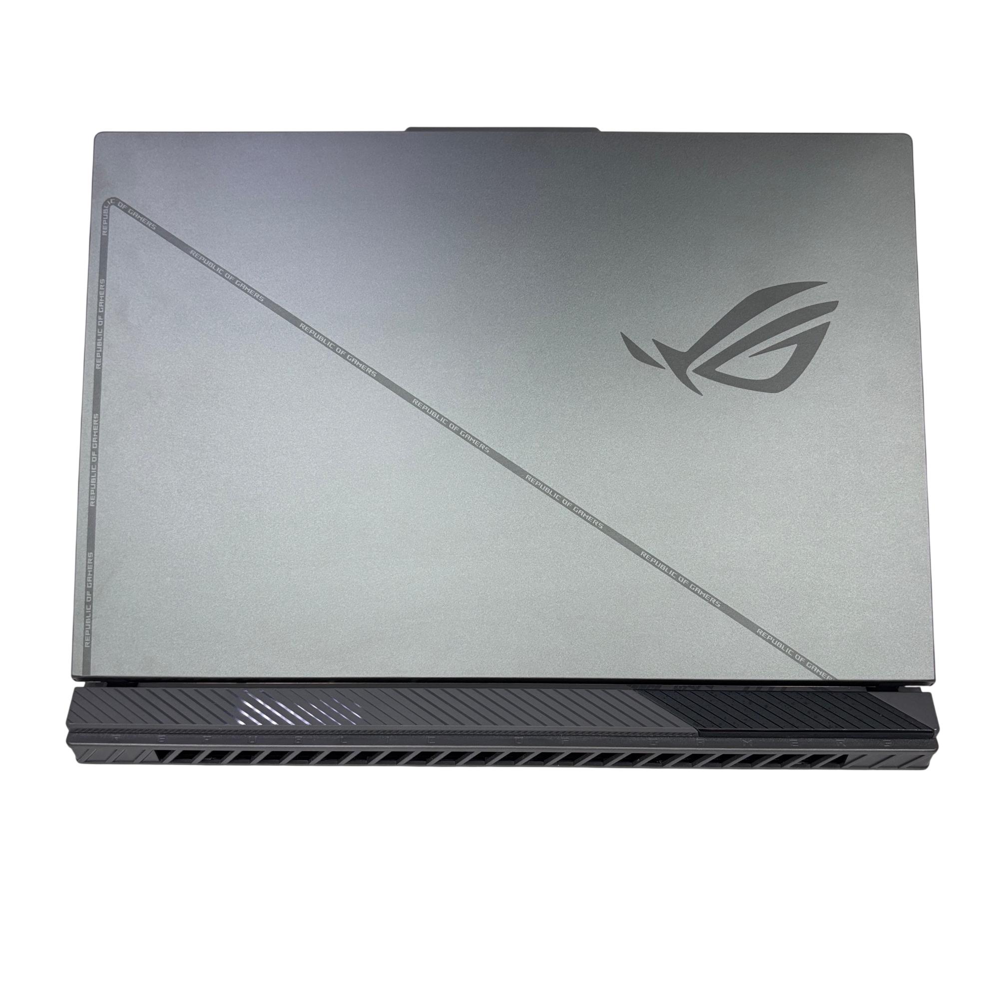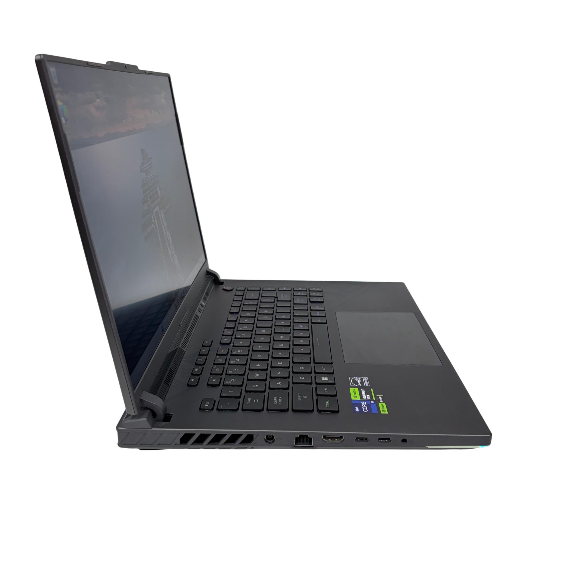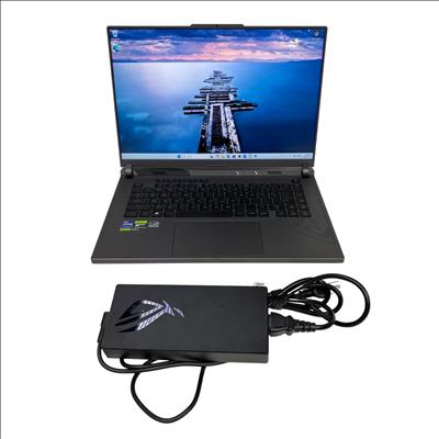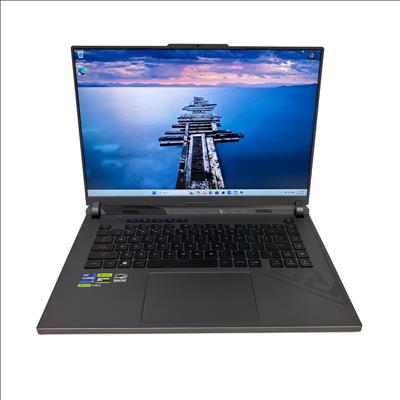This Asus ROG Strix G16 (G614J) gaming laptop features a powerful Intel Core i9 13th generation processor paired with an NVIDIA GeForce RTX 4070 graphics card for high-performance gaming and multitasking. Equipped with a spacious 1TB SSD, it delivers fast storage and quick load times in a sleek black chassis designed for gamers and computer enthusiasts.