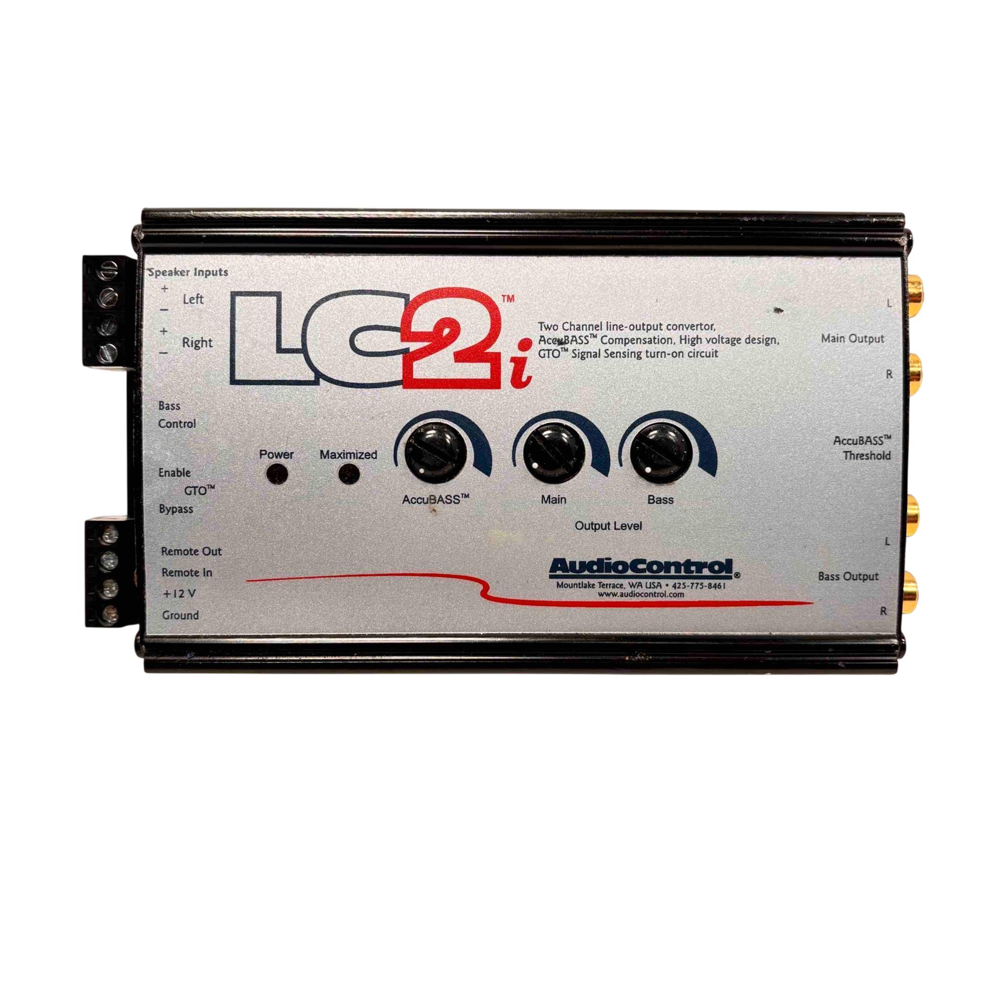 The AudioControl LC2i 2-Channel Line Output Converter seamlessly integrates aftermarket amplifiers with factory car audio systems. Equipped with AccuBASS™ compensation, GTO™ signal sensing turn-on circuitry, and high voltage design, this compact device ensures optimal sound quality and precision bass control. Elevate your vehicle’s audio experience with reliable performance trusted by audio enthusiasts.