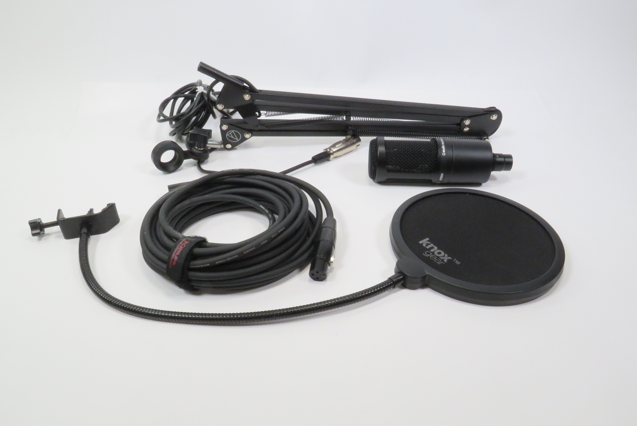 Adjustable studio boom arm provides full 360 degree rotation and adjustable, spring stabilized joints with thumbscrews for easy repositioning of the microphone