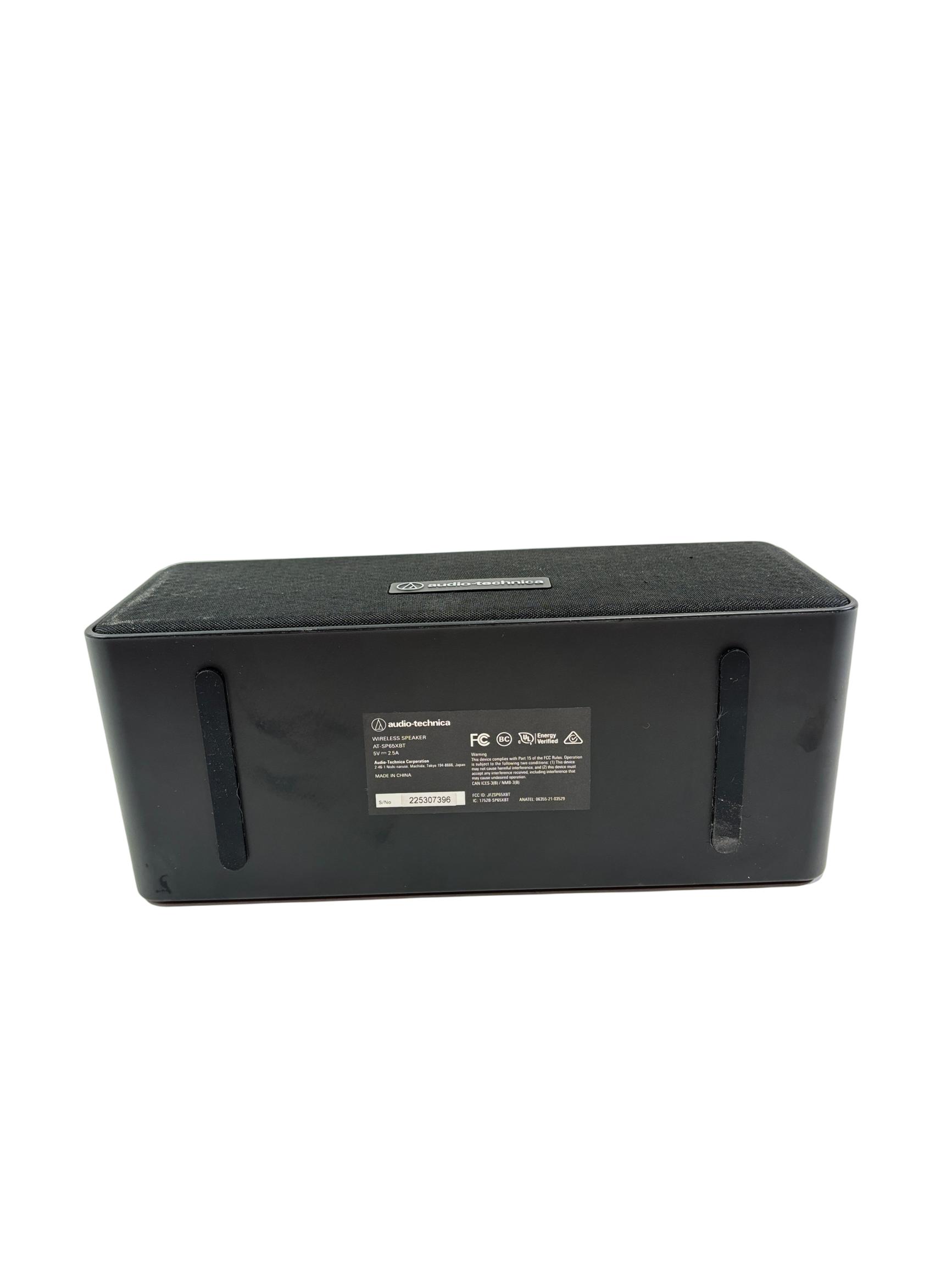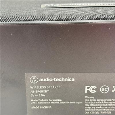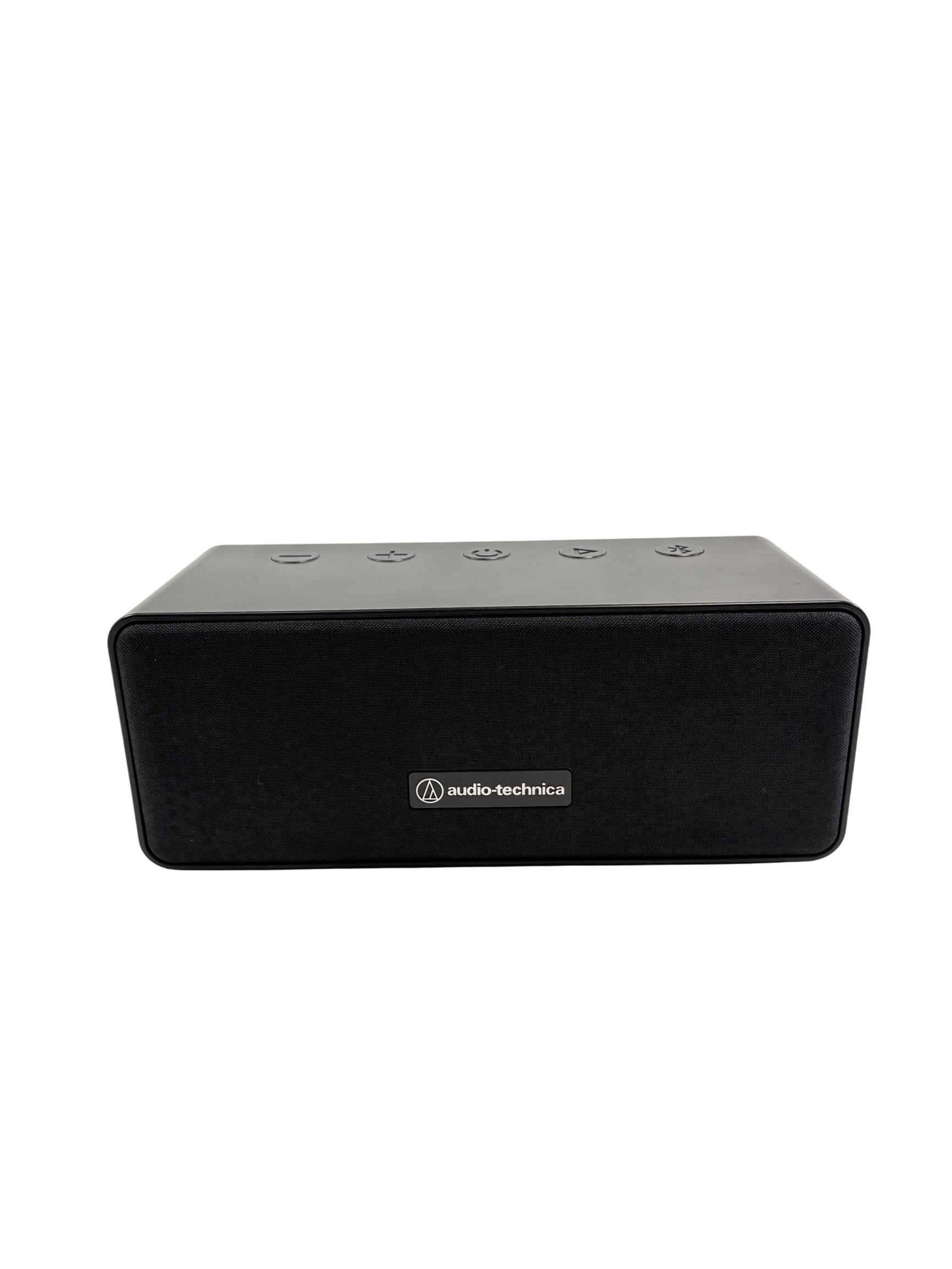 Audio-Technica AT-SP65XBT Wireless Bluetooth Speaker, Black delivers crisp and clear stereo sound in a sleek, compact design. This wireless speaker features intuitive button controls on its black rectangular body and is engineered for portability and powerful audio performance, making it ideal for both indoor and outdoor use.