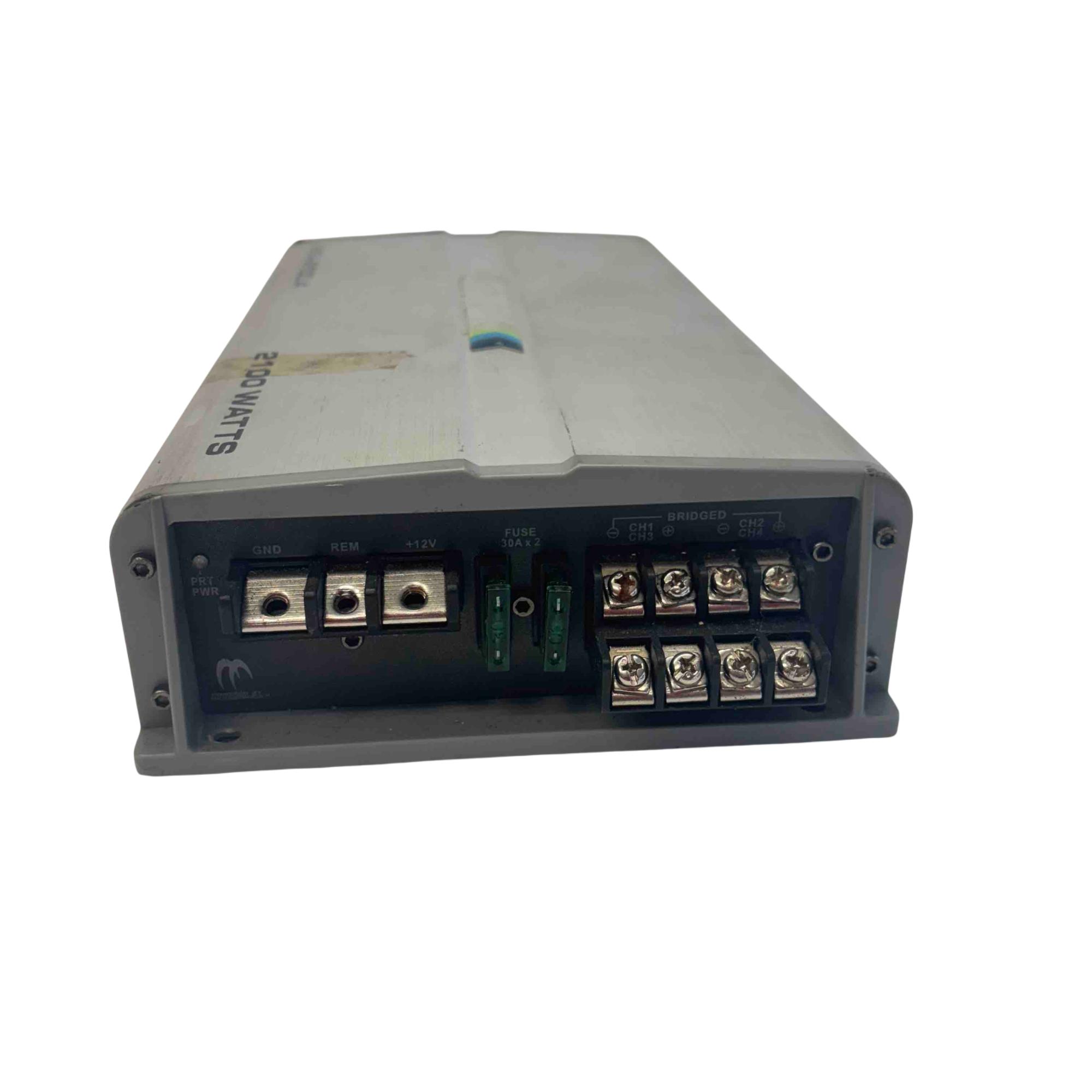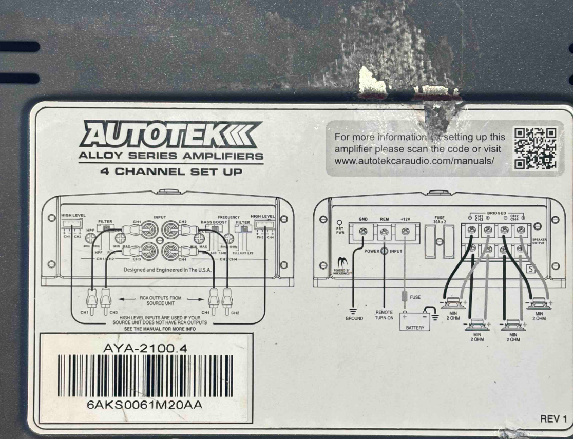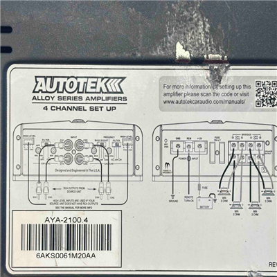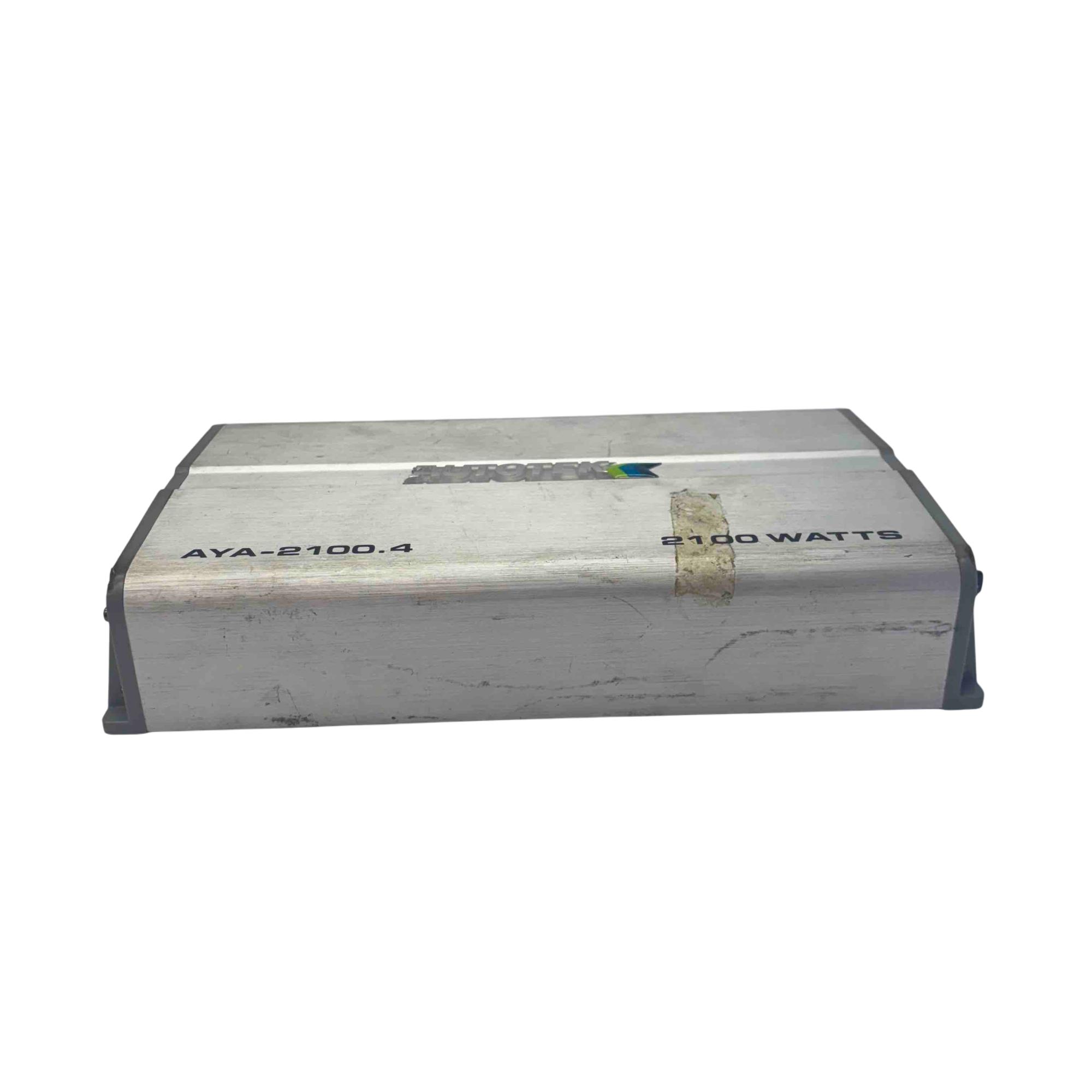 Autotek AYA-2100.4 Alloy Series 2100 Watts 4-Channel Car Audio Amplifier delivers high-performance Class A/B amplification with built-in bass control and a variable electronic crossover. Designed and engineered in the USA, this amplifier supports high and low-level inputs and features a 4-channel setup ideal for powerful, clear car audio systems.