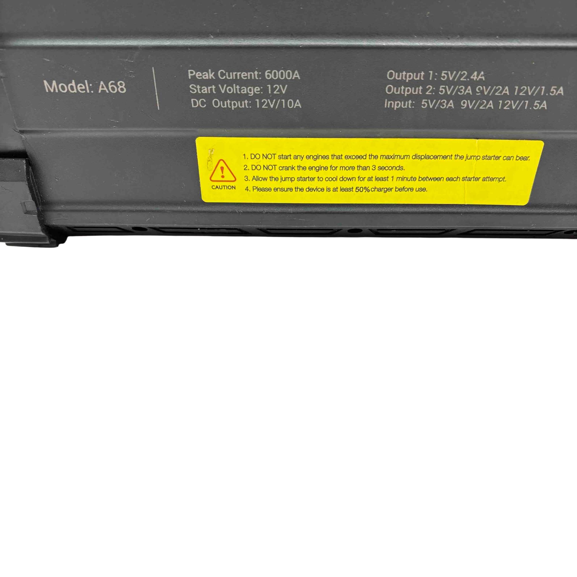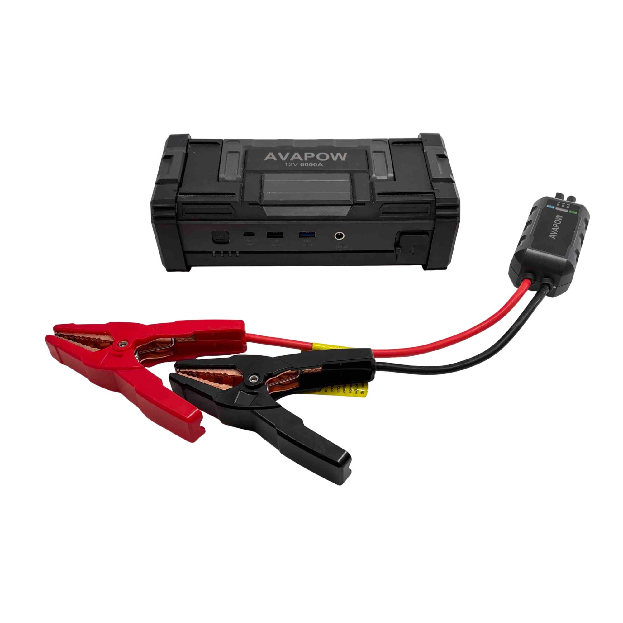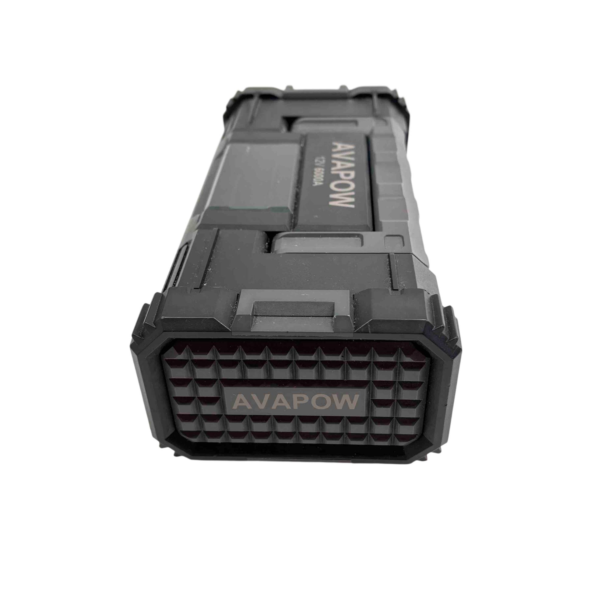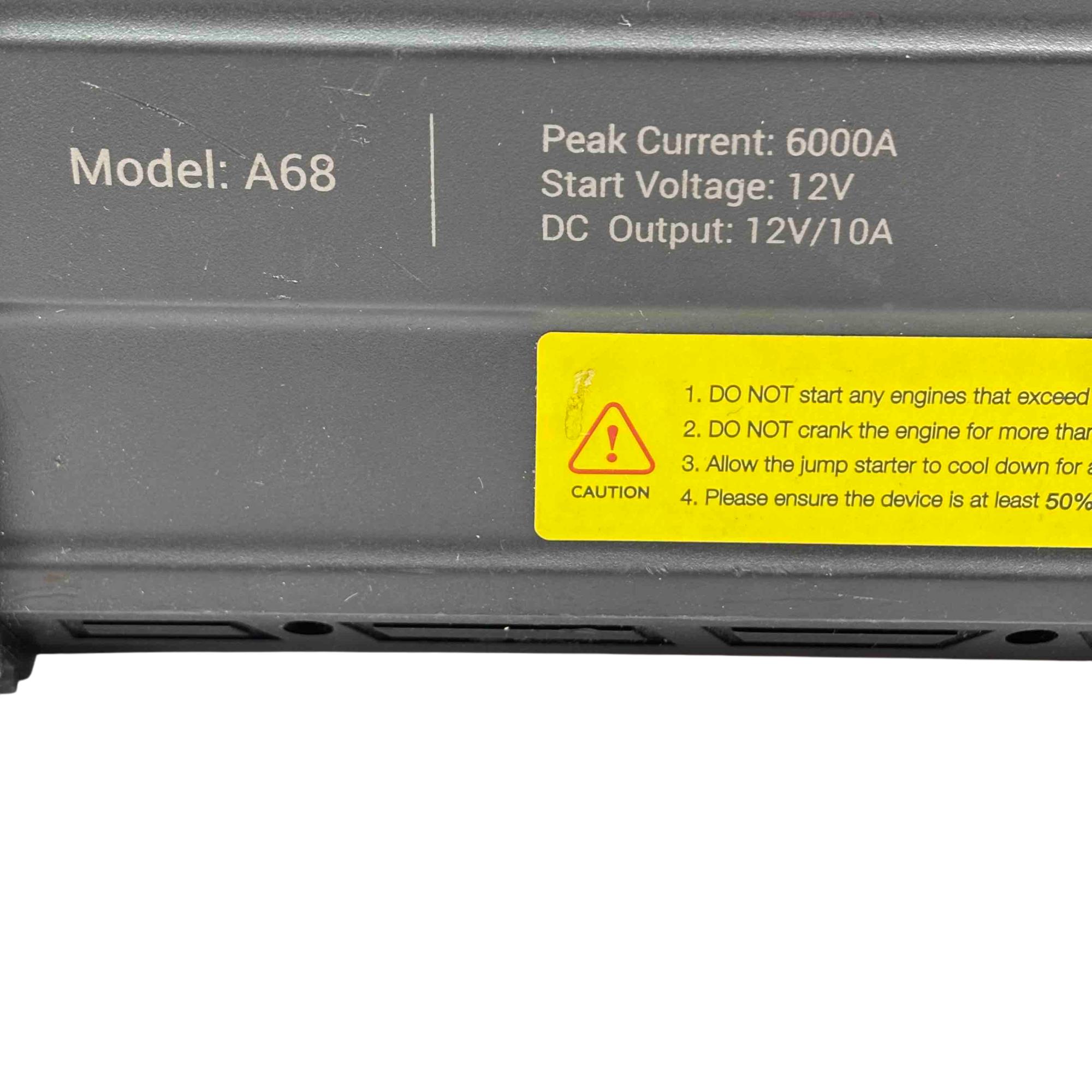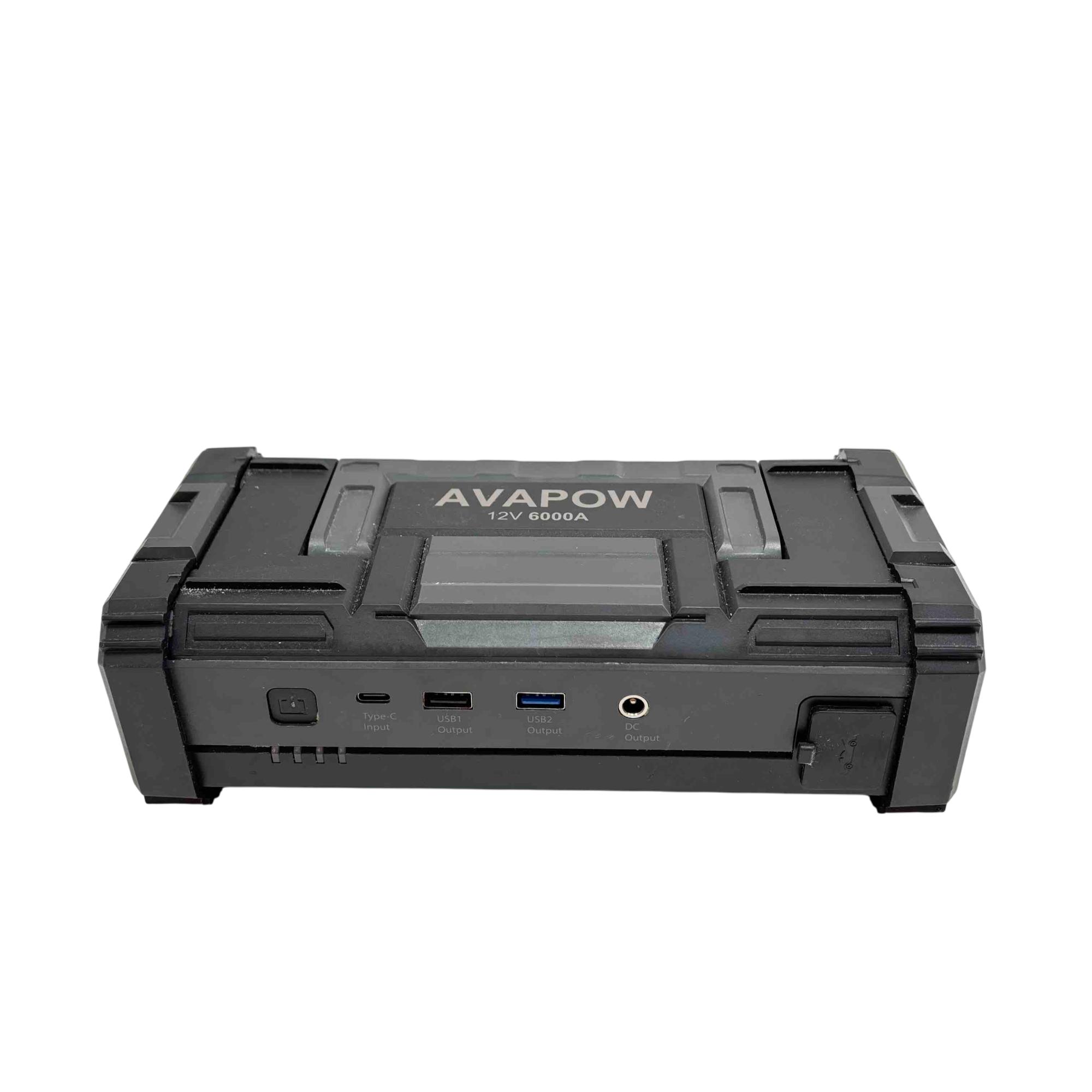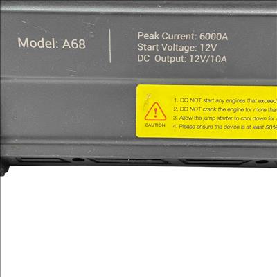 AVAPOW A68 12V 6000A Portable Car Battery Jump Starter delivers a powerful peak current of 6000 amps designed to start 12V engines efficiently, making it suitable for various vehicles. It features multiple DC outputs including 5V/2.4A and 12V/10A ports, ensuring versatile charging options for electronic devices. Compact and robust, this electrical device is built for easy use while providing essential engine-starting power with safety cautions to prevent misuse.